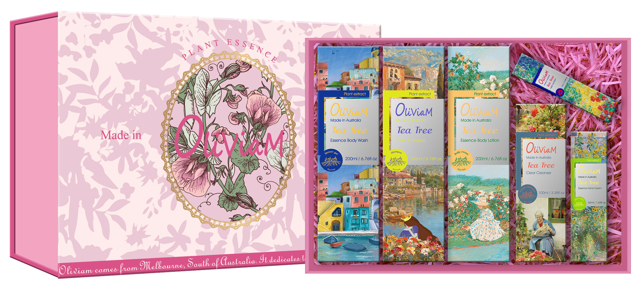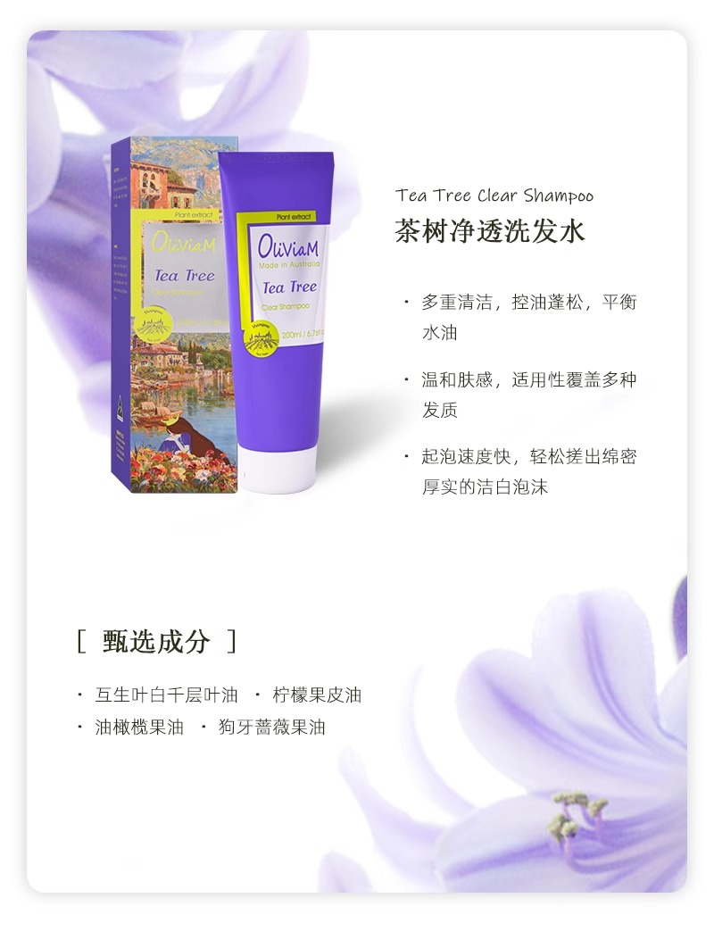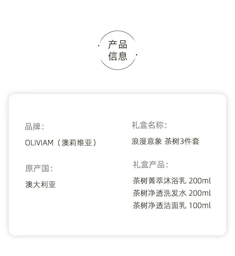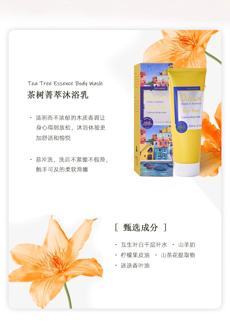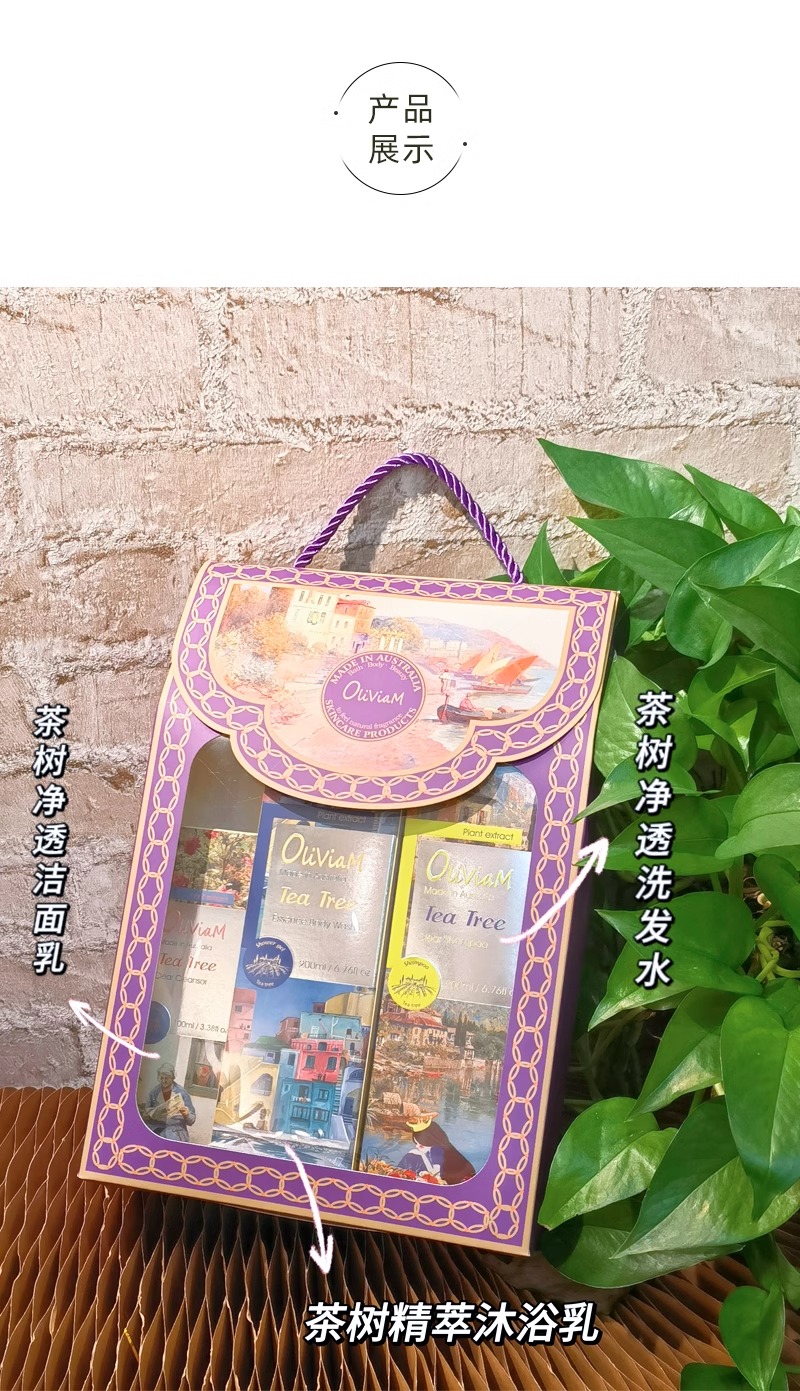 中欧班列精选】Oliviam澳莉维亚澳洲进口浪漫意象茶树洗护沐系列2件/3件4件/6件套礼盒礼品节日送礼 舒缓肌肤,清洁,保湿,去角质