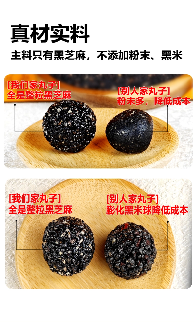 【九九】无蔗糖黑芝麻丸芝麻球即食黑芝麻丸500*2袋