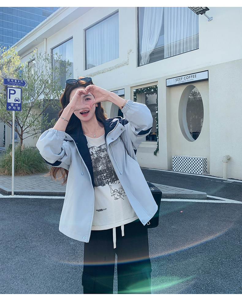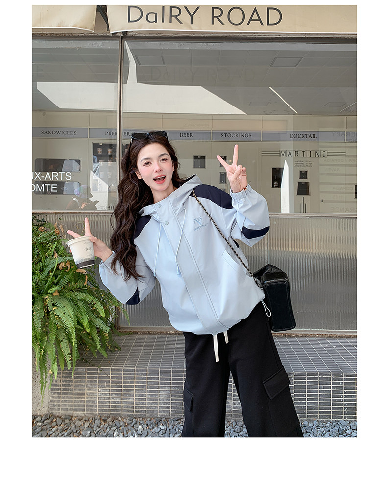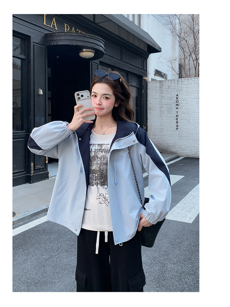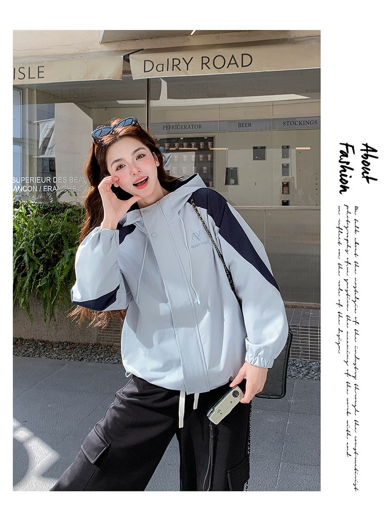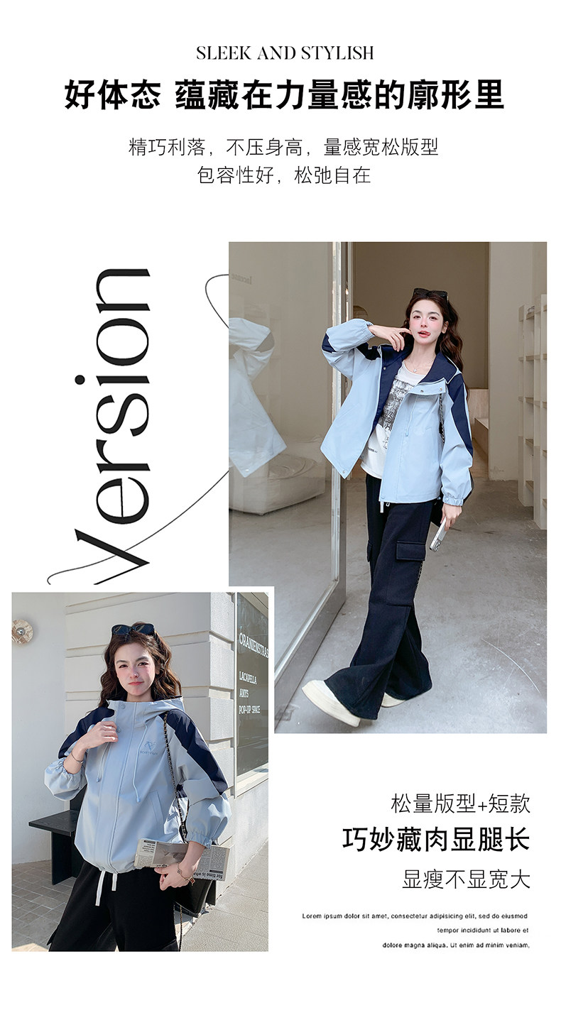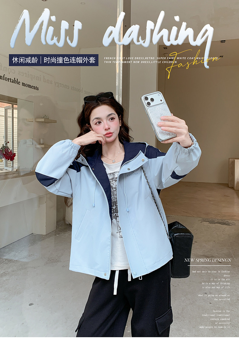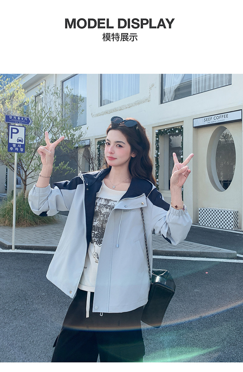 半身缘女装 春季撞色连帽短款冲锋衣外套夹克261113U01340259