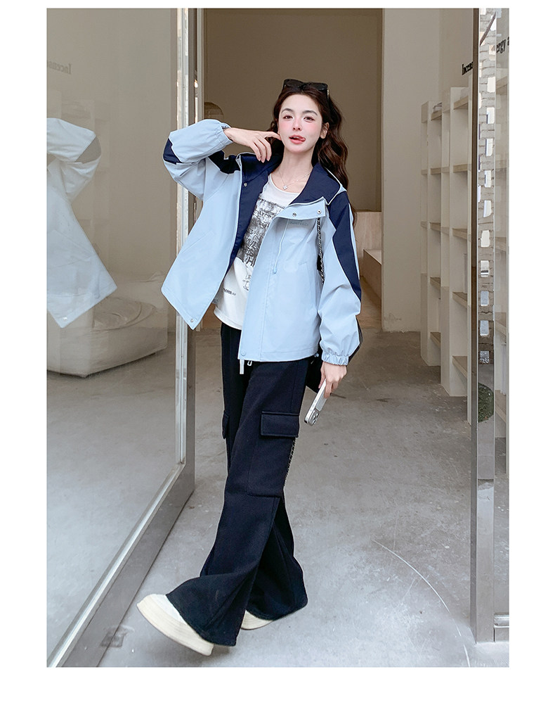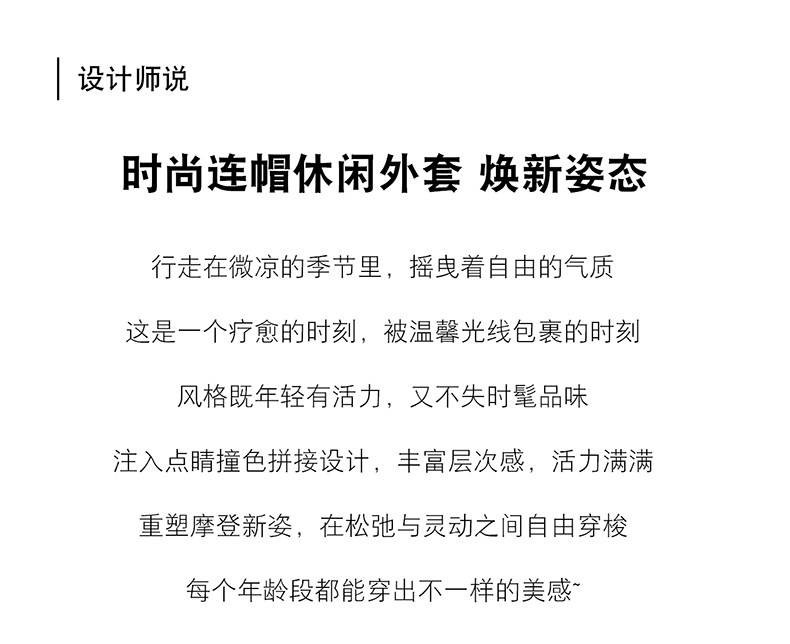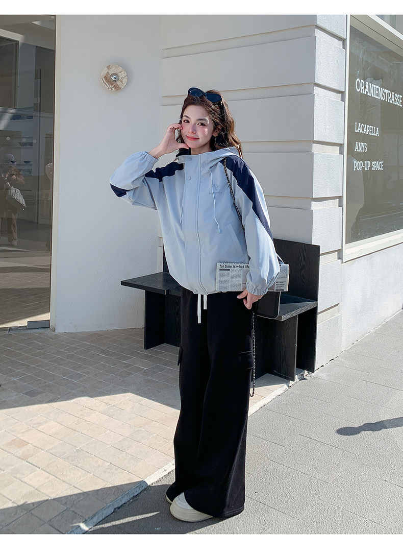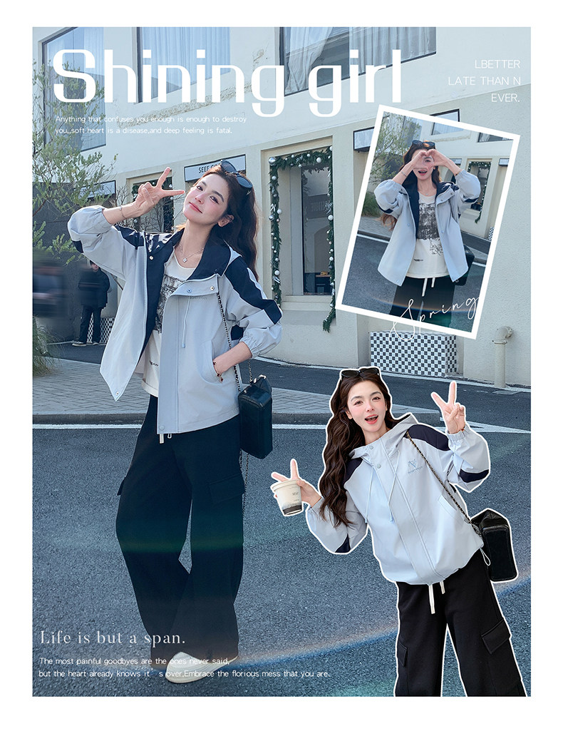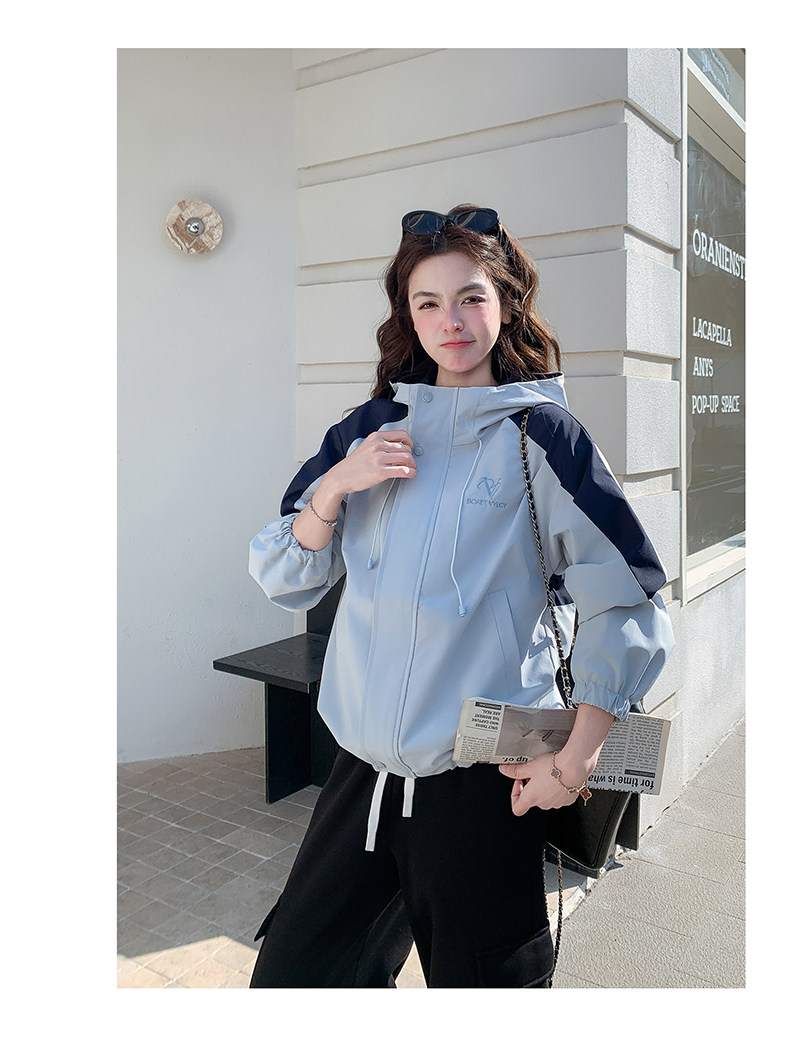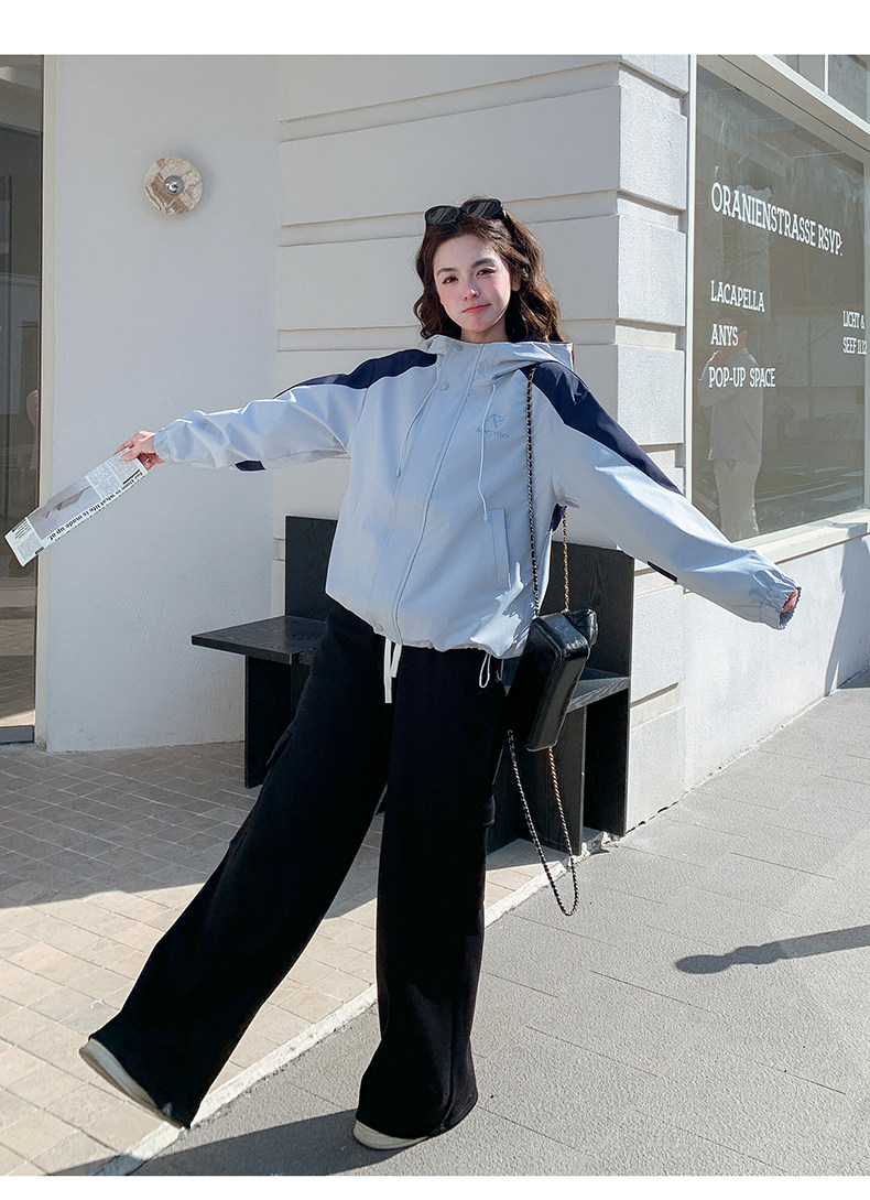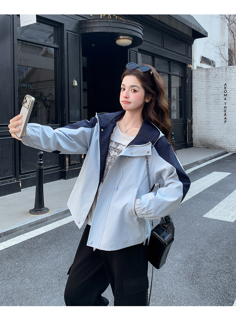 半身缘女装 春季撞色连帽短款冲锋衣外套夹克261113U01340259