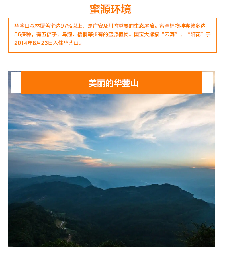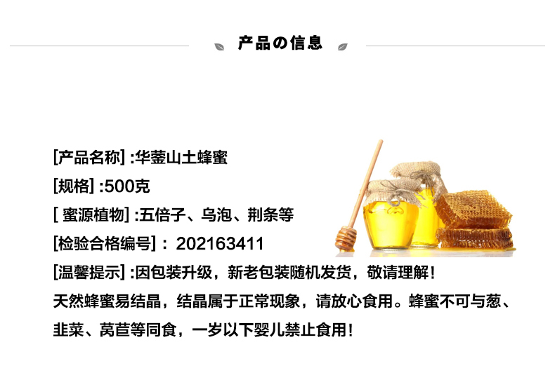 • 蜜源多样:蜜蜂采集多种山花的精华酿制而成,因蜜源植物不同,色泽呈黄色、褐色、白色、青色等。