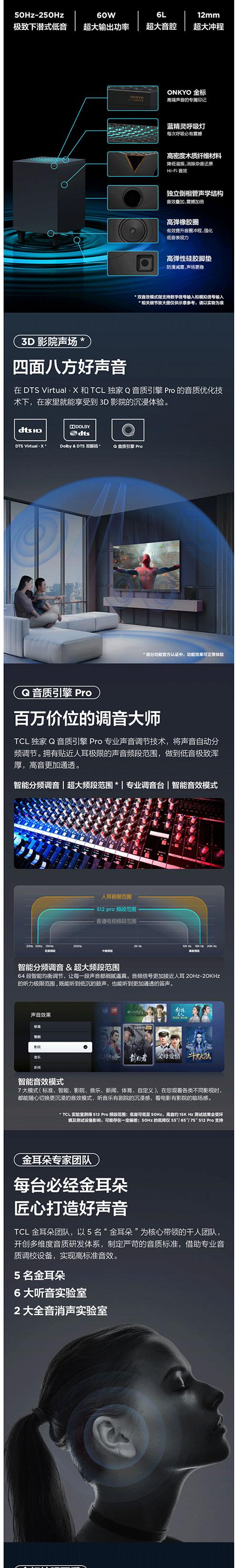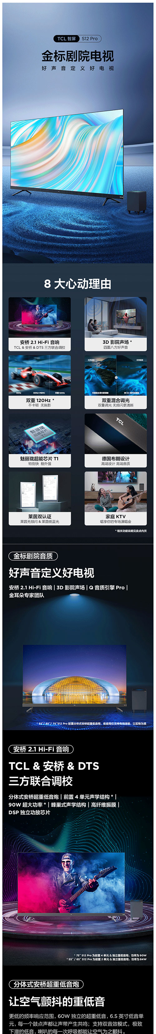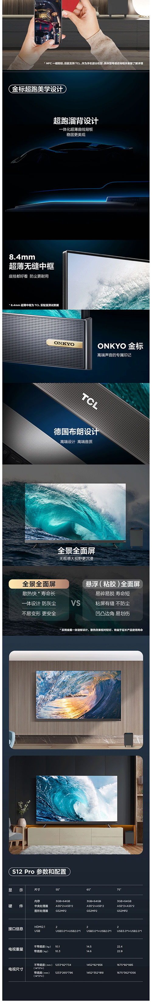 TCL电视 75S12Pro 75吋金标剧院电视安桥2.1Hi-Fi音响120Hz AI声控全面屏电视
