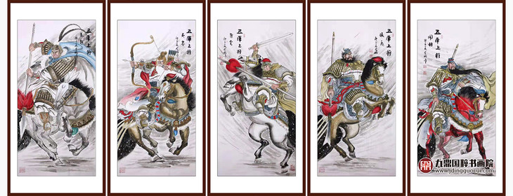 高云鹏《五虎上将》68cm*138cm*5 人物五条屏作品 玄关挂画