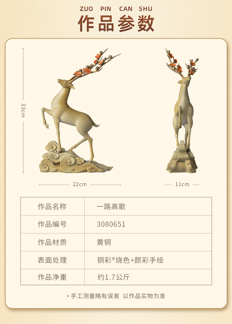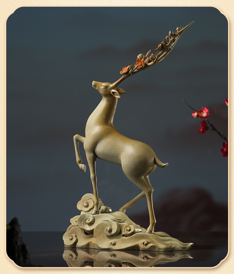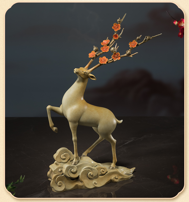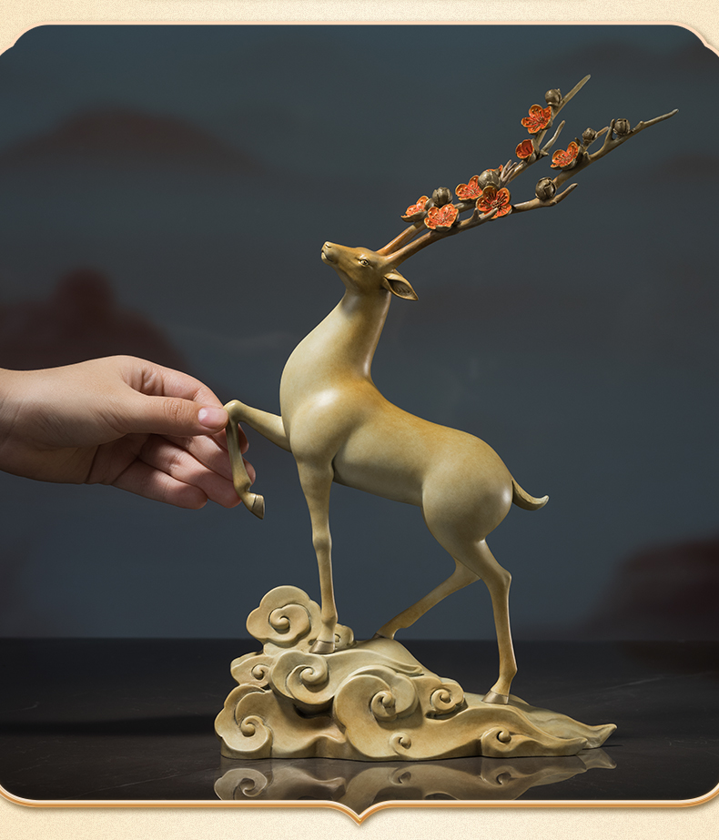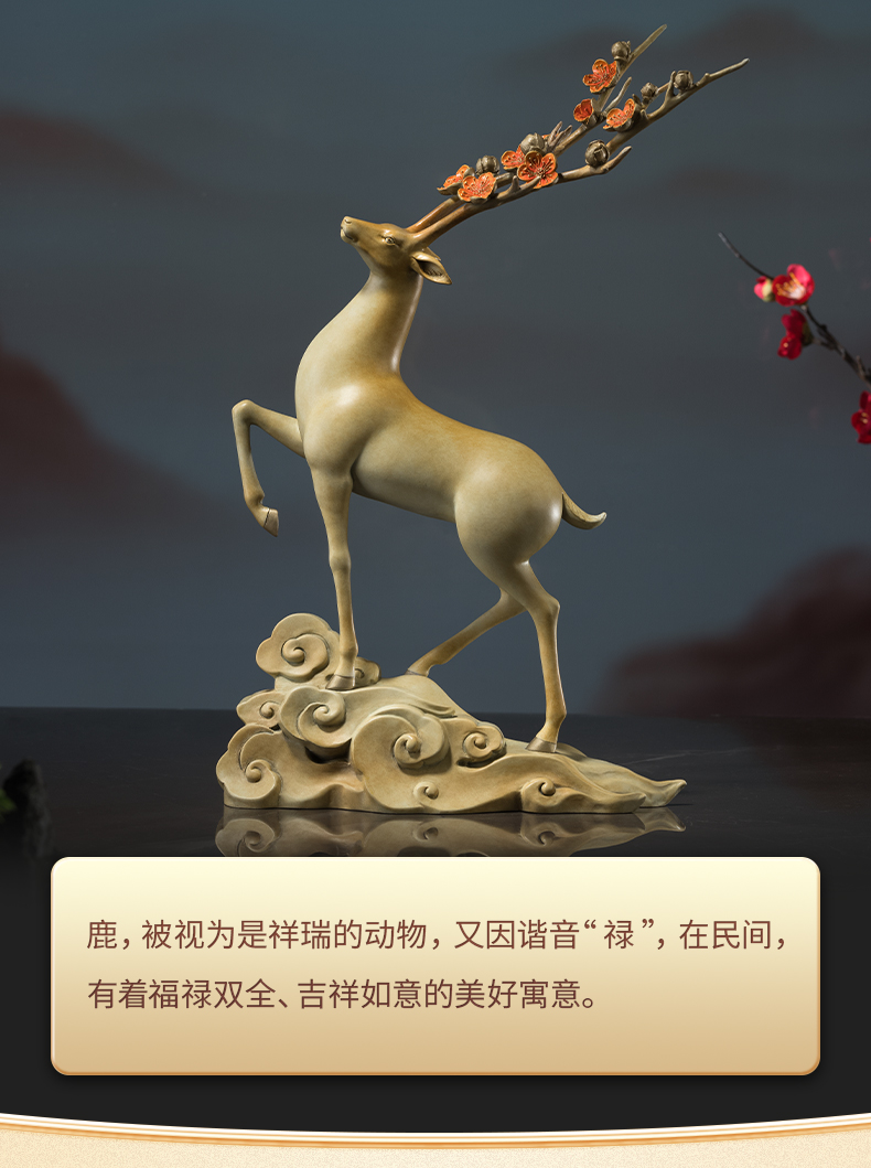 铜师傅《一路高歌》新国风鹿摆件 客厅家居装饰工艺品摆件