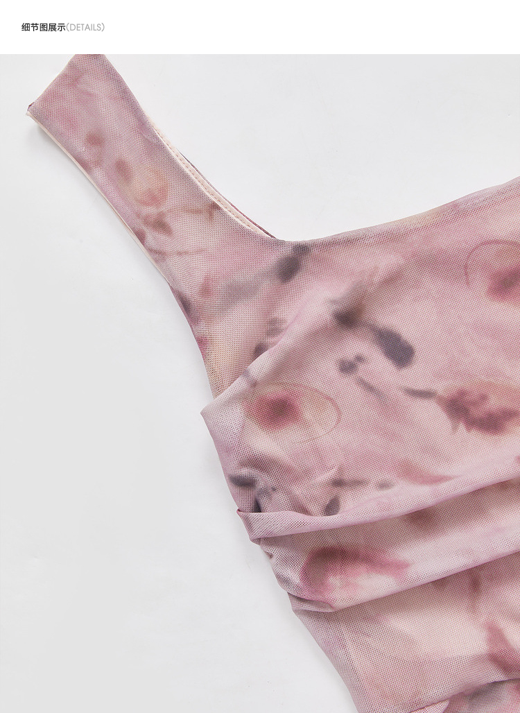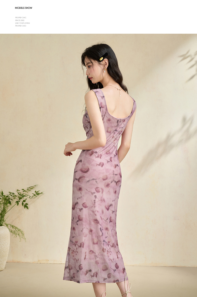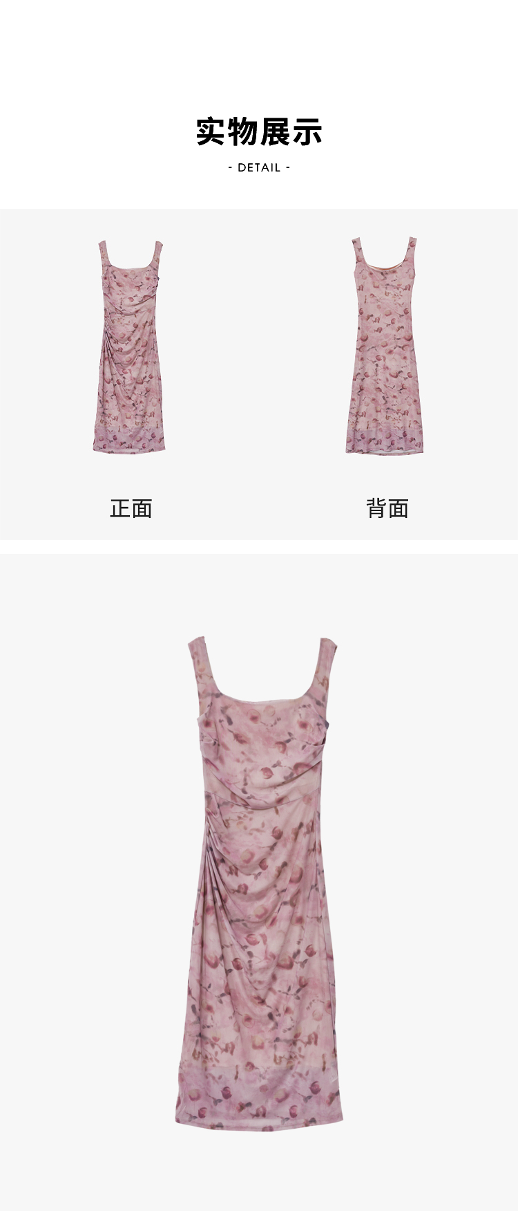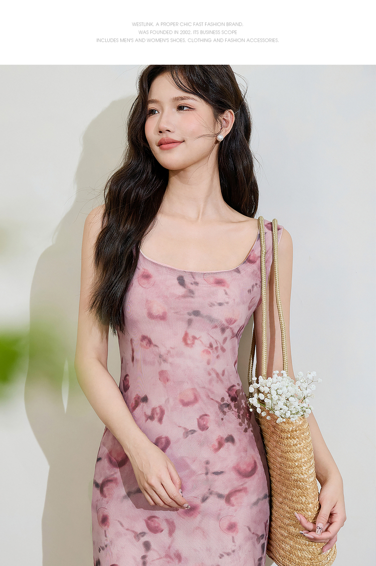 西遇背心连衣裙新款法式复古度假风方领碎花收腰无袖长裙P1341264
