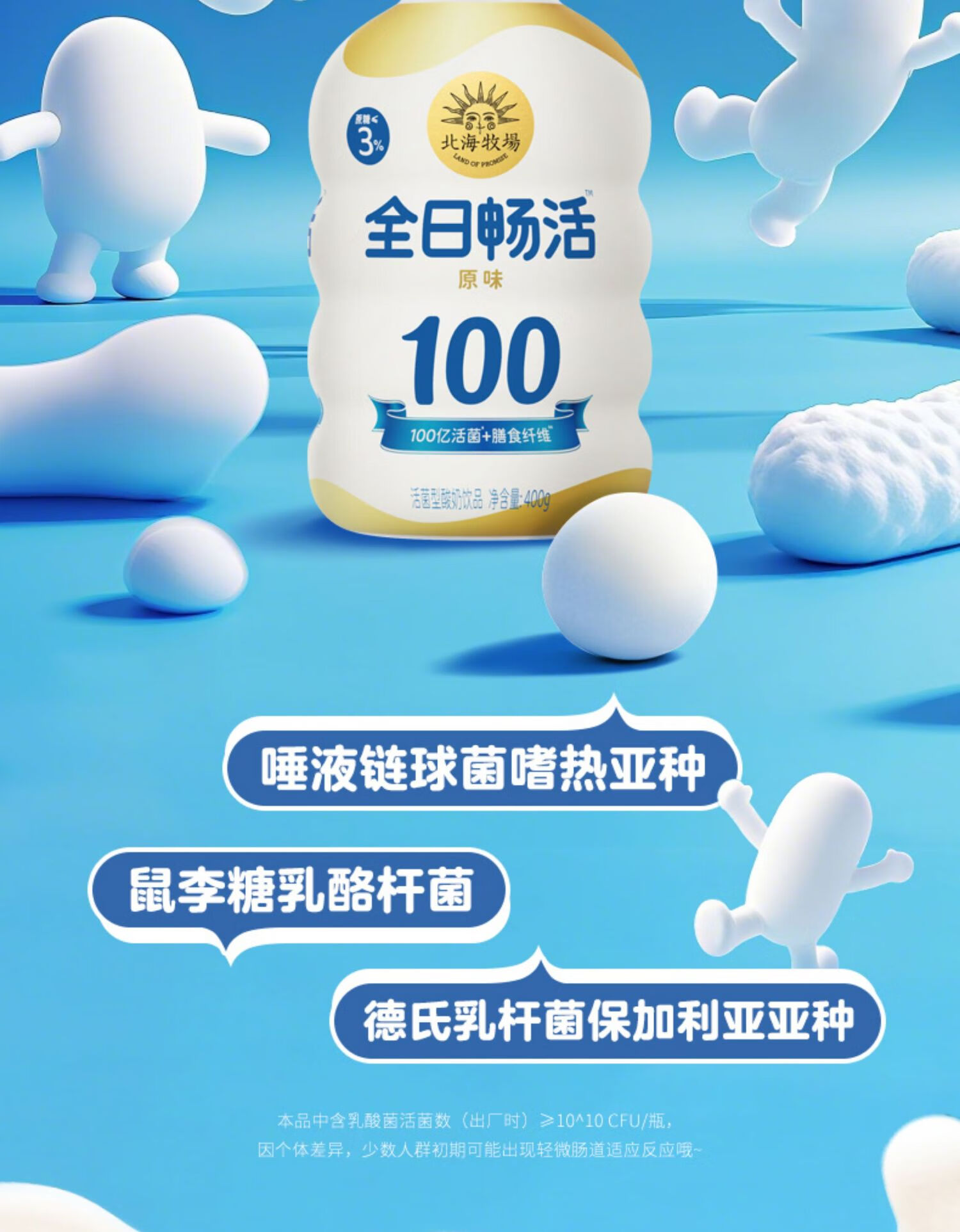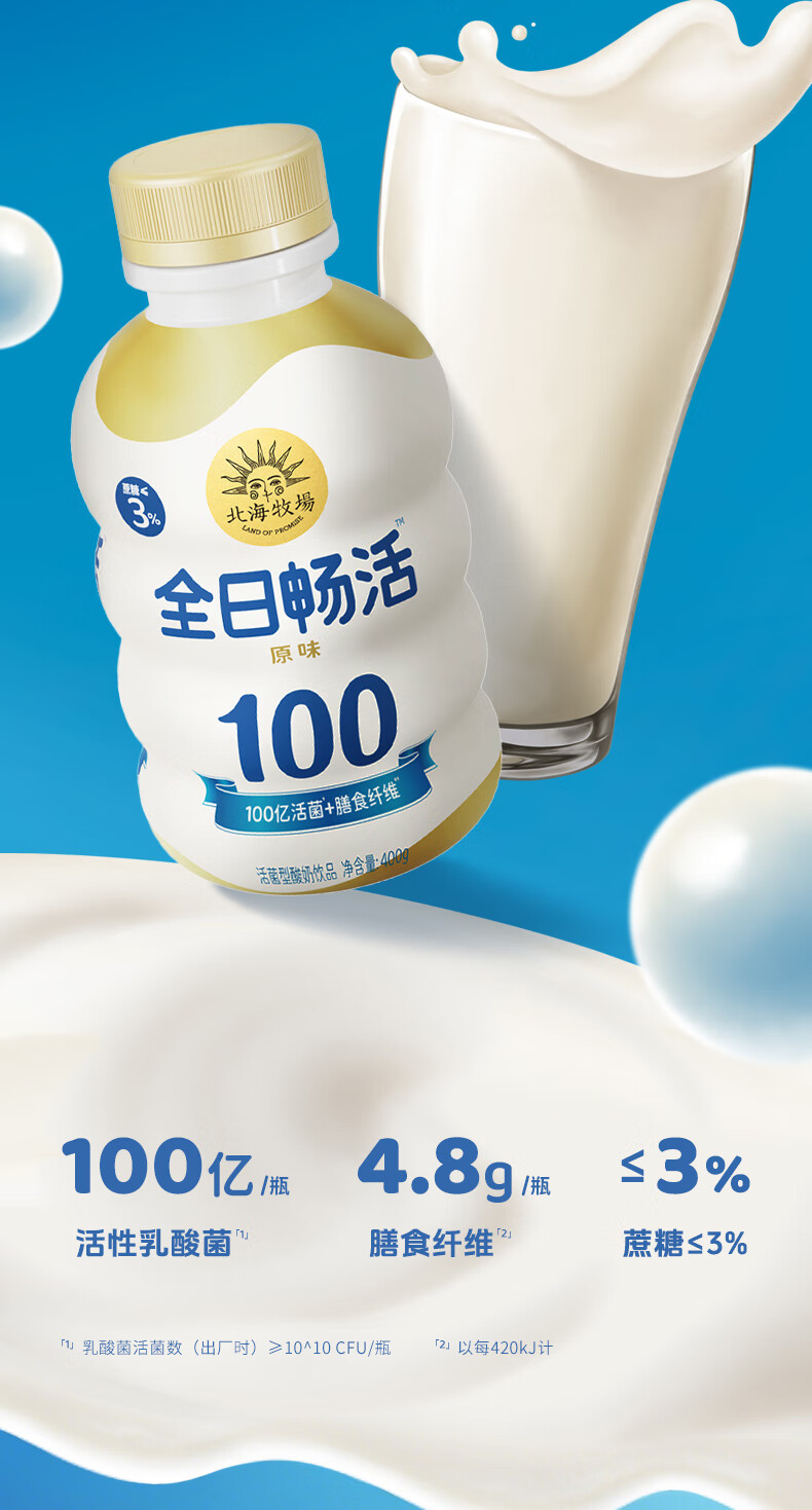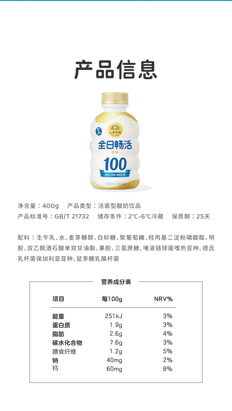 北海牧场全日畅活发酵乳酸奶原味 400g/瓶
