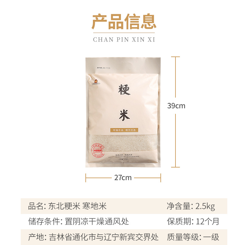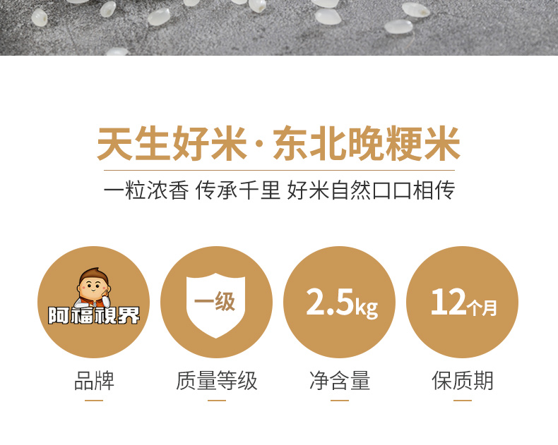 【积分兑换】阿福视界东北大米/粳米,东北寒地种植,晚季收割米粒饱满,2.5kg/袋