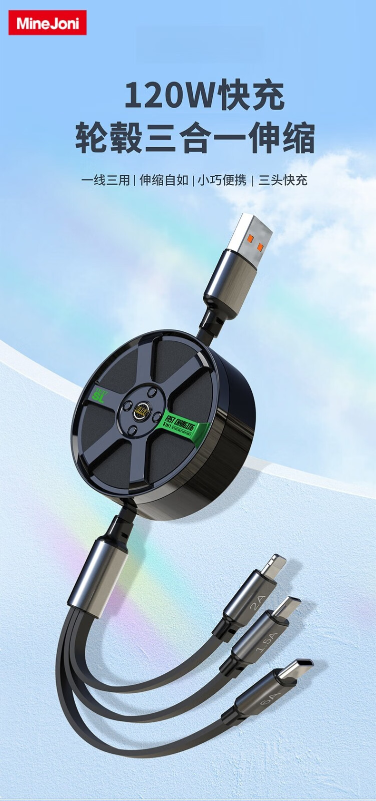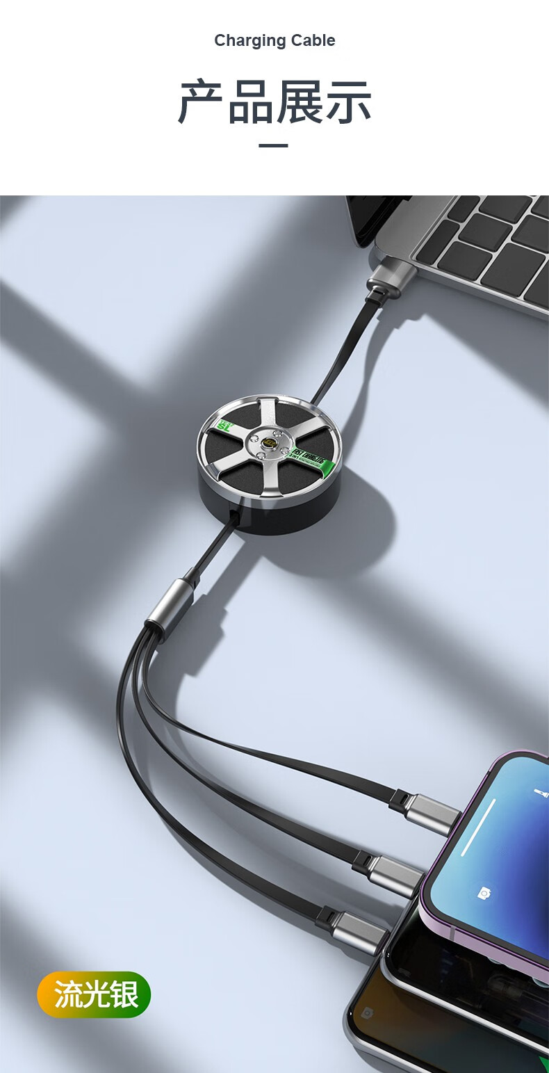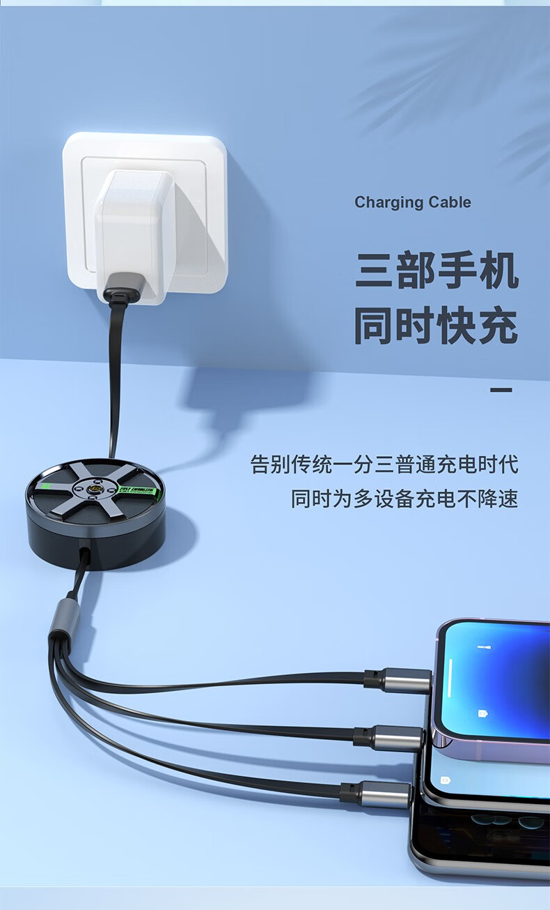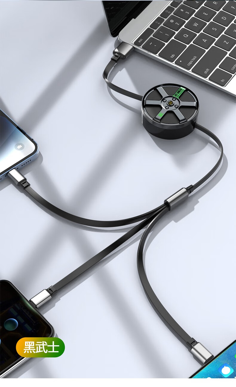 MINEJONI车载礼品收纳一拖三快充数据线轮胎数据线快充数据线