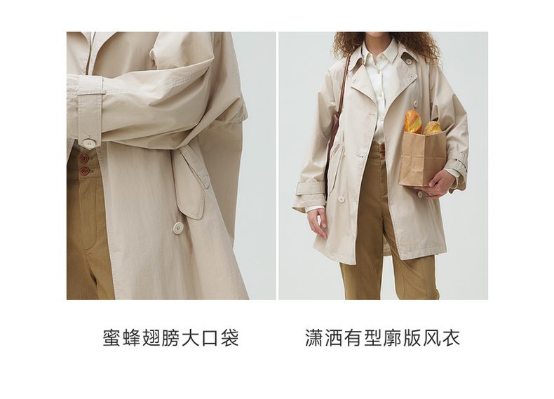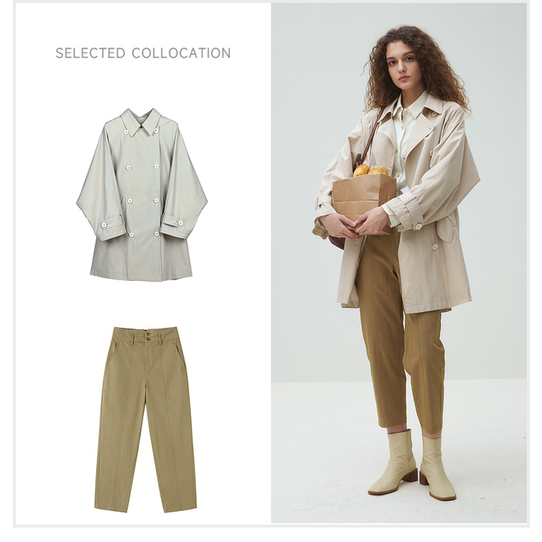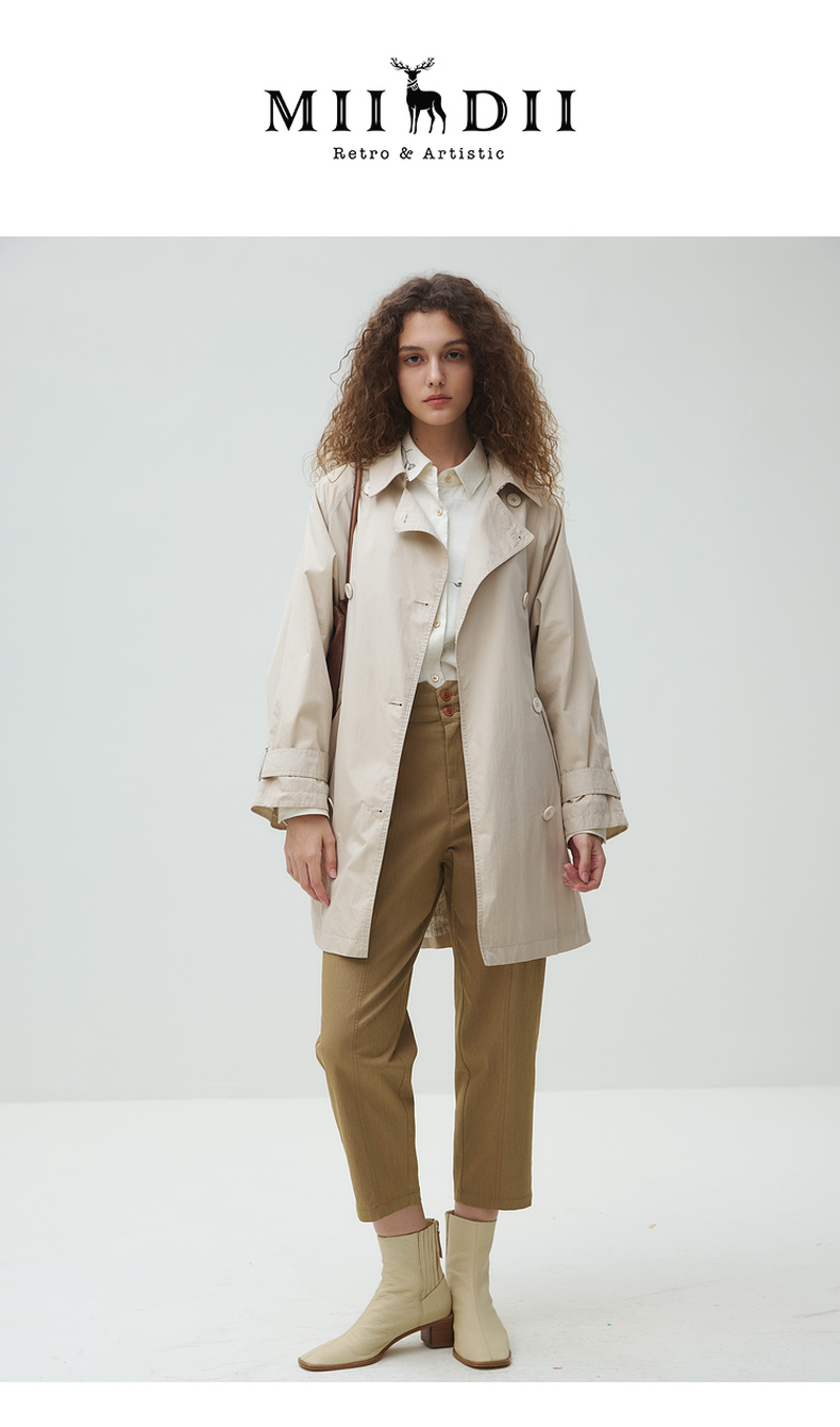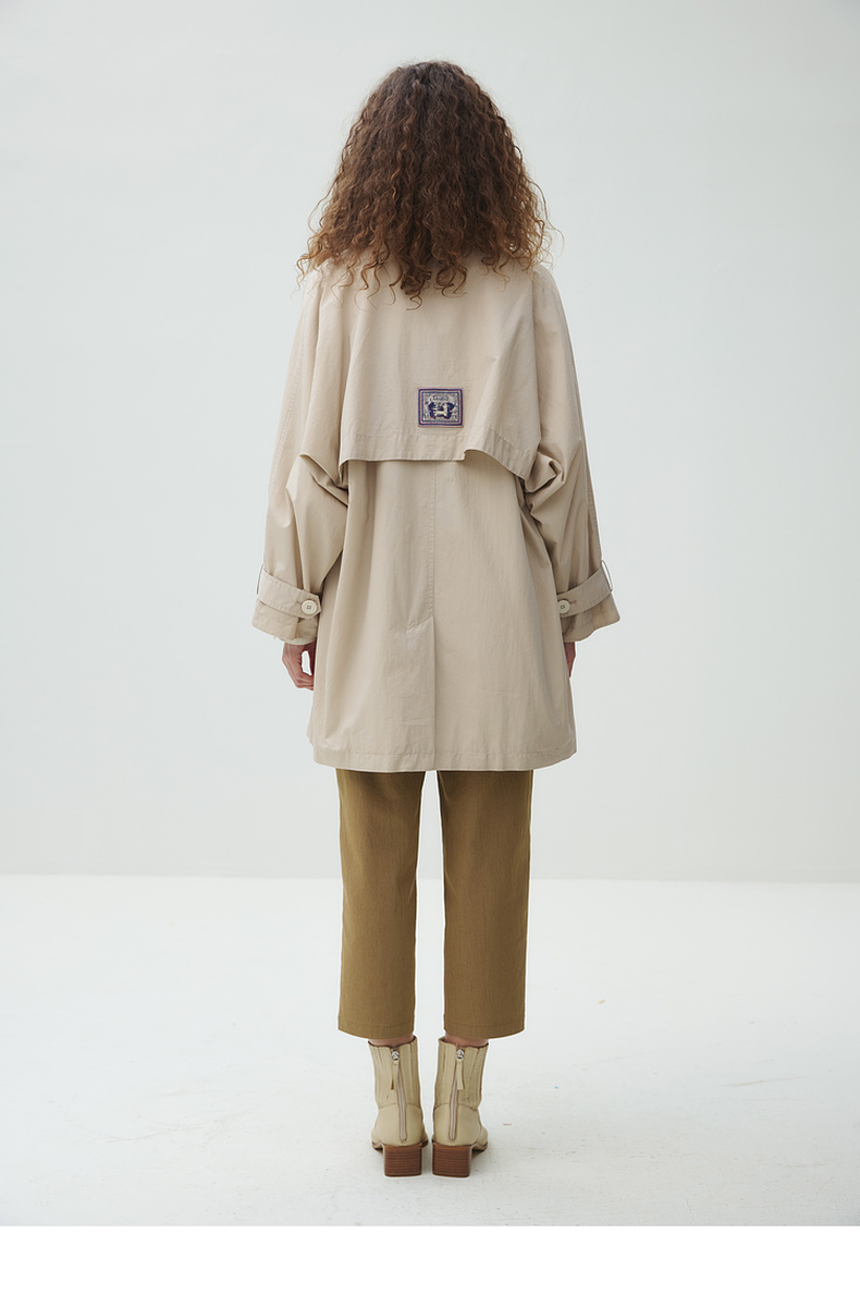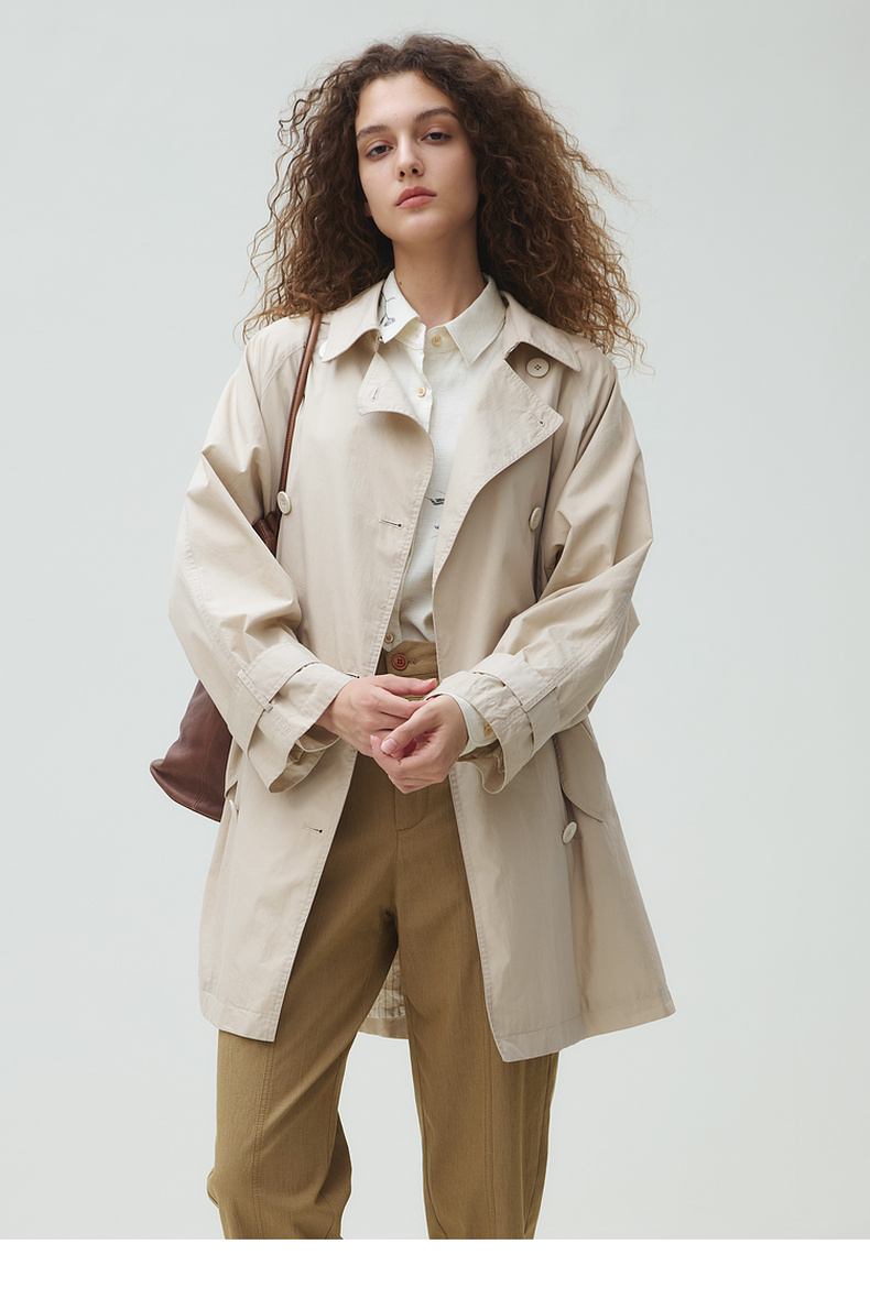 谜底风衣女2025秋新品通勤时尚A型翻领双排扣大廓形外套253ME1188