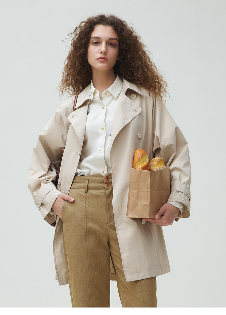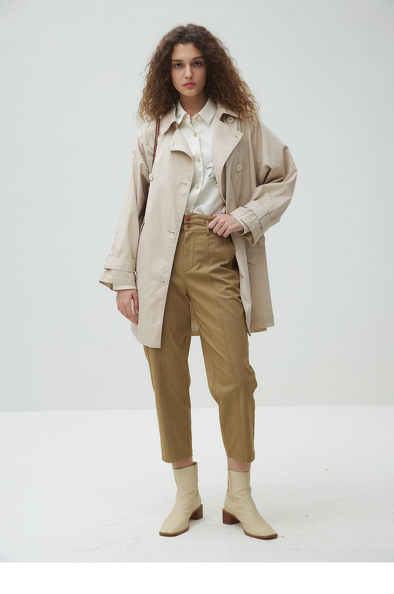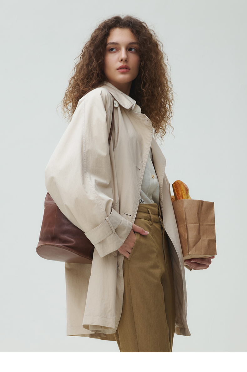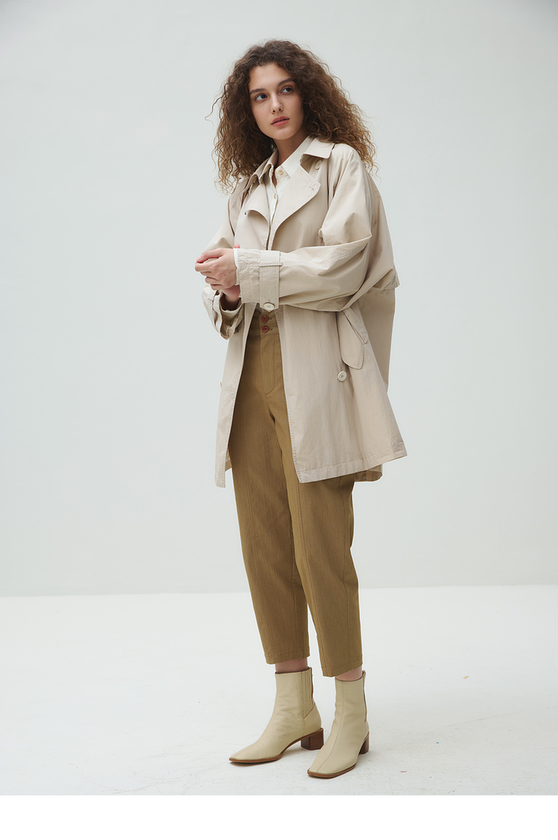 谜底风衣女2025秋新品通勤时尚A型翻领双排扣大廓形外套253ME1188