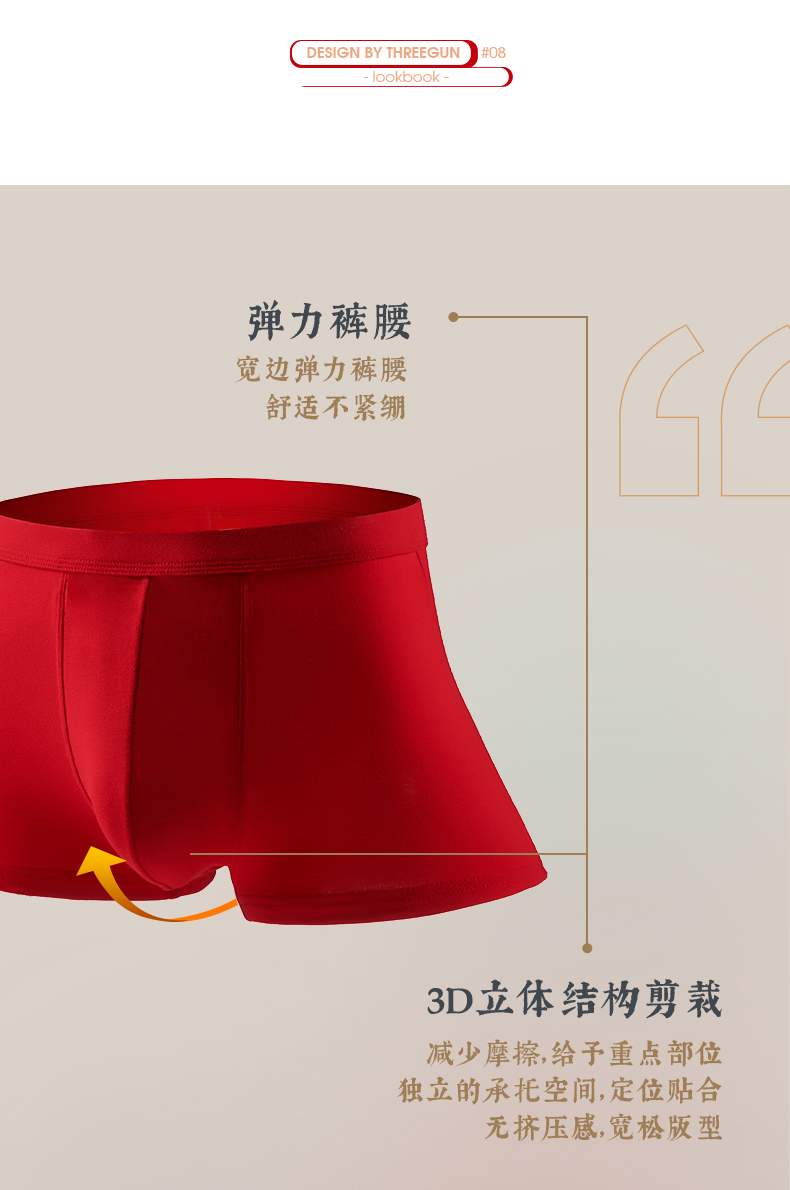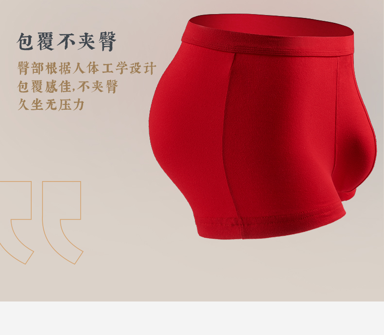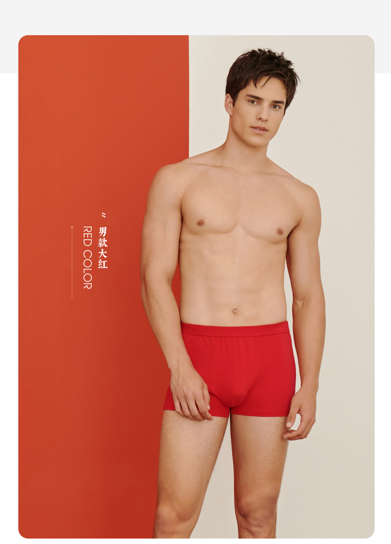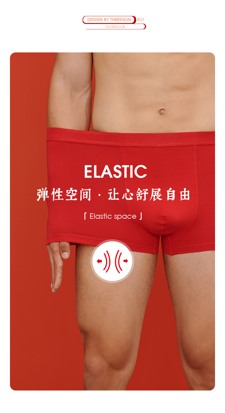 Threegun三枪 【丝柔长绒棉】吉庆大红男士包根平角短裤四角内裤(2枚装)-50659B121