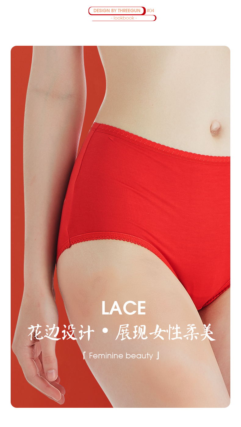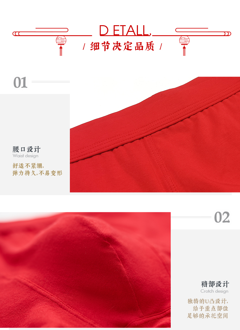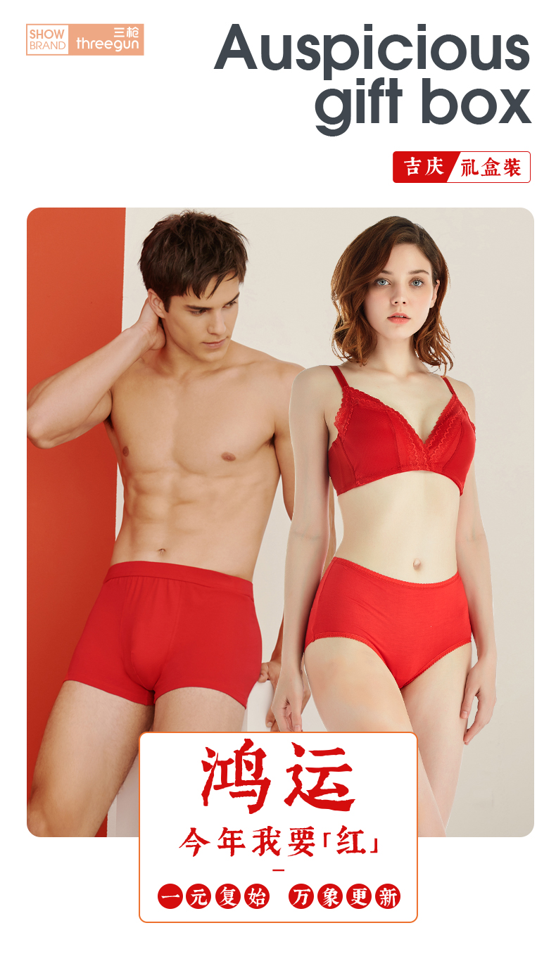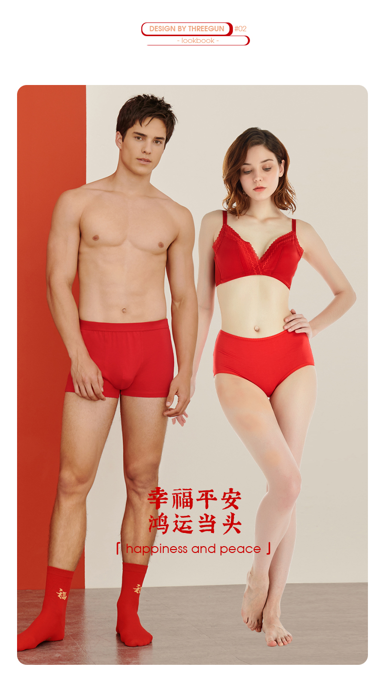 Threegun三枪 【丝柔长绒棉】吉庆大红男士包根平角短裤四角内裤(2枚装)-50659B121