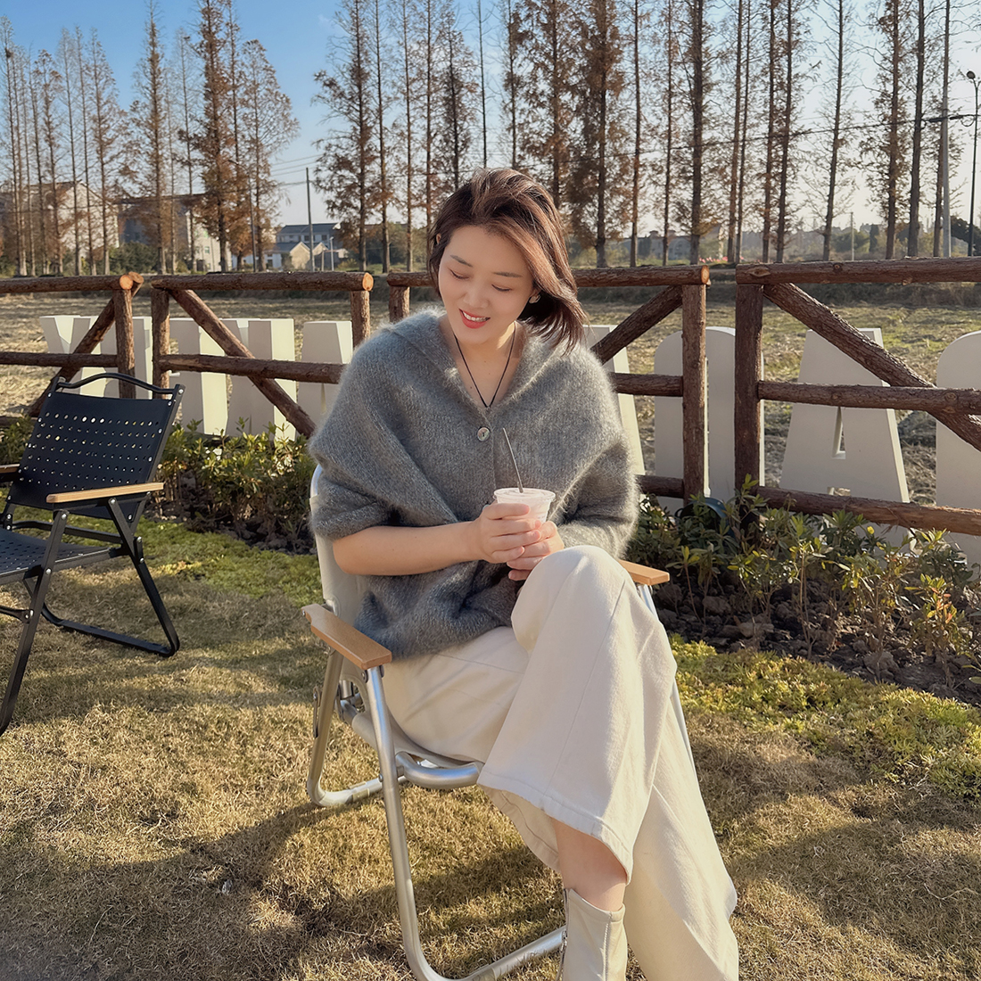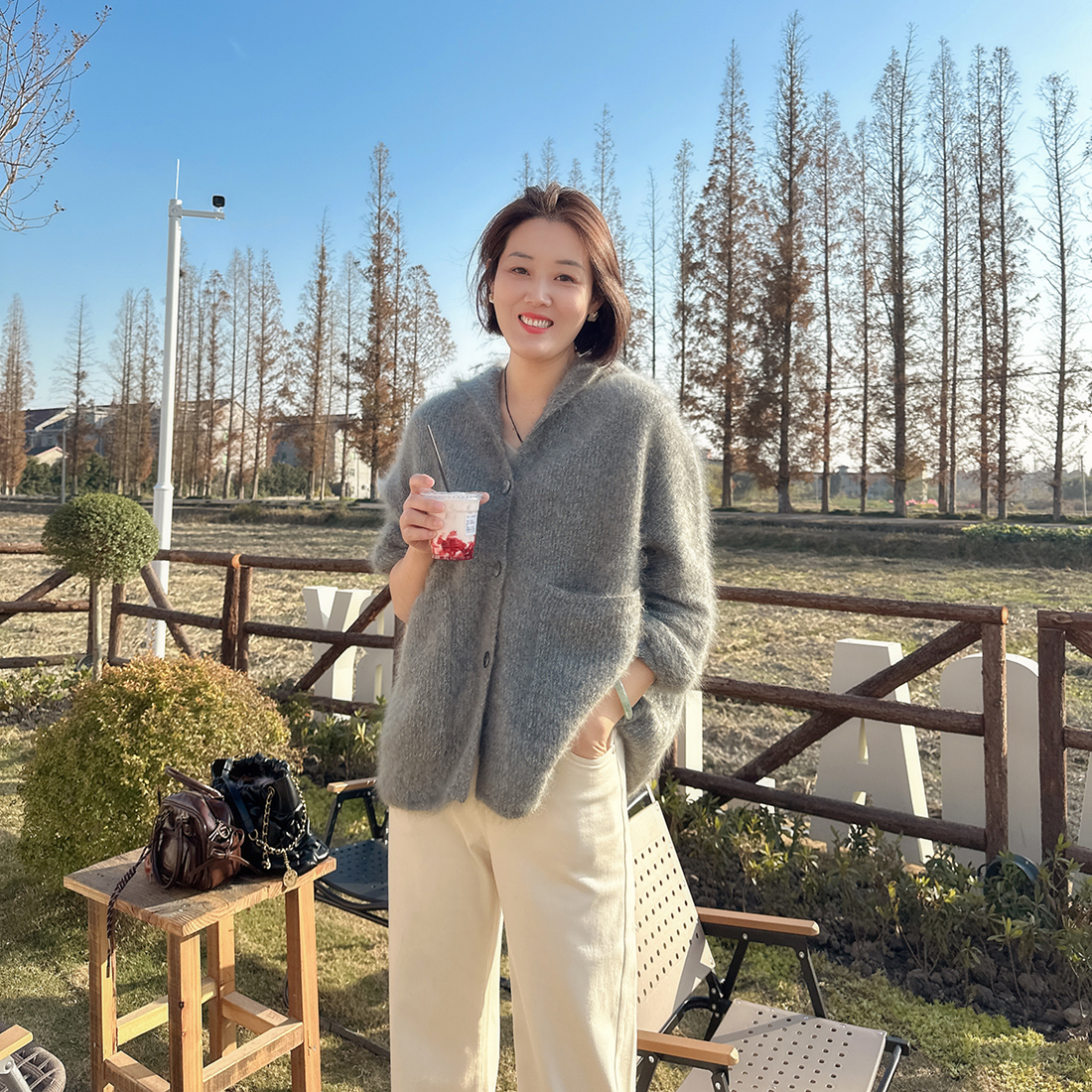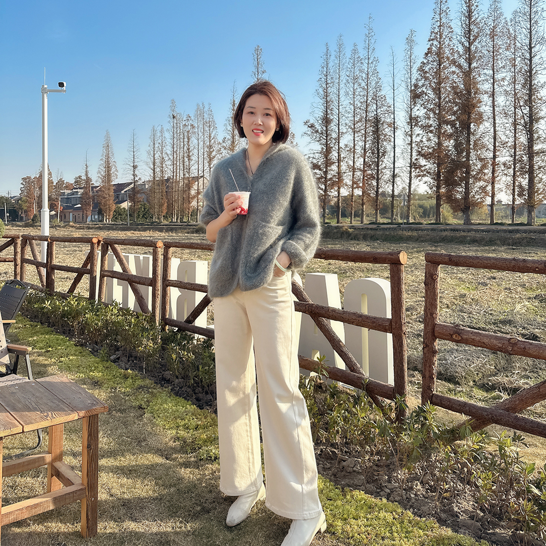 火桐hooton 薄荷巧克力山羊绒拉绒连帽开衫82831