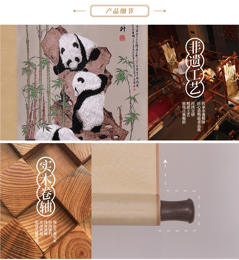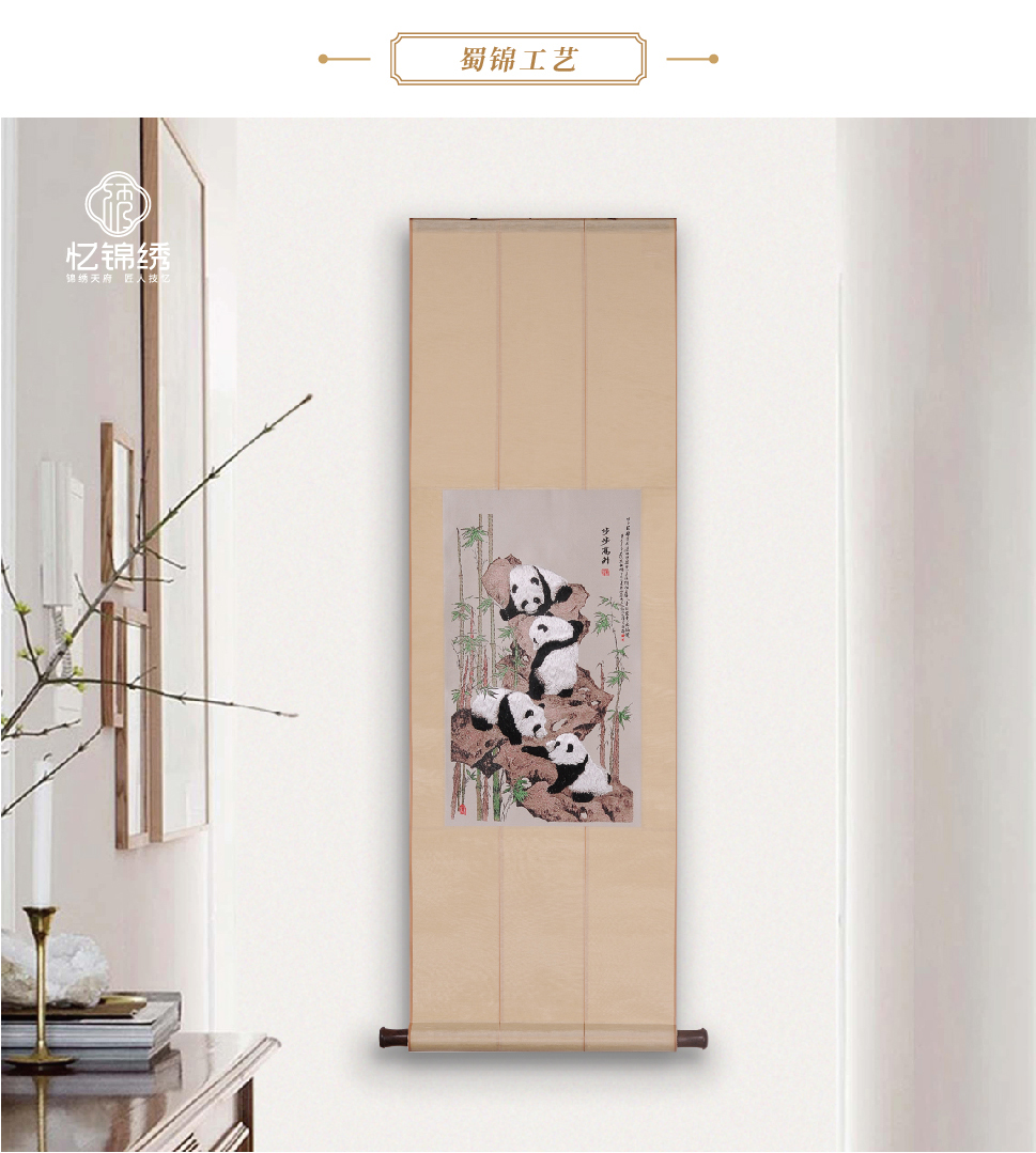 蜀绣双面绣-滚滚红荔双熊猫(精品绣)