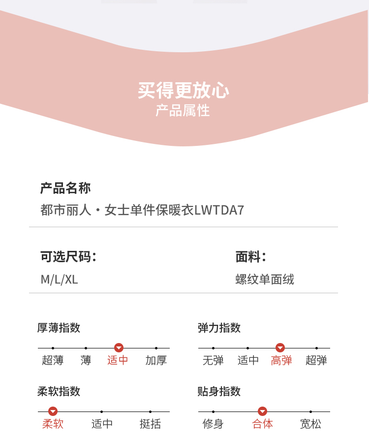 都市丽人保暖衣舒暖单件上衣螺纹单面绒中厚女士保暖衣单件上衣LWTDA7