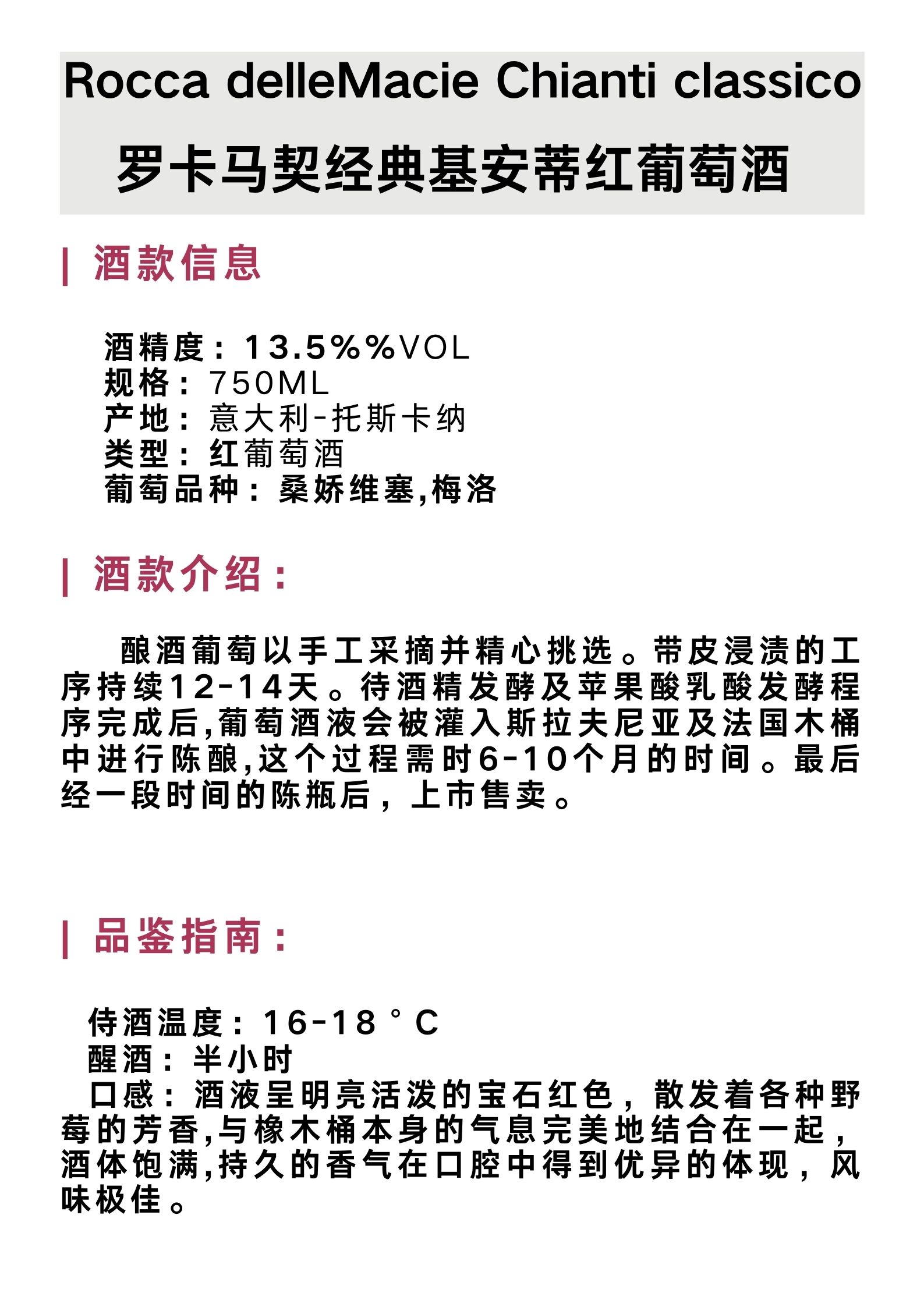 罗卡马契经典基安蒂红葡萄酒 Rocca delleMacie Chianti classico