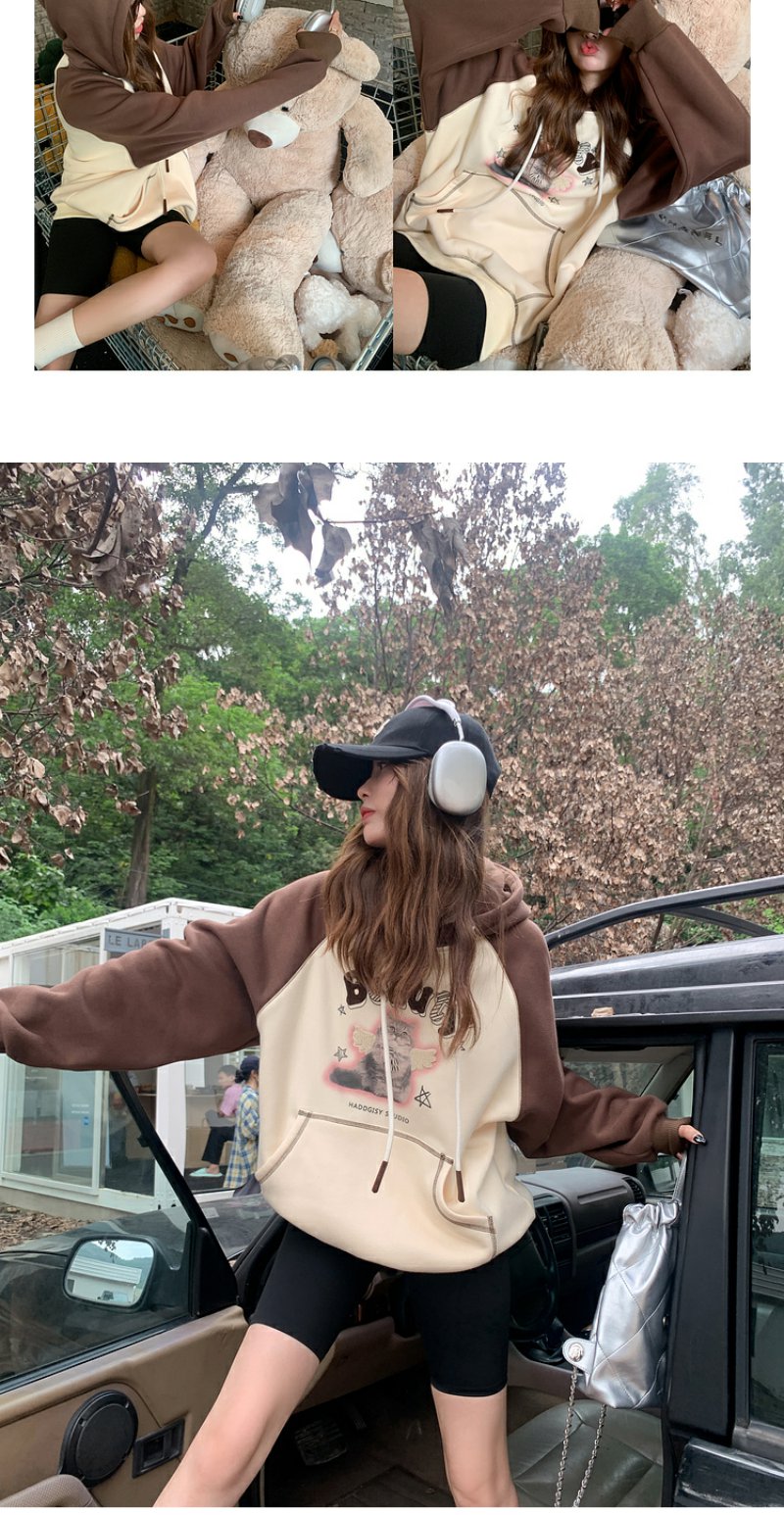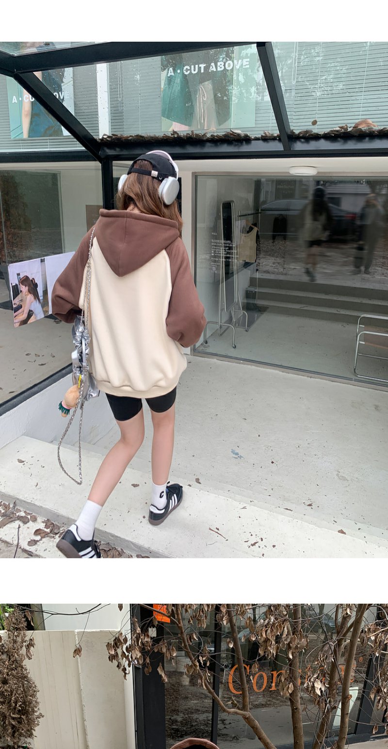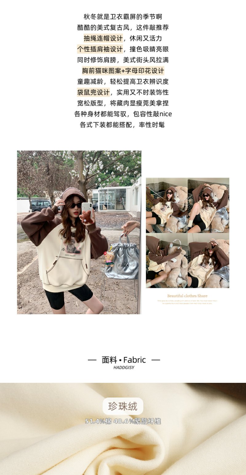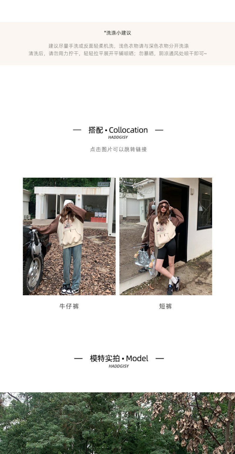 <曾小咸推荐>【美式复古】咖拼杏插肩袖卫衣