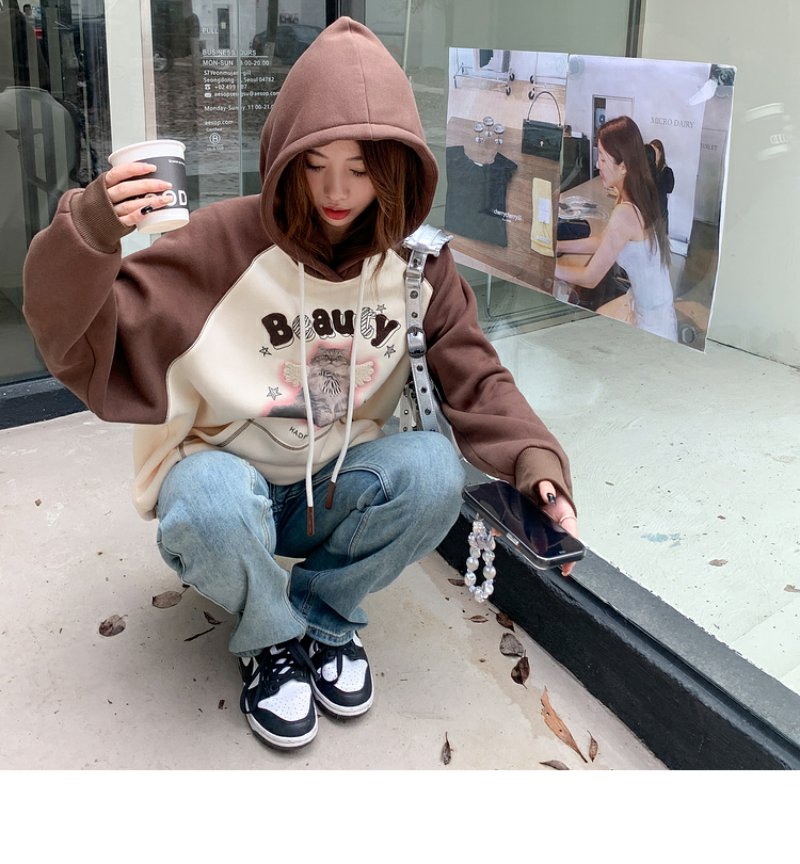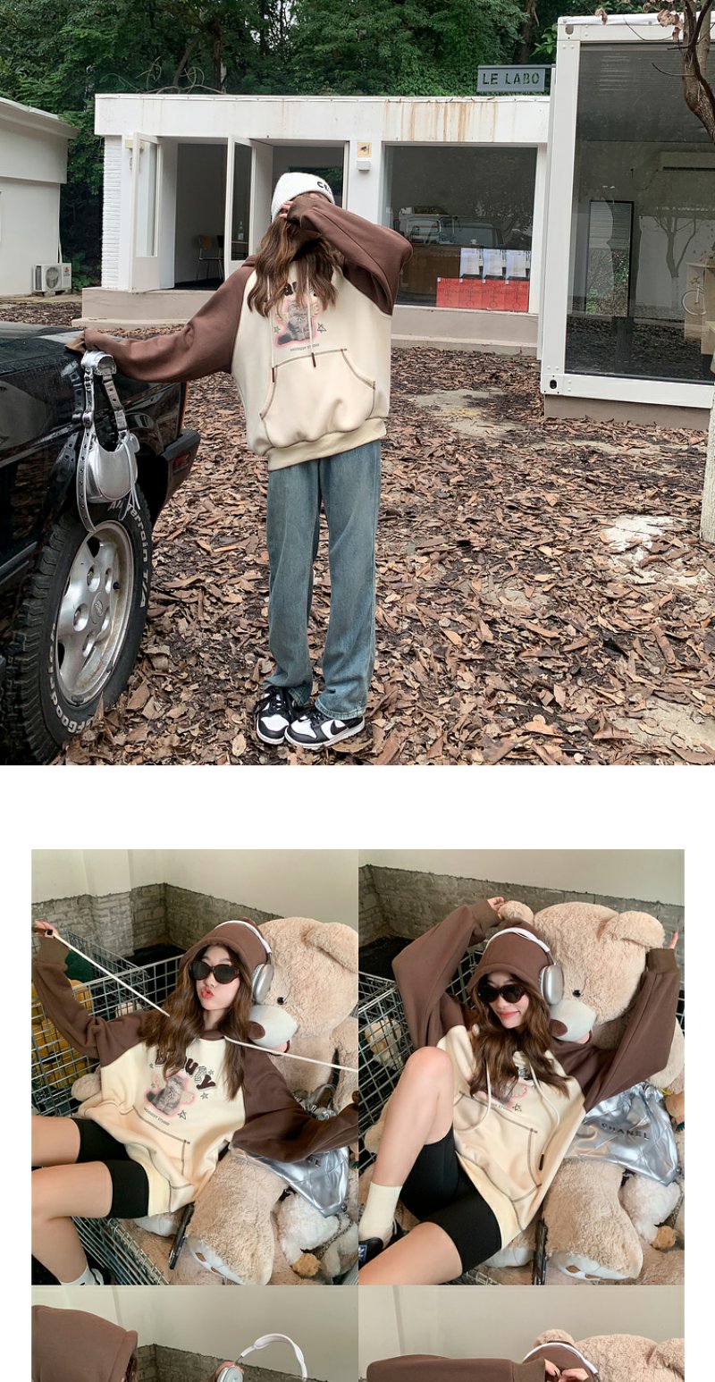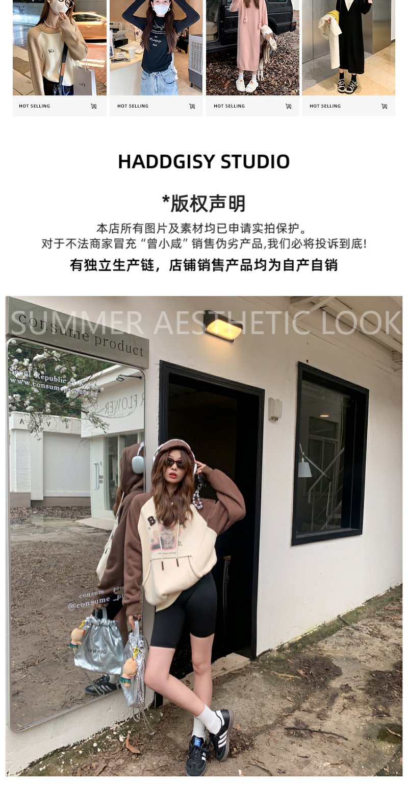 <曾小咸推荐>【美式复古】咖拼杏插肩袖卫衣