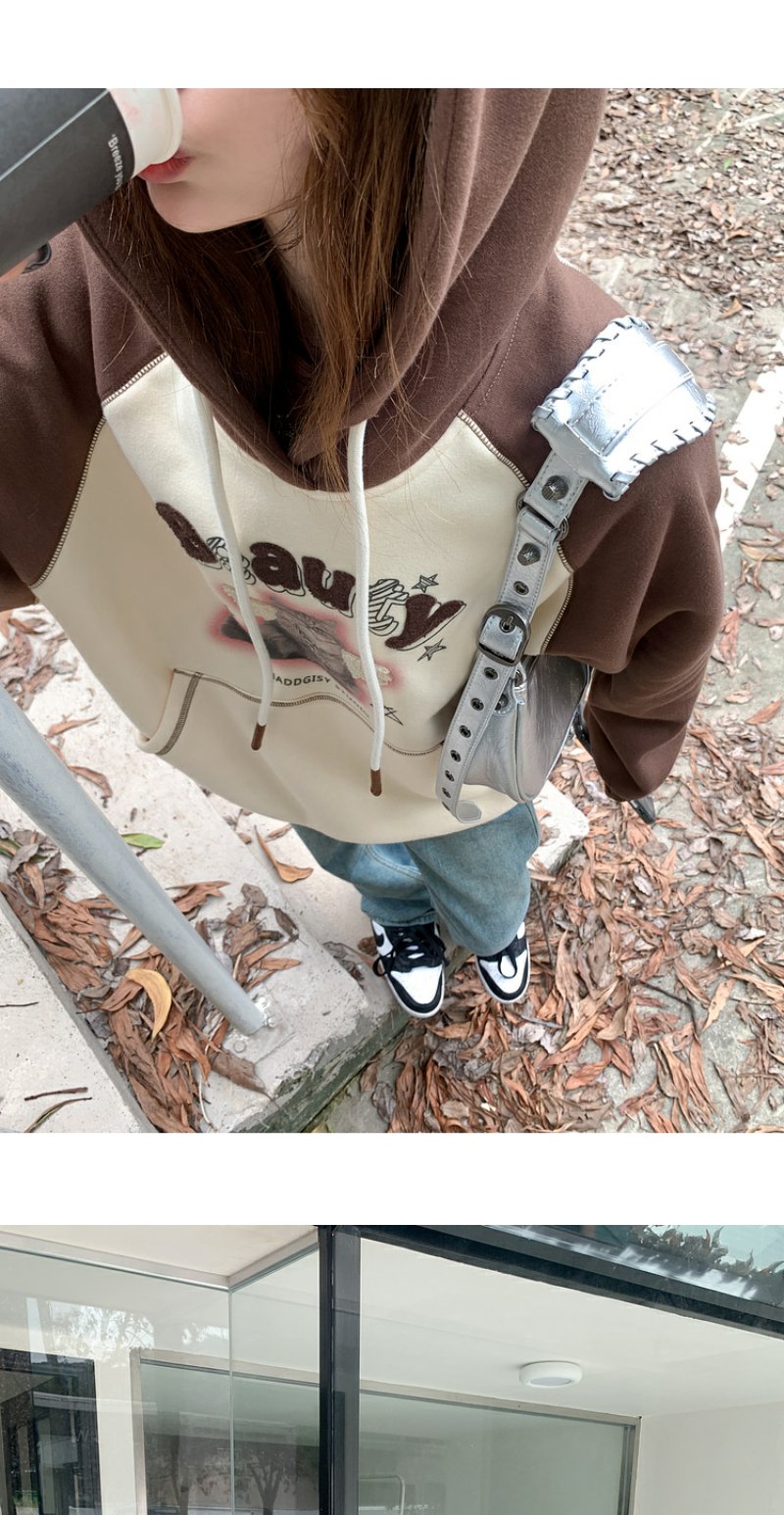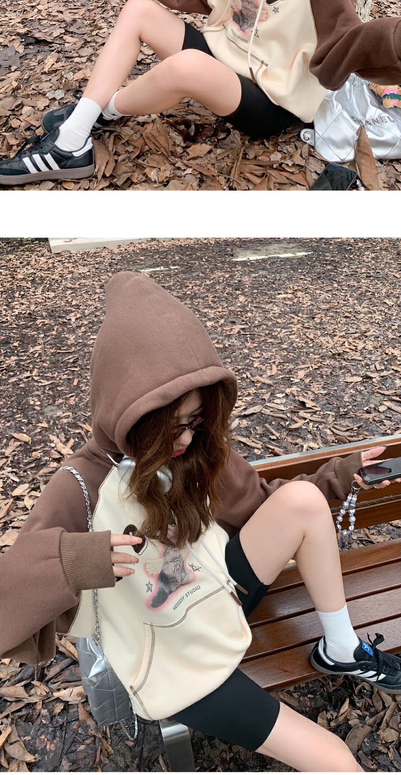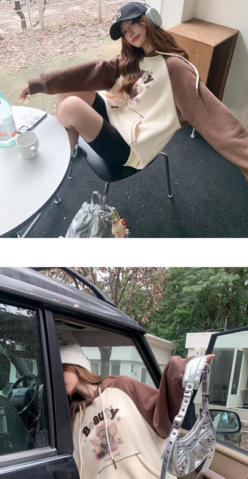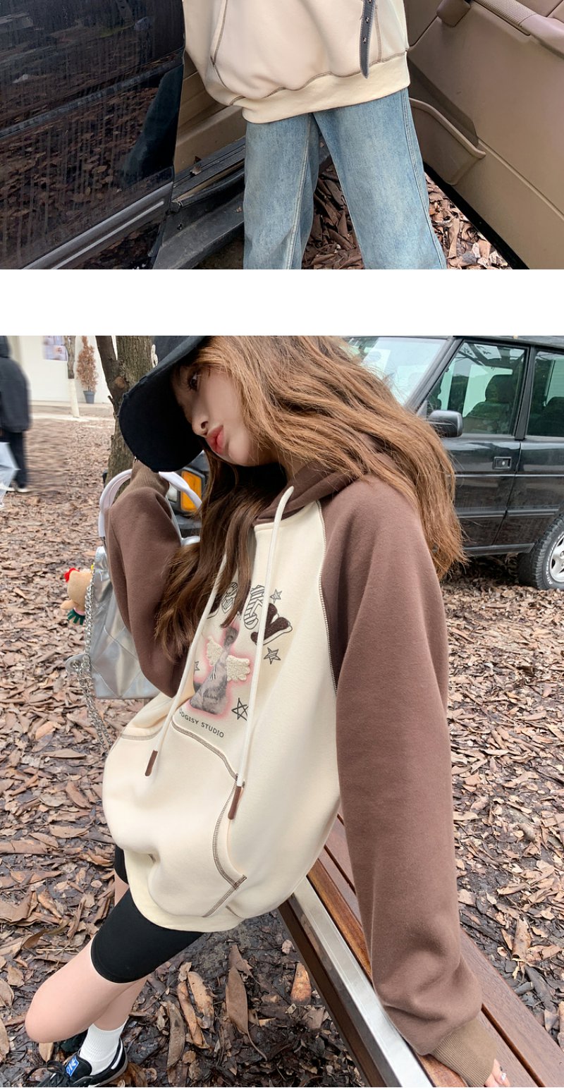 <曾小咸推荐>【美式复古】咖拼杏插肩袖卫衣