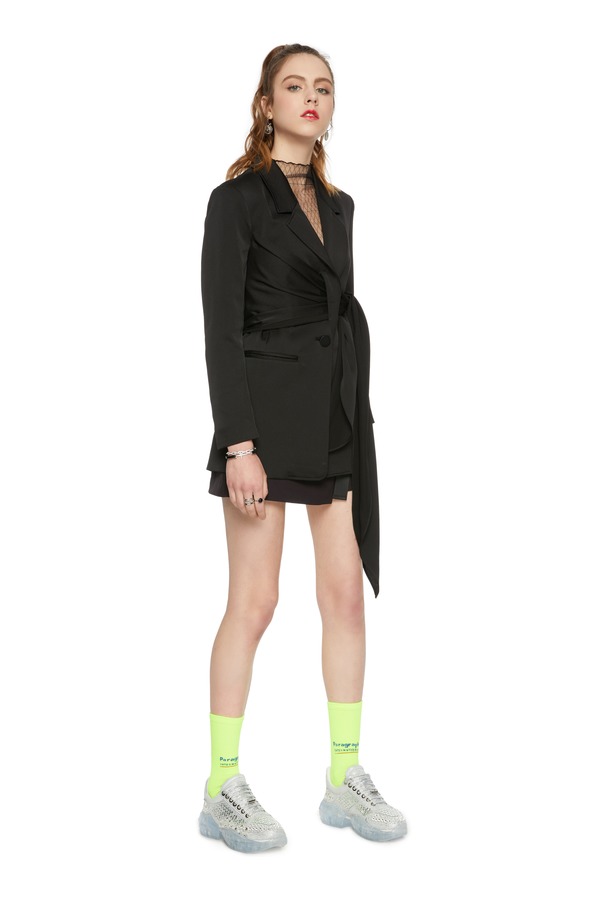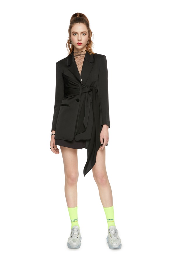 AUGUST 1 EIGHT 系带束腰黑色西装外套 5713