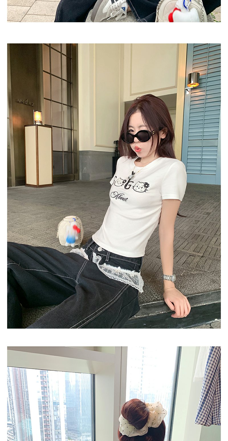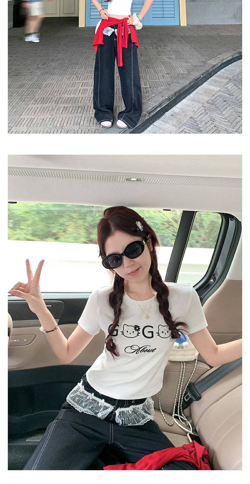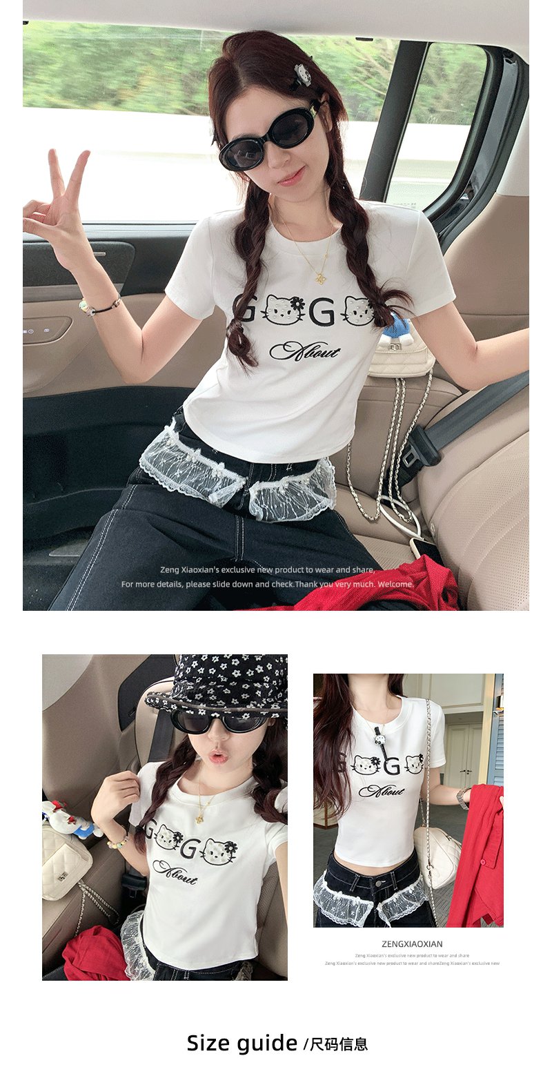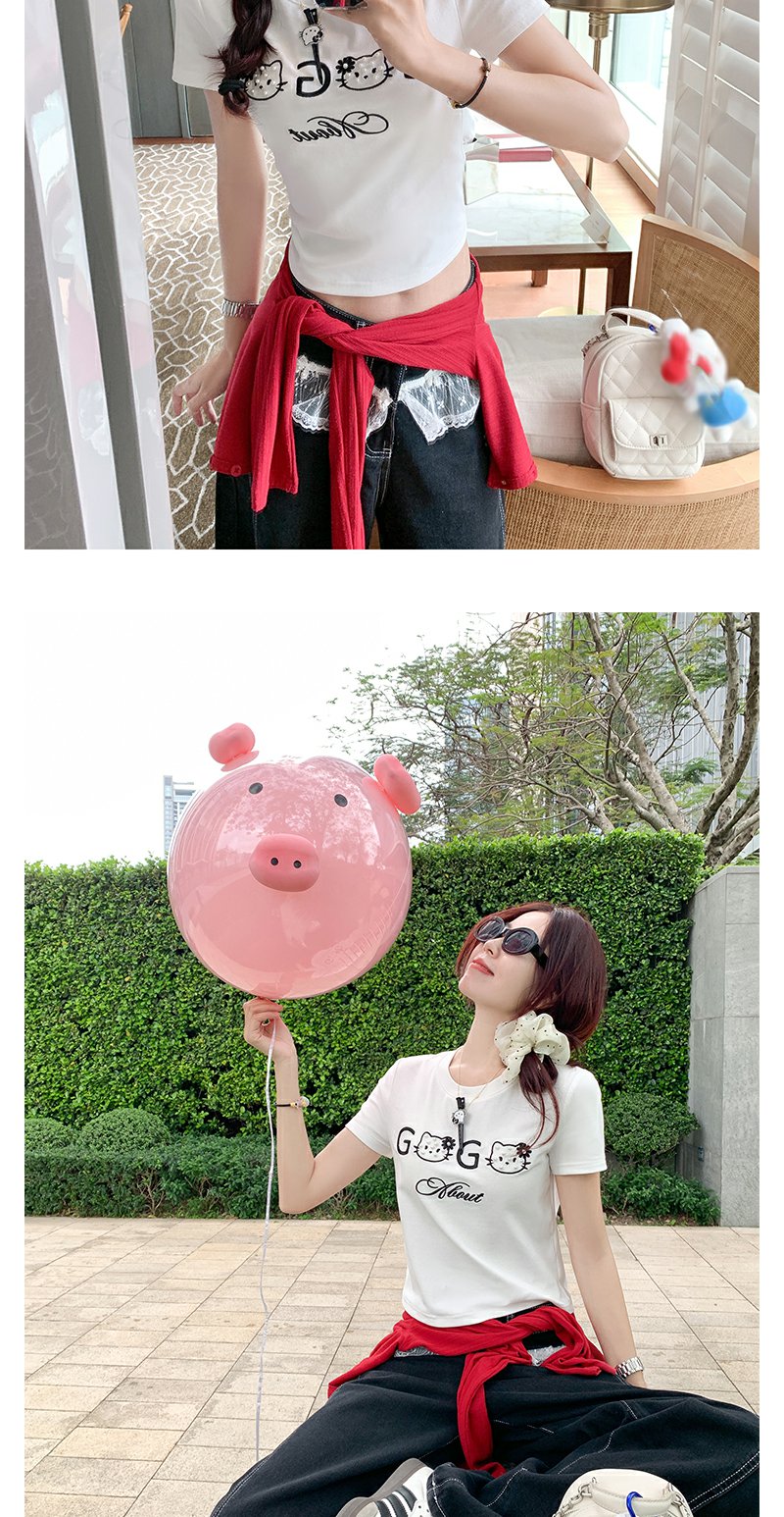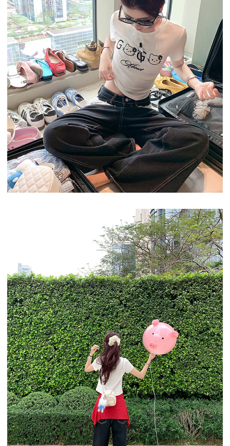 【110元任选2件】最后一波现货!2色韩系简约珍珠卡通猫修身百搭短袖T恤
