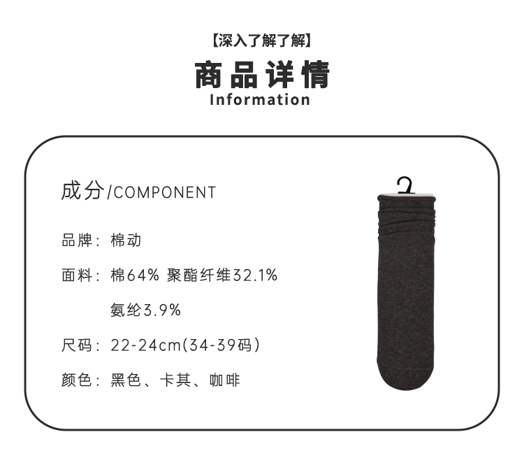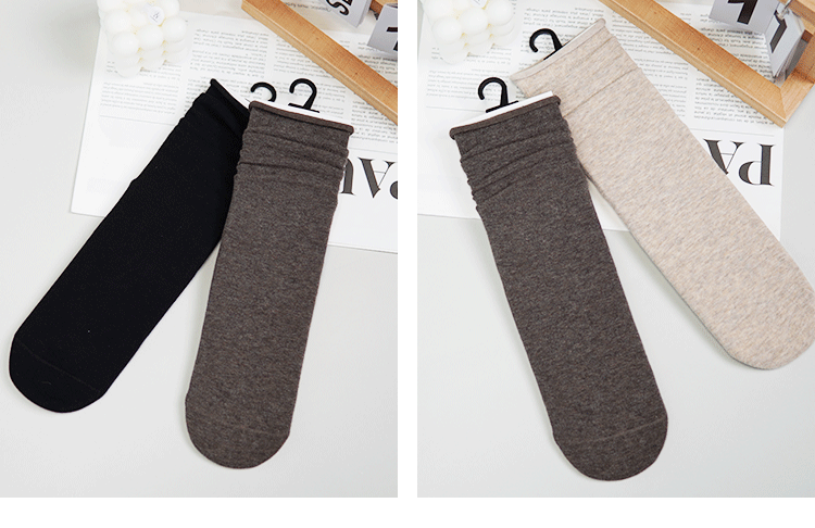 女【2双装 6双6折】丨女士秋冬中筒袜堆堆袜中长筒棉袜素色袜子纯色女袜【2422205】