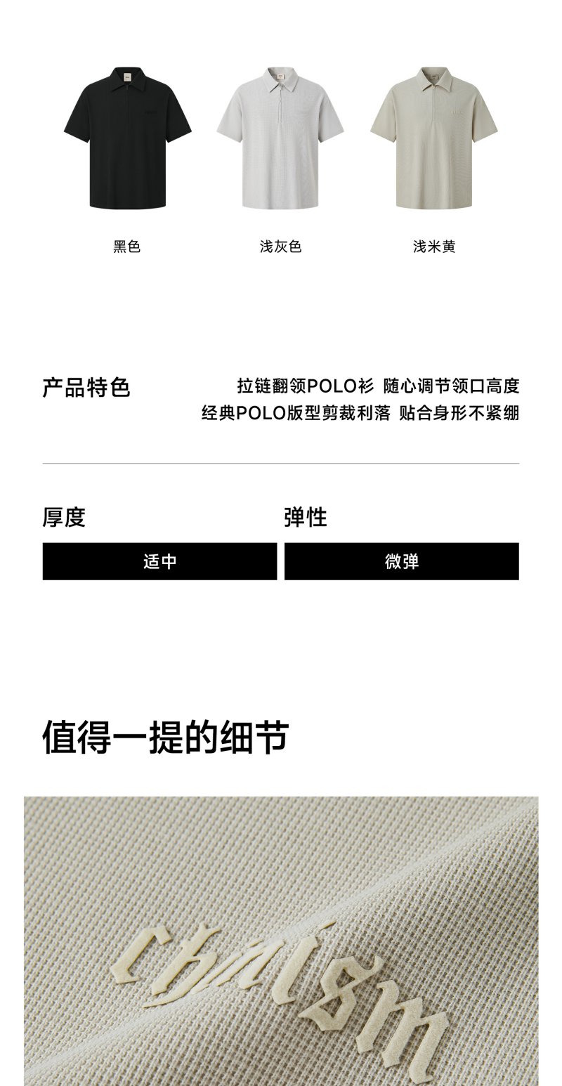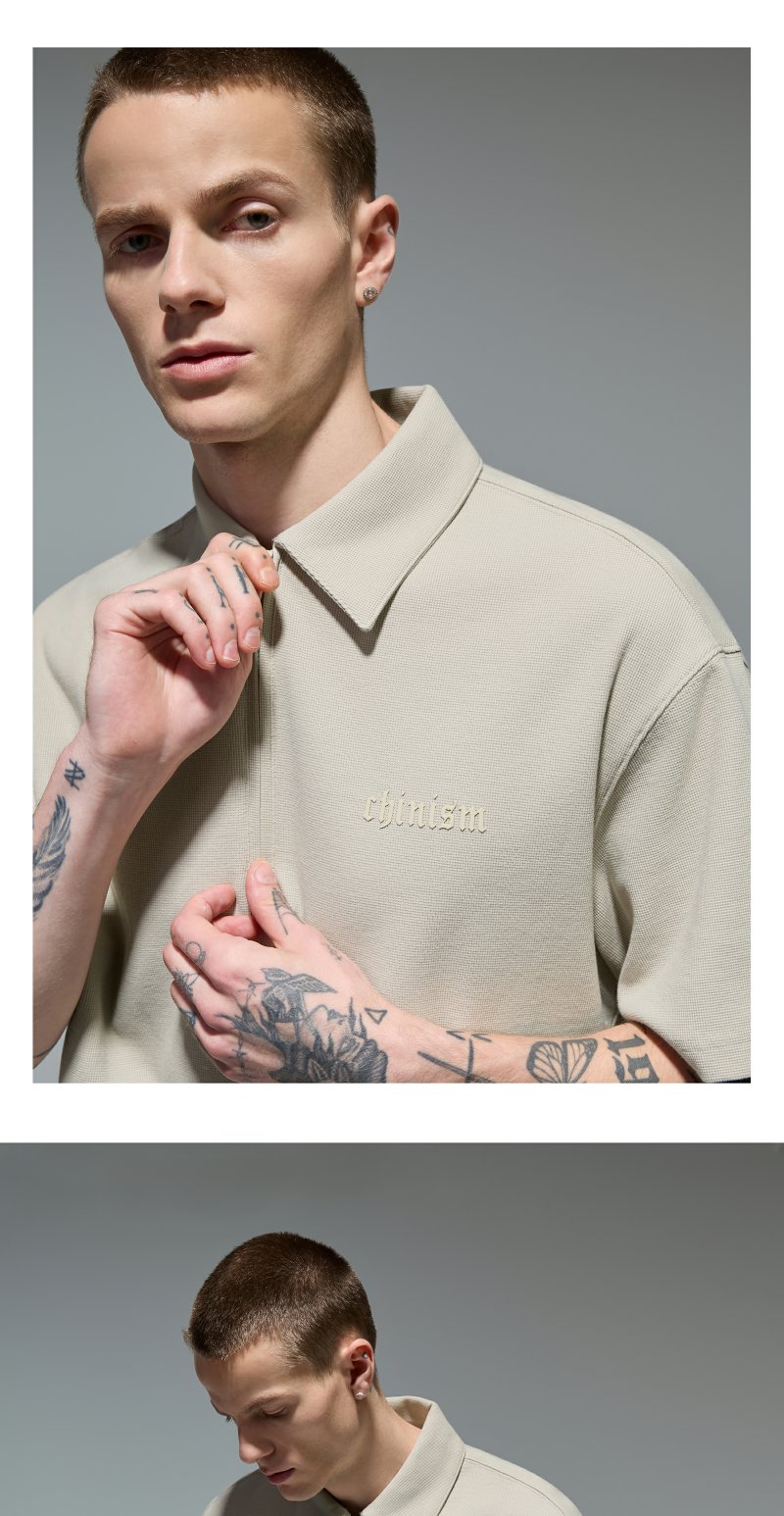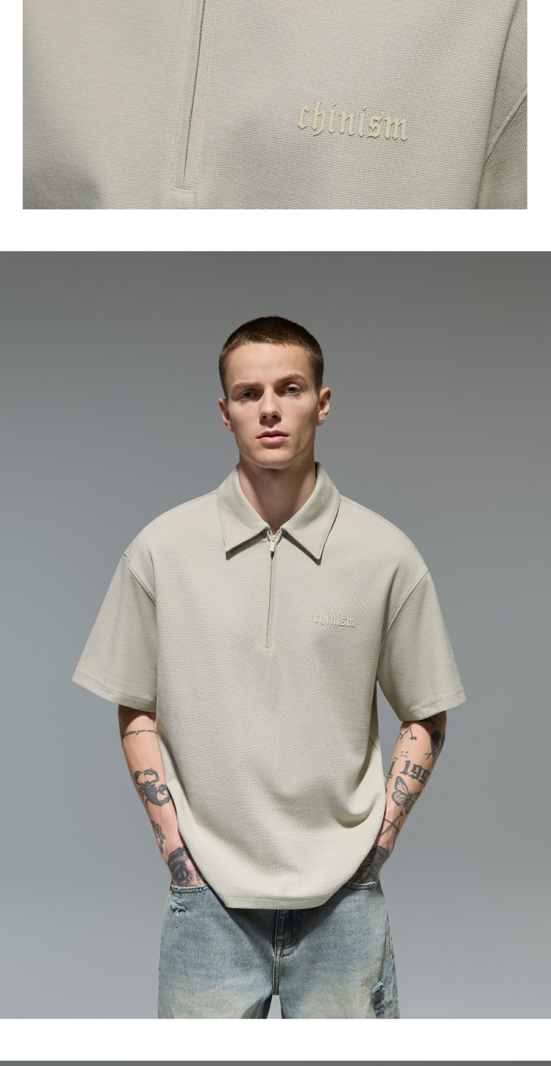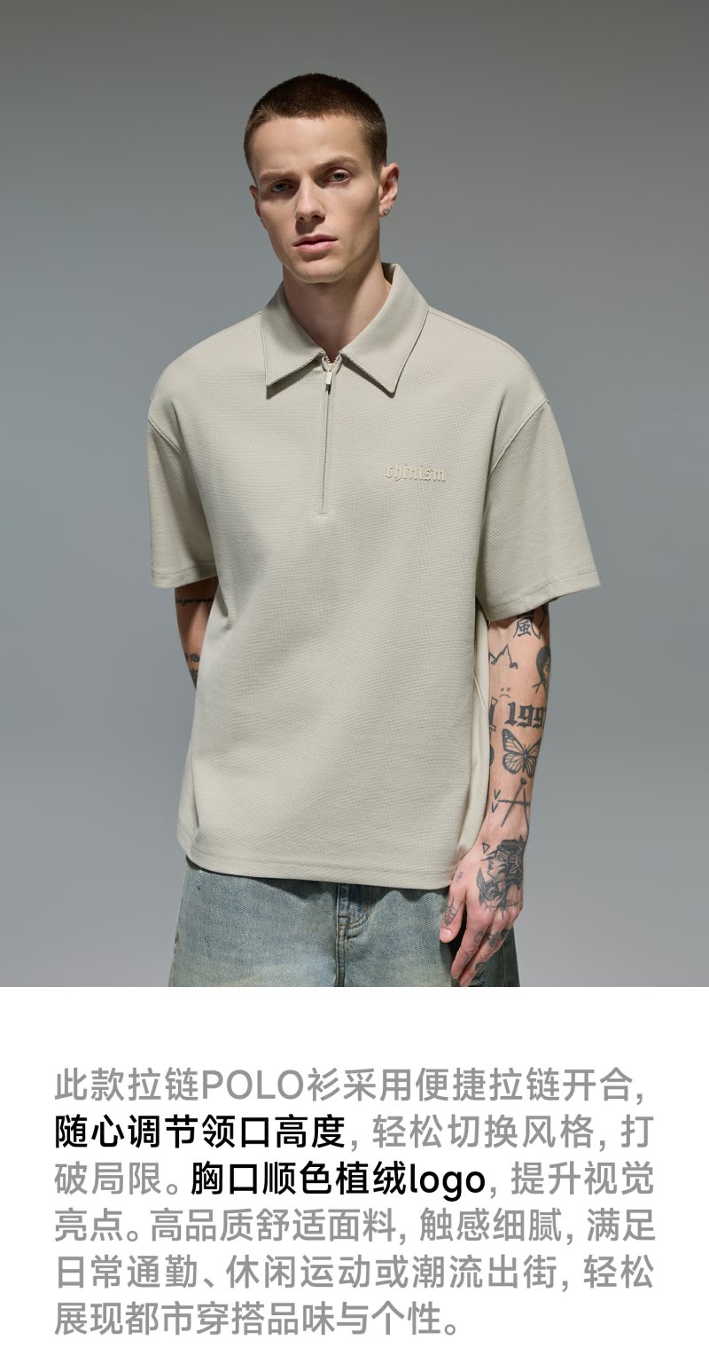 CHINISM赤尘 半拉链短袖polo衫男夏季宽松T恤男士翻领半袖上衣