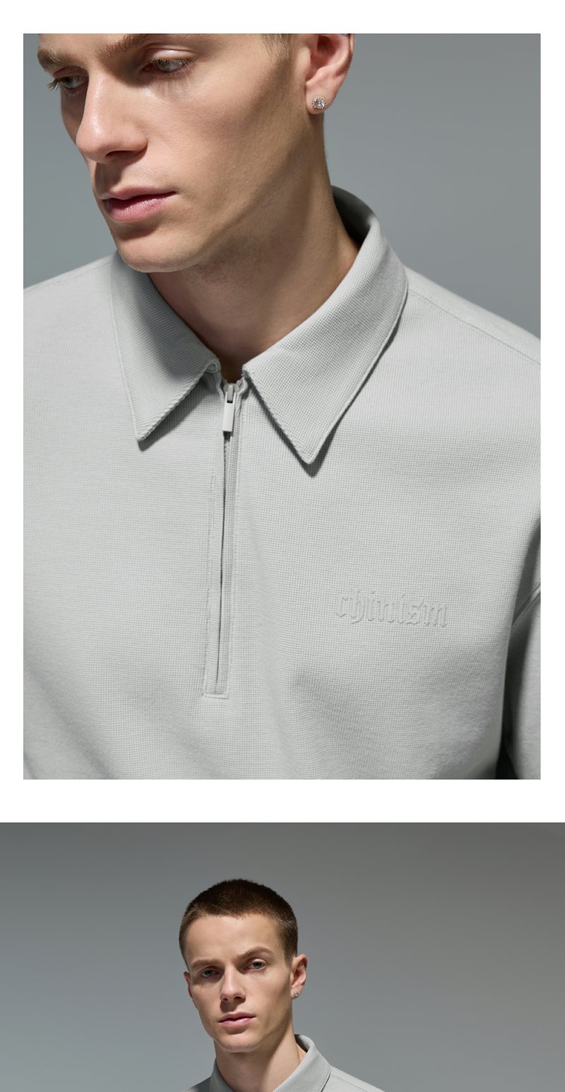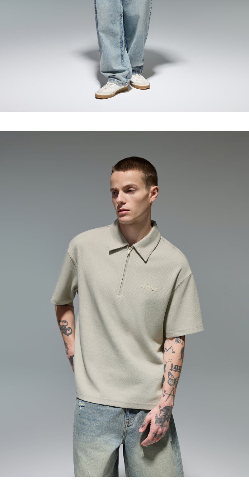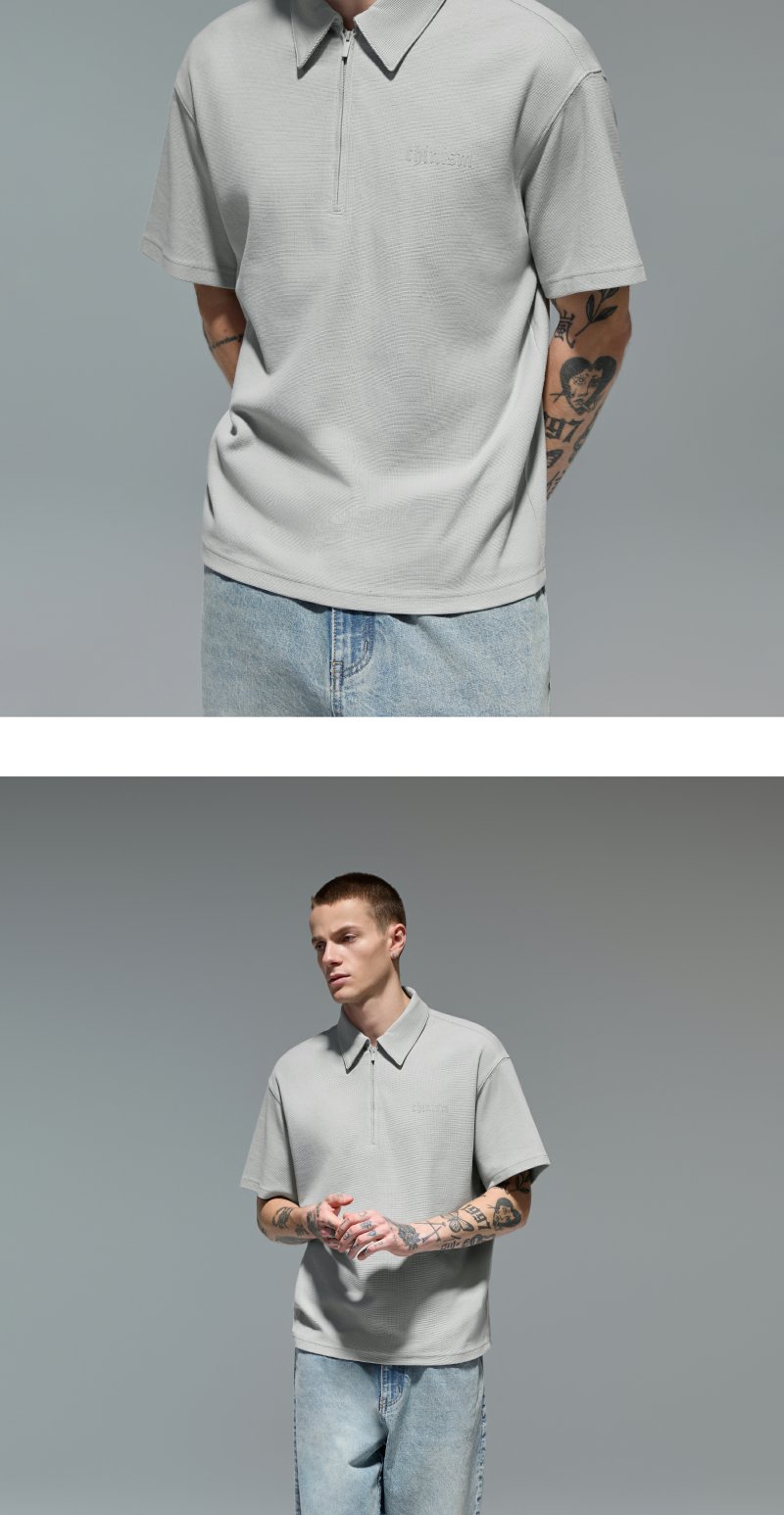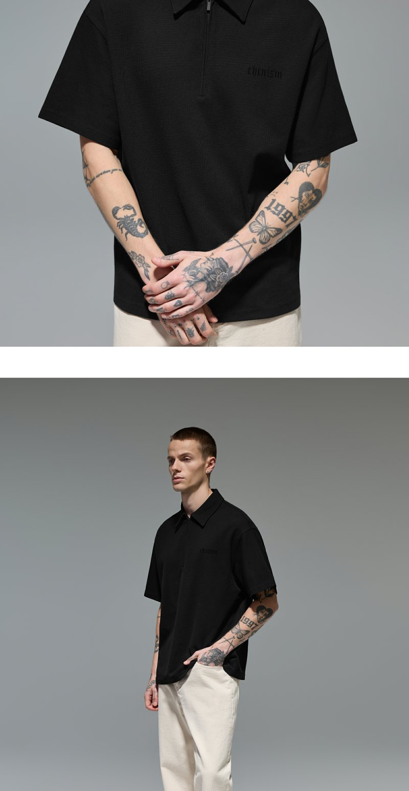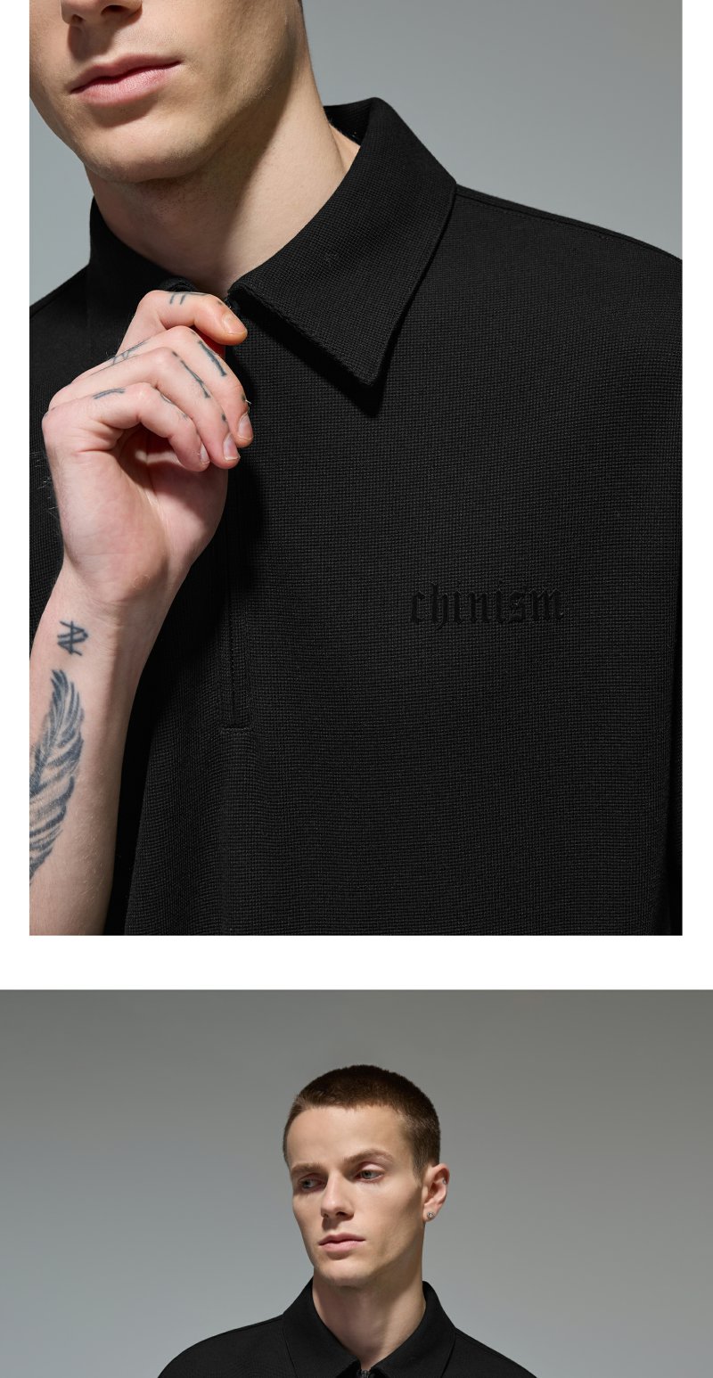 CHINISM赤尘 半拉链短袖polo衫男夏季宽松T恤男士翻领半袖上衣
