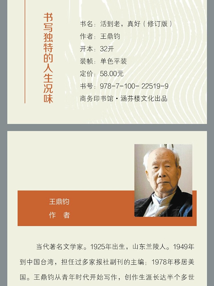 写这本小书,想和朋友们共同勉励,要能活得久,要能享用余年。书是薄了一点,现在增补了许多新文章,称为新版。这几年,多少应该有点进步,但愿新版有胜前版,能入你的慧眼。