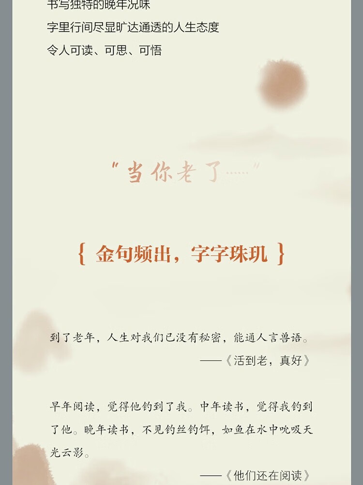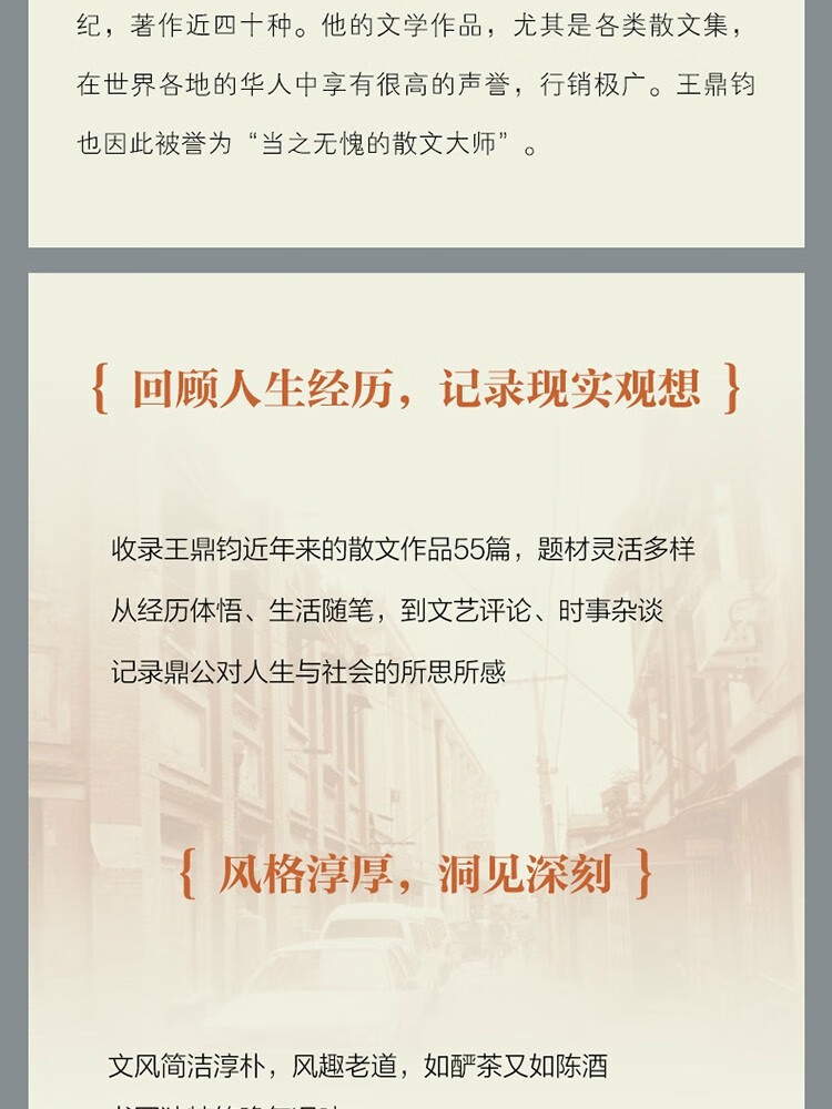②文章体裁灵活,风格淳厚,技巧圆熟,书写独特的晚年况味,尽显作者旷达、通透的人生态度,令人可读、可思、可悟。