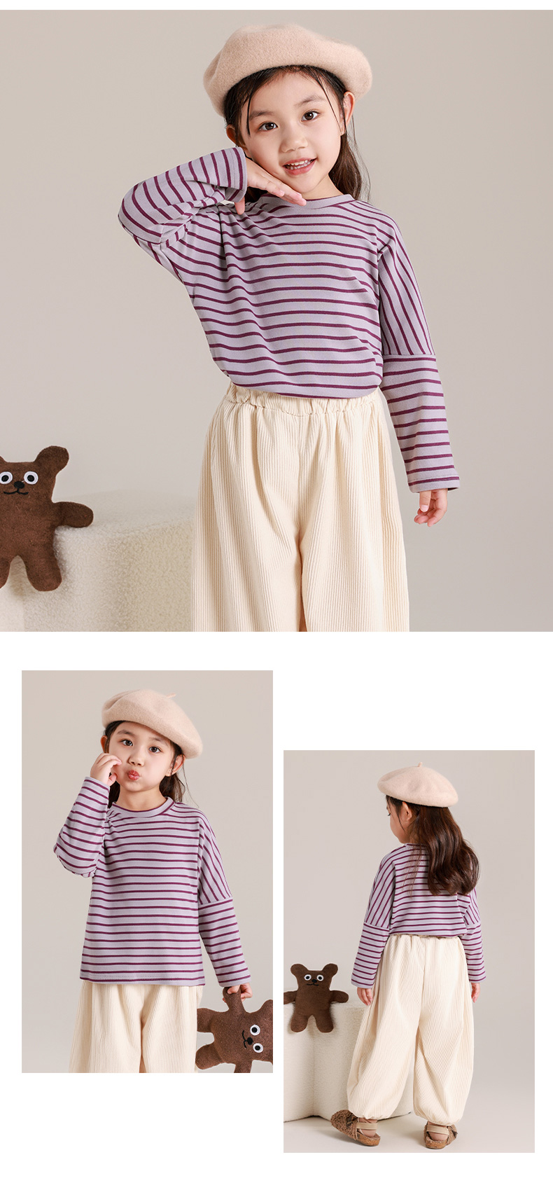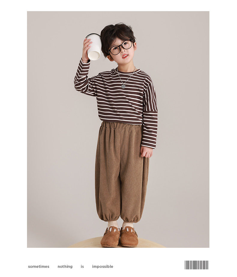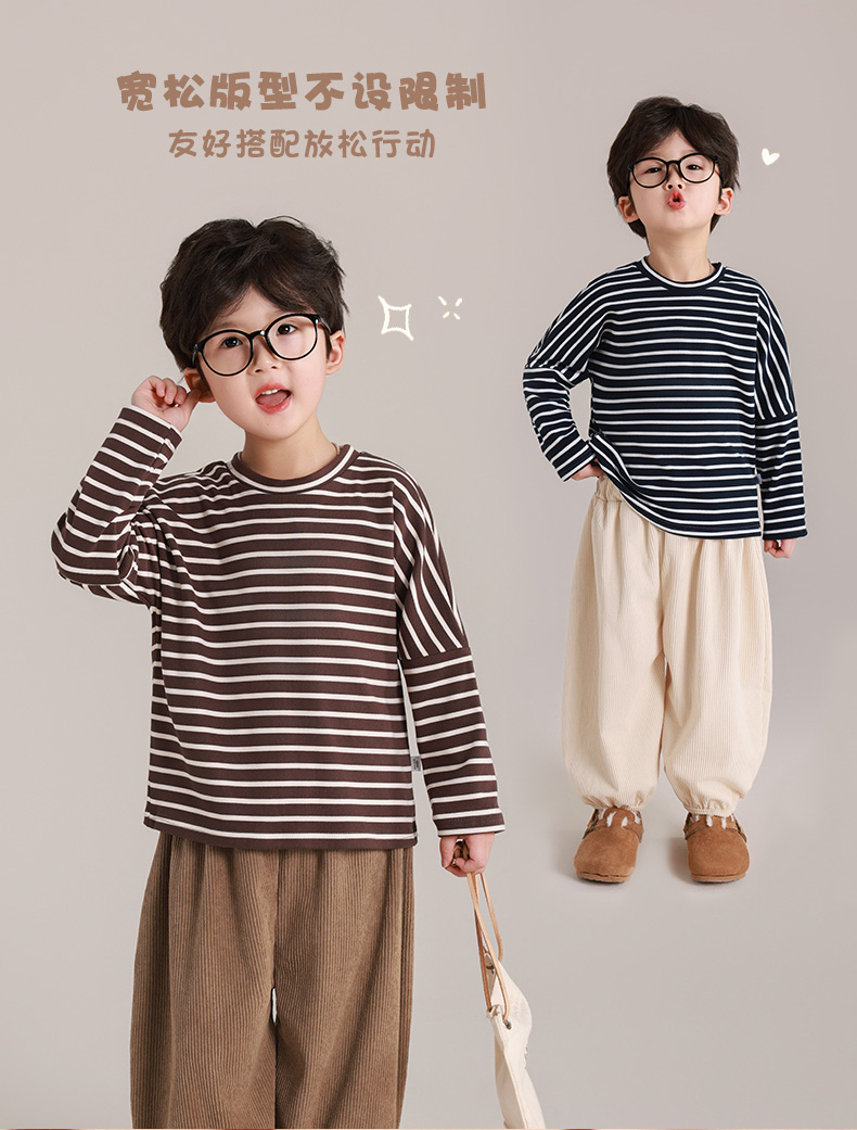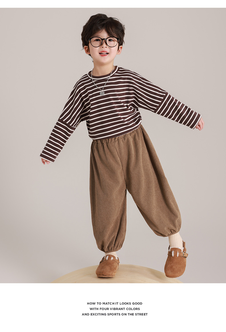 【39.9/2件起】🇰🇷超韩系小朋友👧🏻👦🏻穿搭儿童秋季长袖灯笼裤套装条纹打底衫男童时尚复古百搭上衣聚