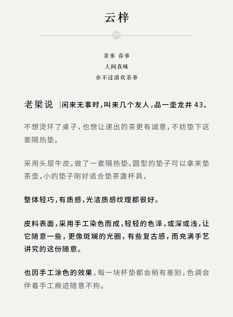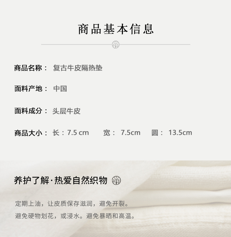 牧衣游 复古头层牛皮隔热垫---- 云梓【不支持会员折】