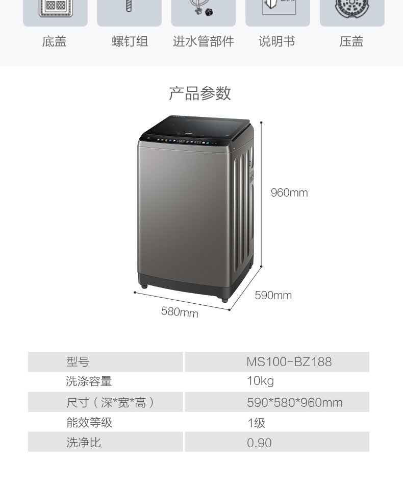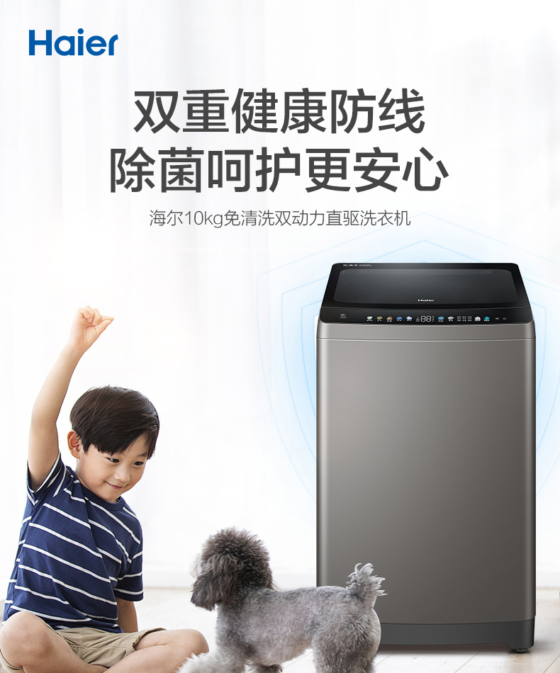 海尔10公斤免清洗双动力波轮洗衣机MS100-BZ188Z