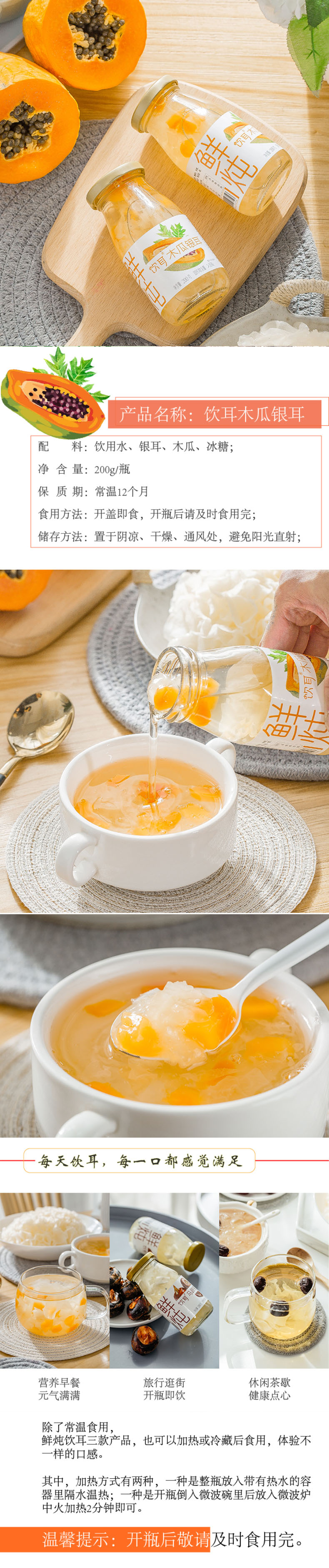 饮耳牌鲜炖银耳羹(木瓜银耳)200g/瓶