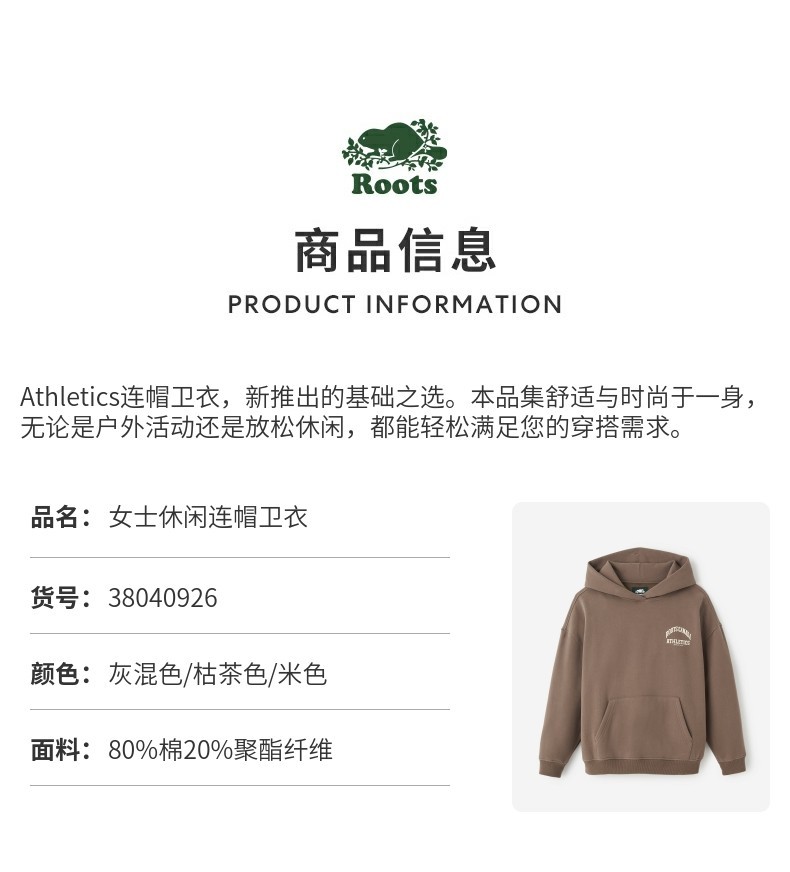 【2件9折】【ROOTS】女式休闲连帽卫衣