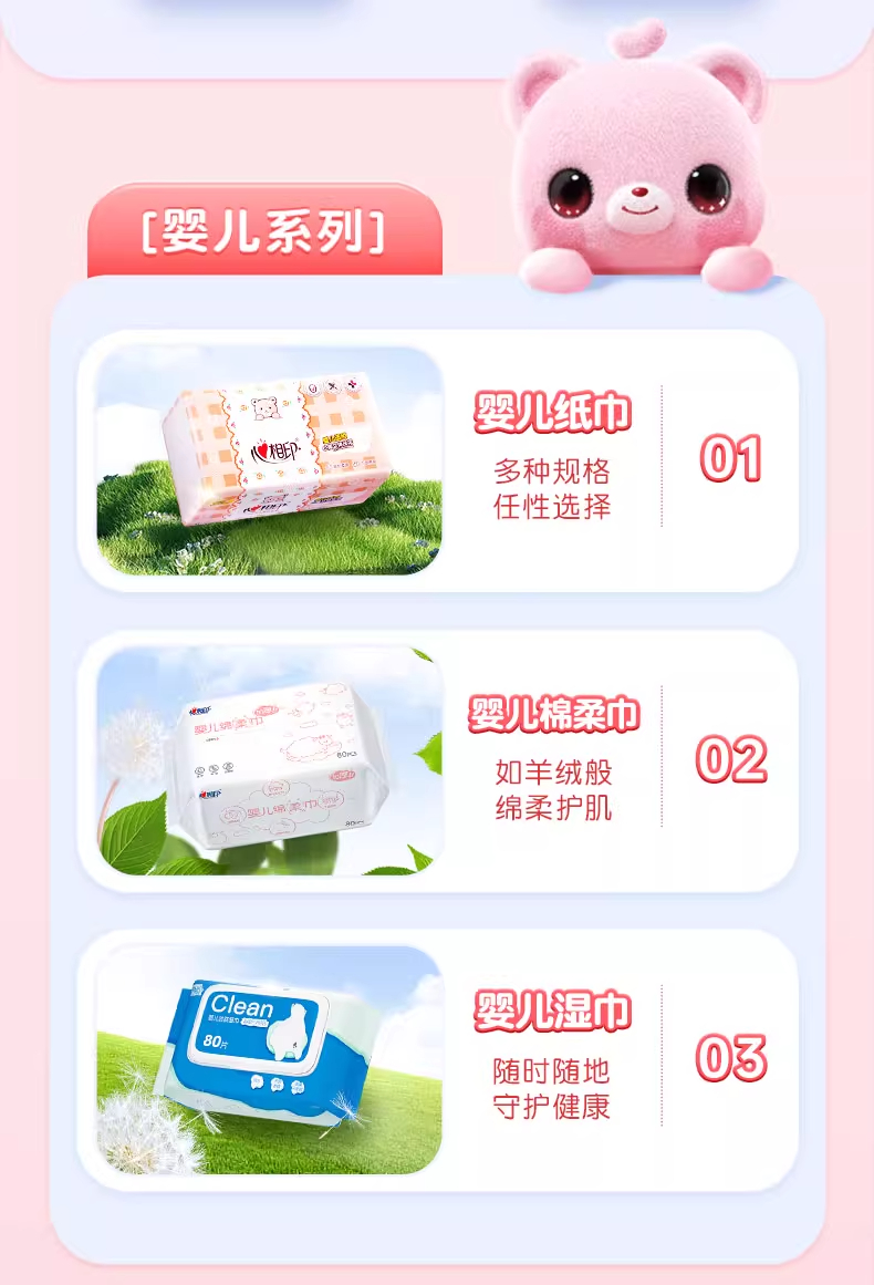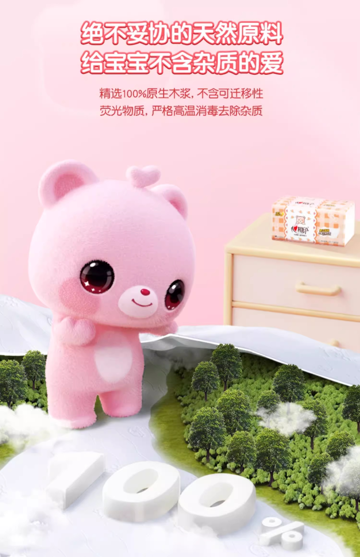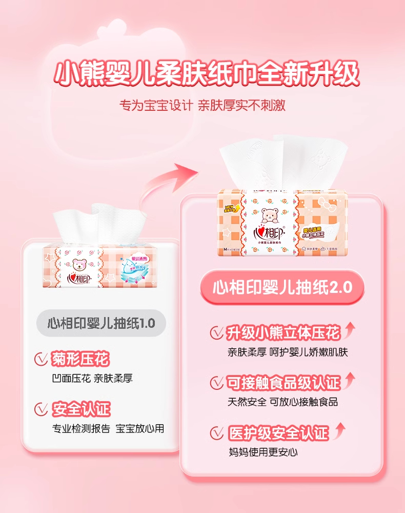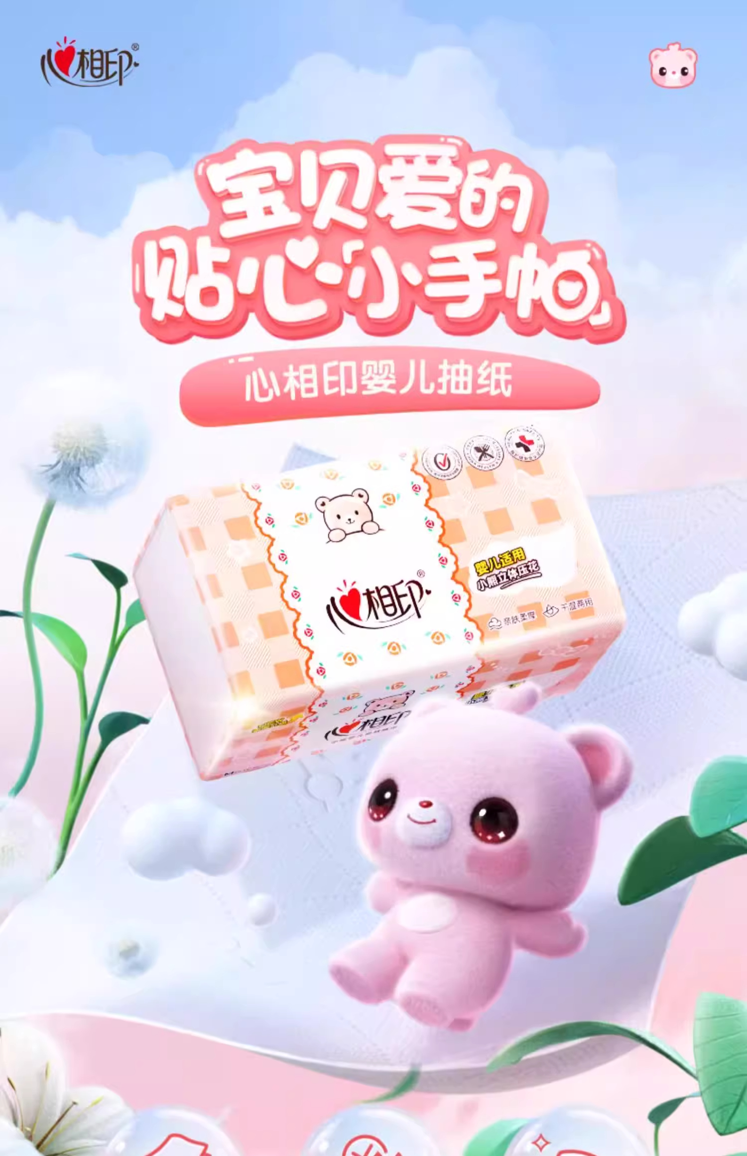 【自营】 心相印 婴儿三层立体压花塑装面巾纸 亲肤厚实不刺激 100抽*18包
