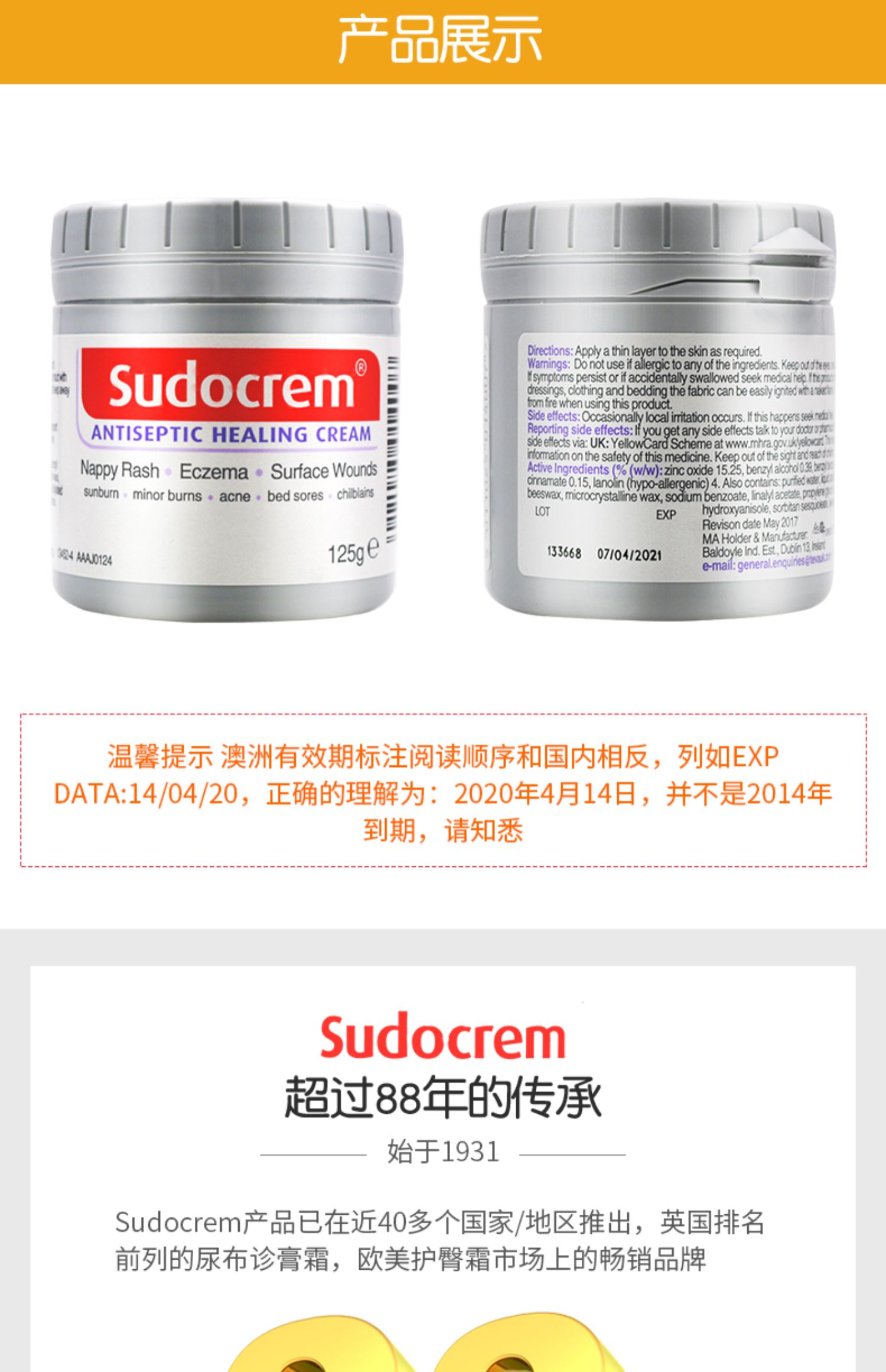 英国sudocrem屁屁霜护臀霜125g/国产版屁屁乐60g