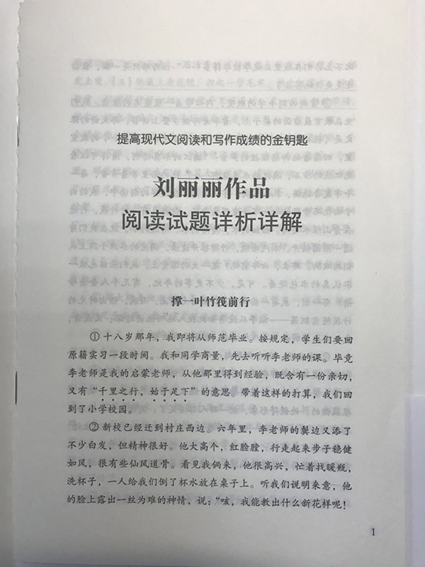 随书附赠《提高现代文阅读和写作成绩的金钥匙:刘丽丽作品阅读试题详析详解》1册