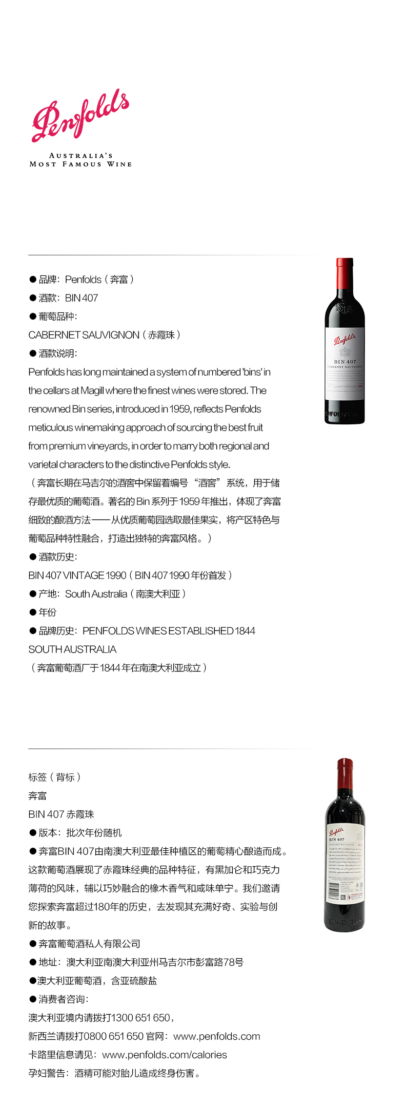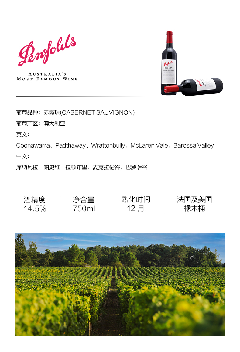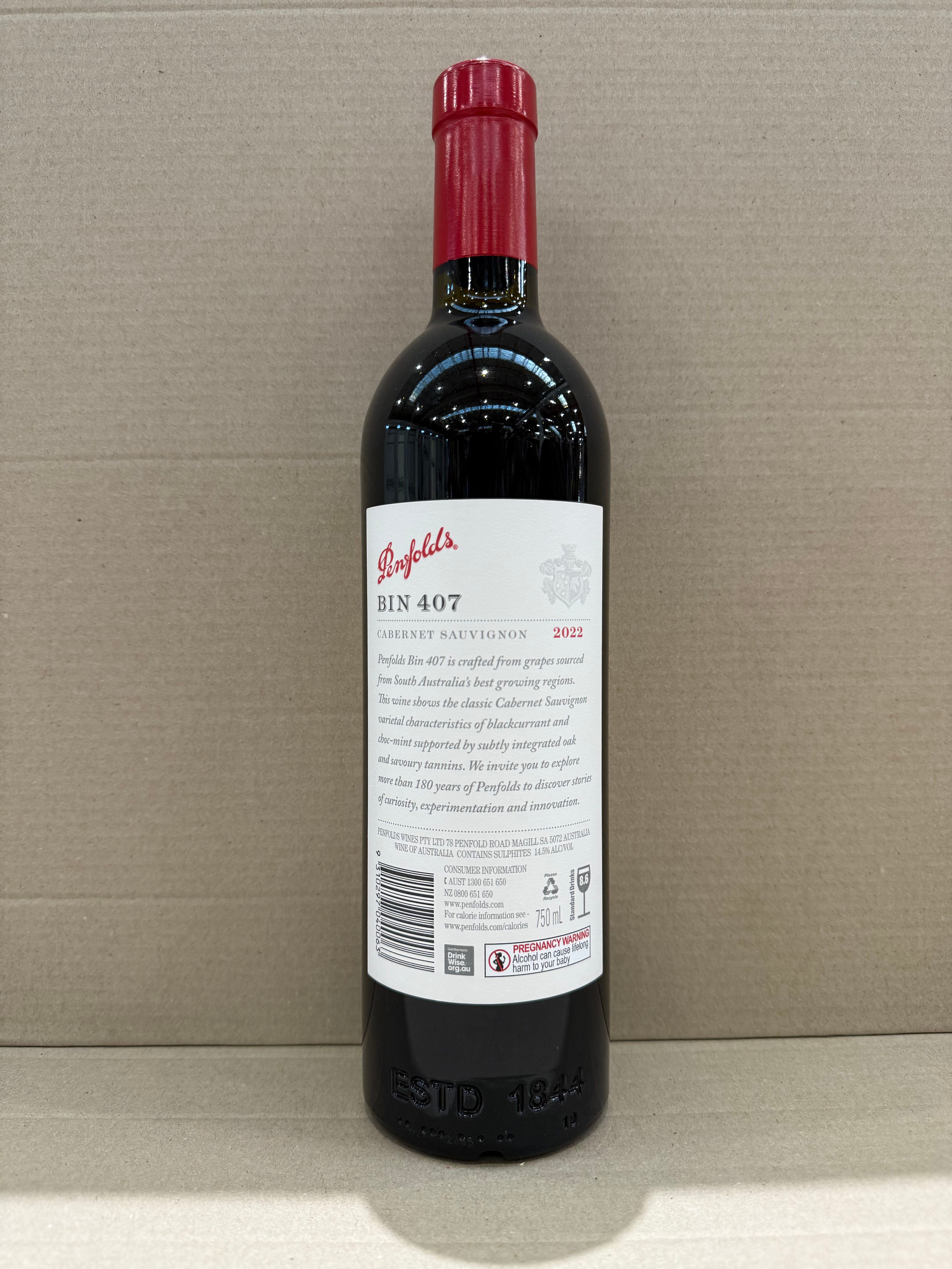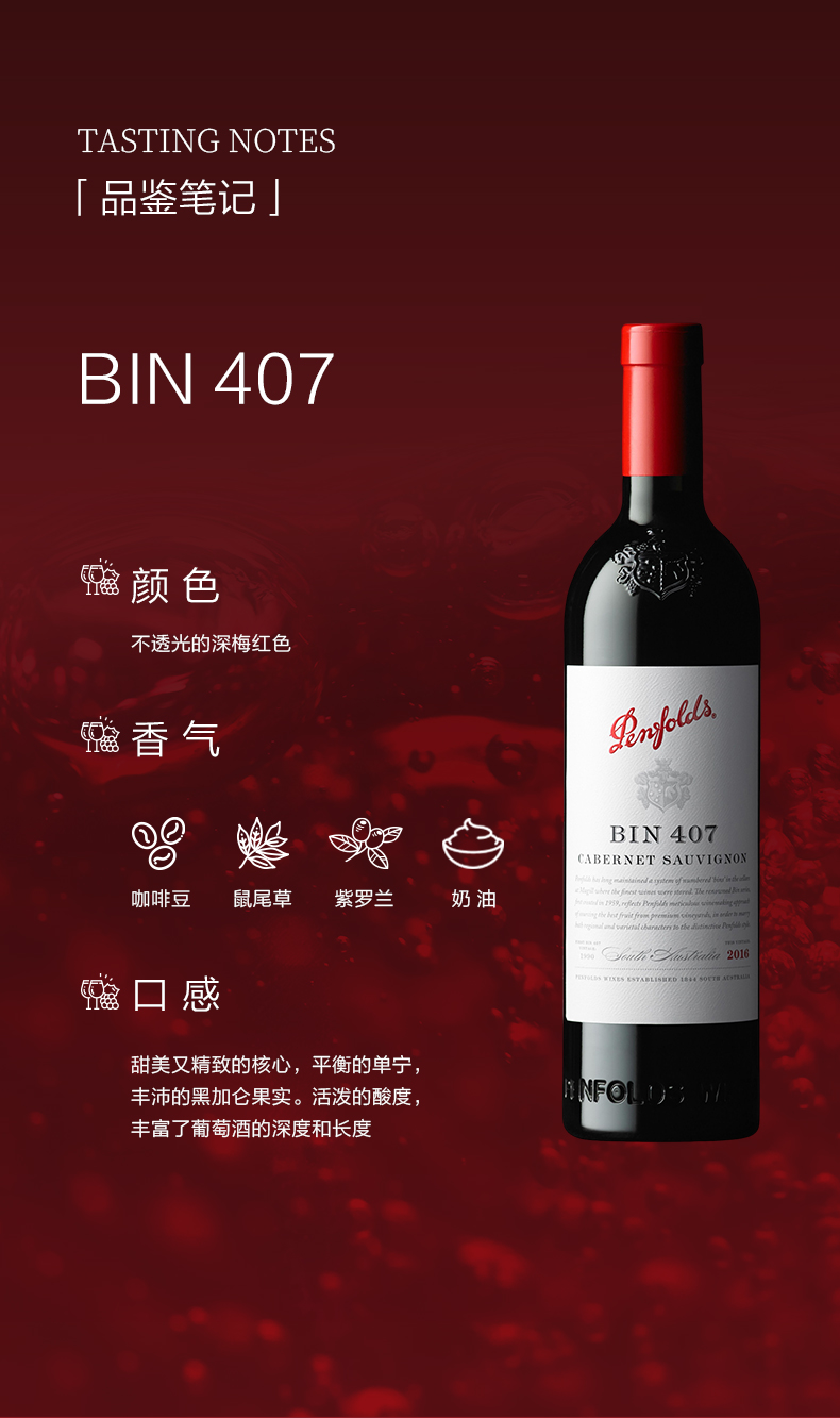 【礼盒装】奔富(Penfolds)Bin407赤霞珠干红葡萄酒750ml木塞 澳洲原产【保税进口】