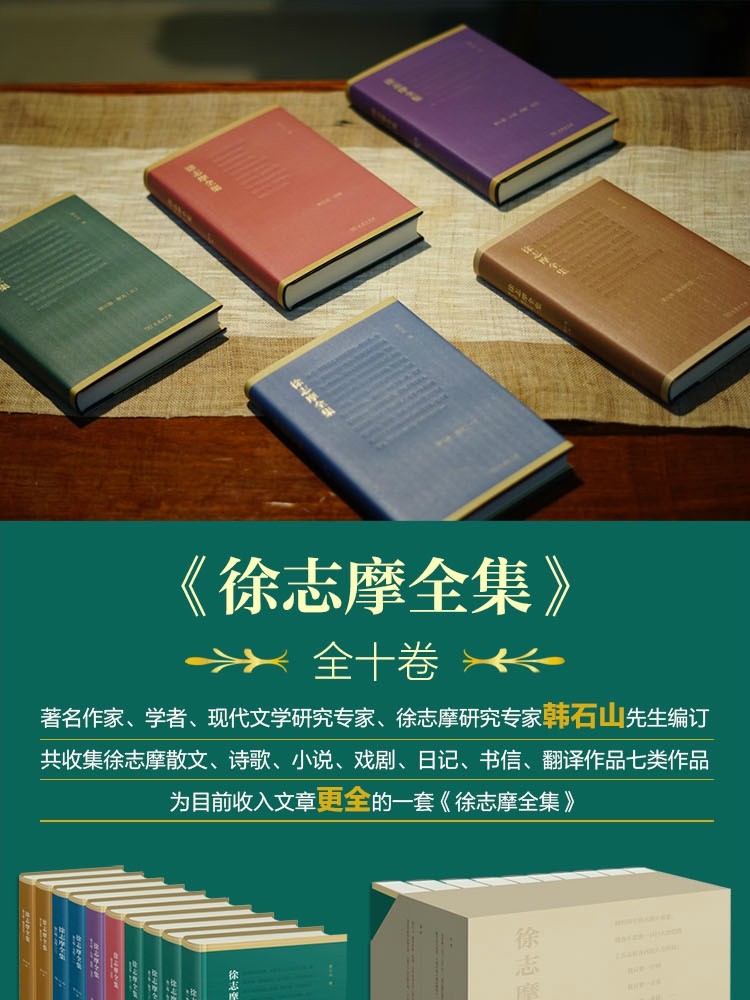 商务印书馆《徐志摩全集》(全十卷),由著名作家、学者、现代文学研究专家、徐志摩研究专家韩石山先生编订,共收集了徐志摩的散文、诗歌、小说、戏剧、日记、书信、翻译作品七类作品,为目前收入文章多的一套《徐志摩全集》。