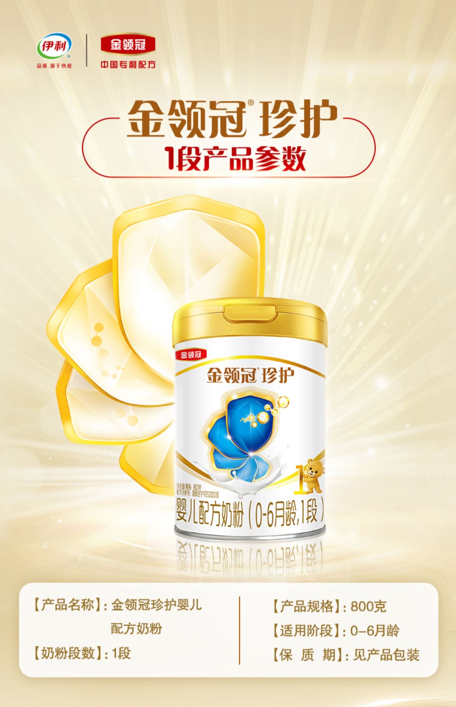 伊利金领冠珍护婴儿配方奶粉1段800g