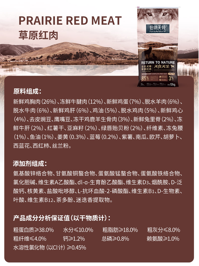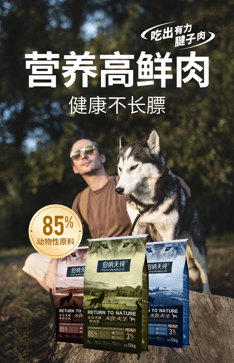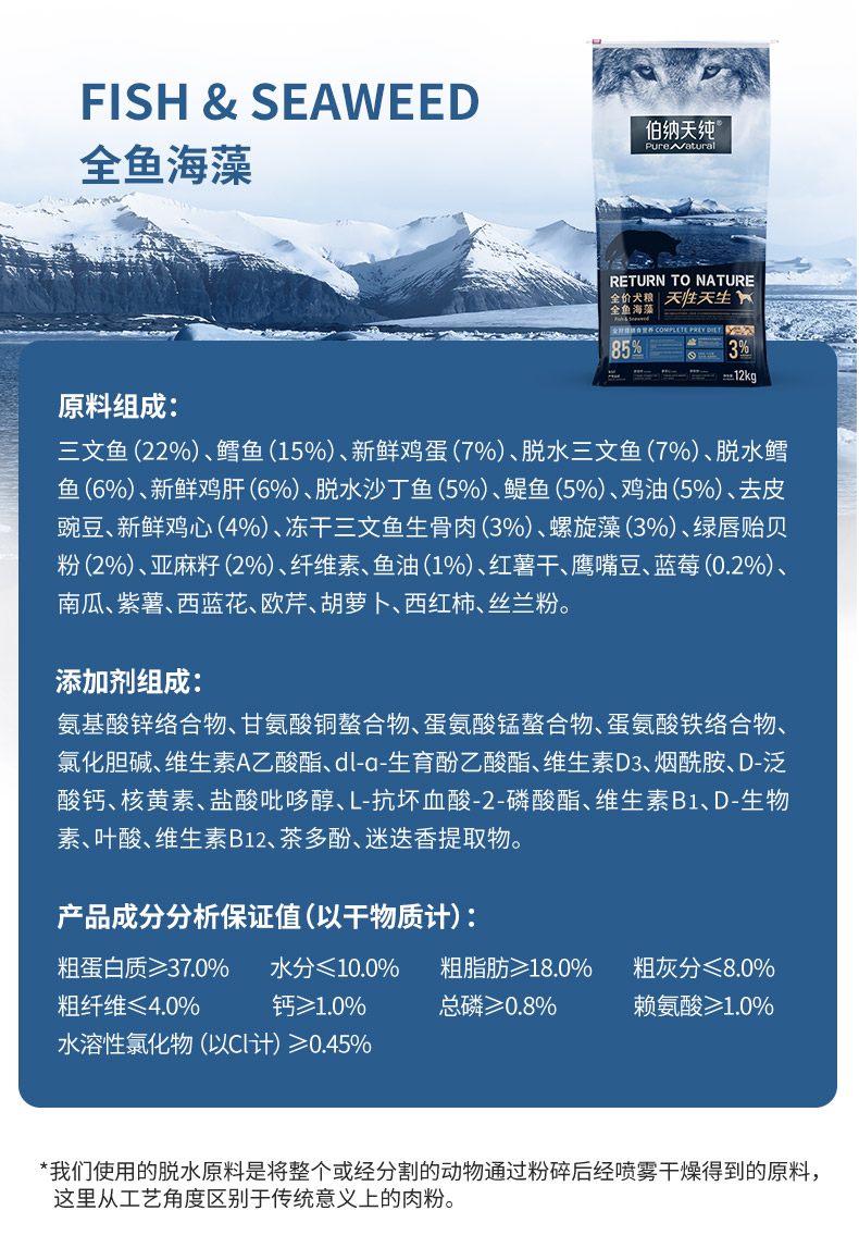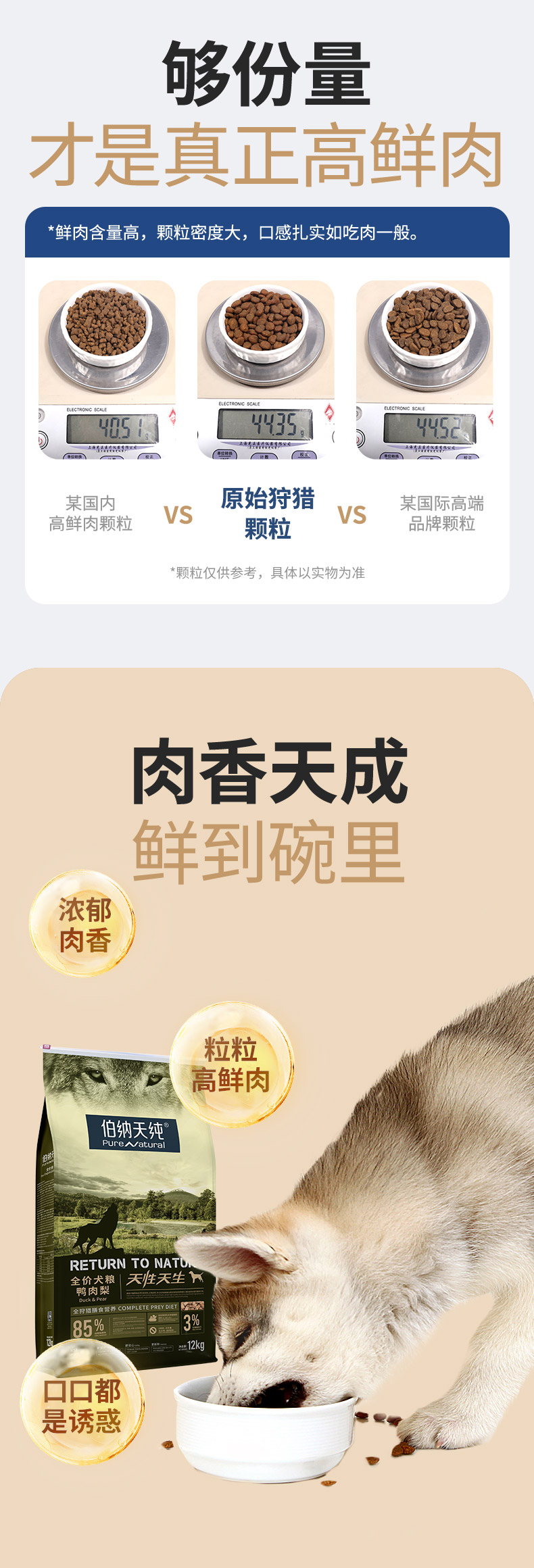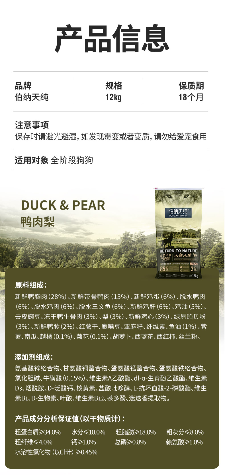 伯纳天纯原始狩猎鸭肉梨全鱼海藻草原红肉12kg比熊金毛泰迪狗粮