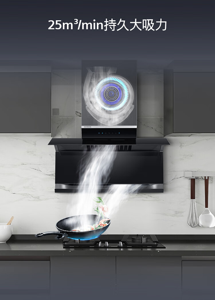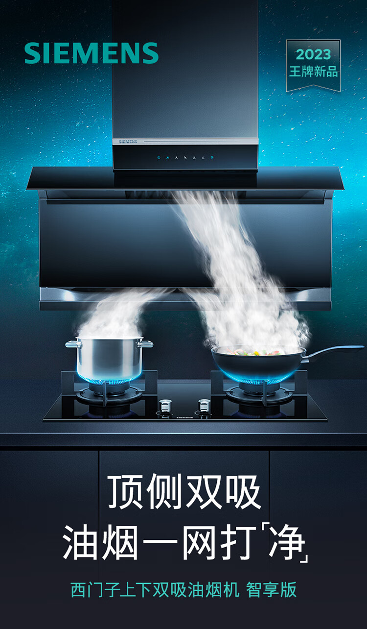 西门子(SIEMENS)2023新品X7 德系变频顶侧双吸抽油烟机 26大风量LS68FC9C2W+5.2kw大火力ER8PF233MP燃气灶烟灶套装