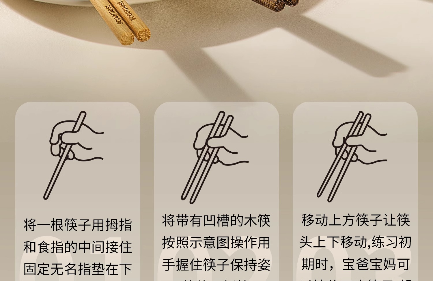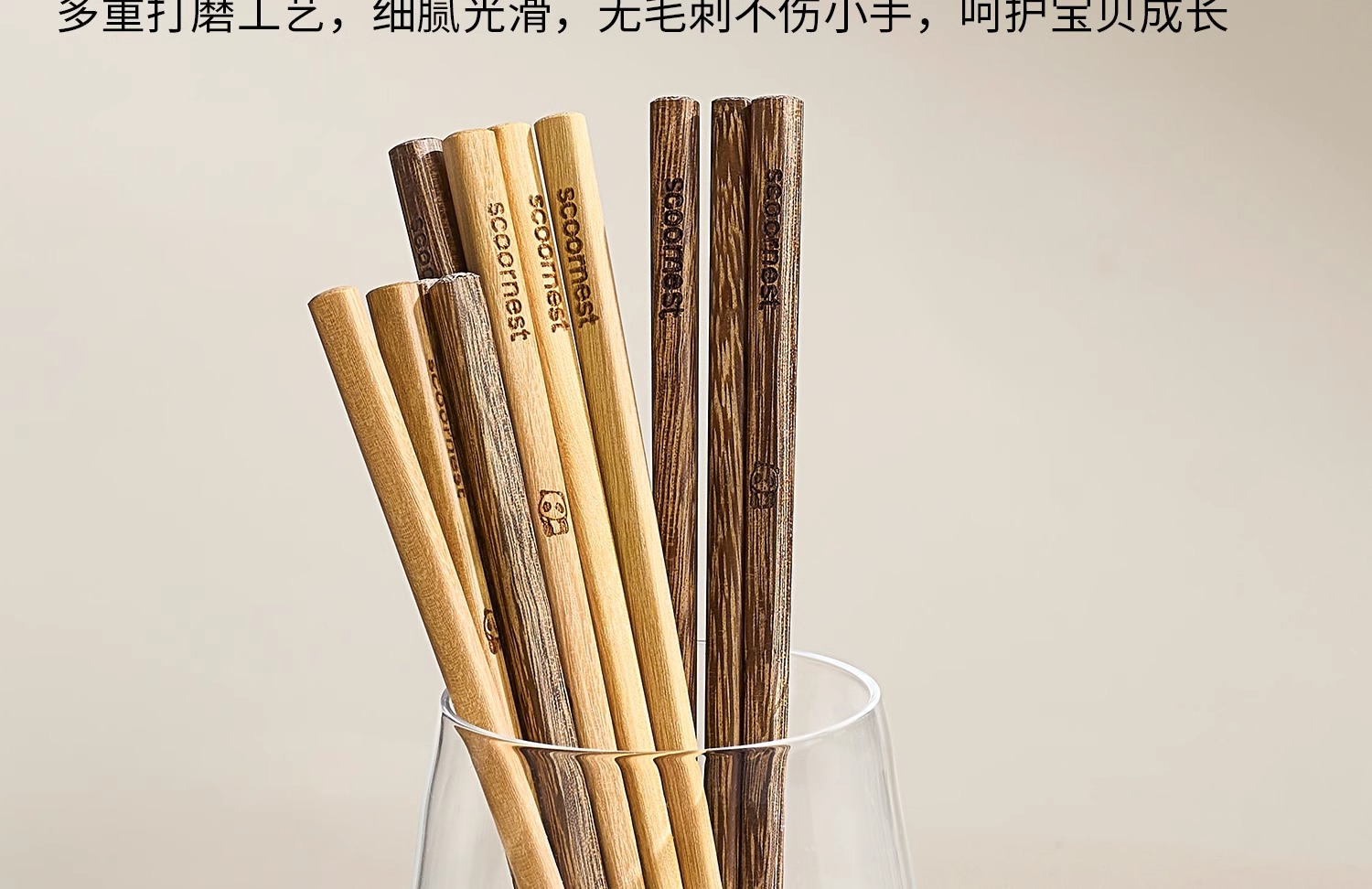 科巢儿童筷子家用高档鸡翅木实木3岁以上宝宝训练筷子小学生专人专用
