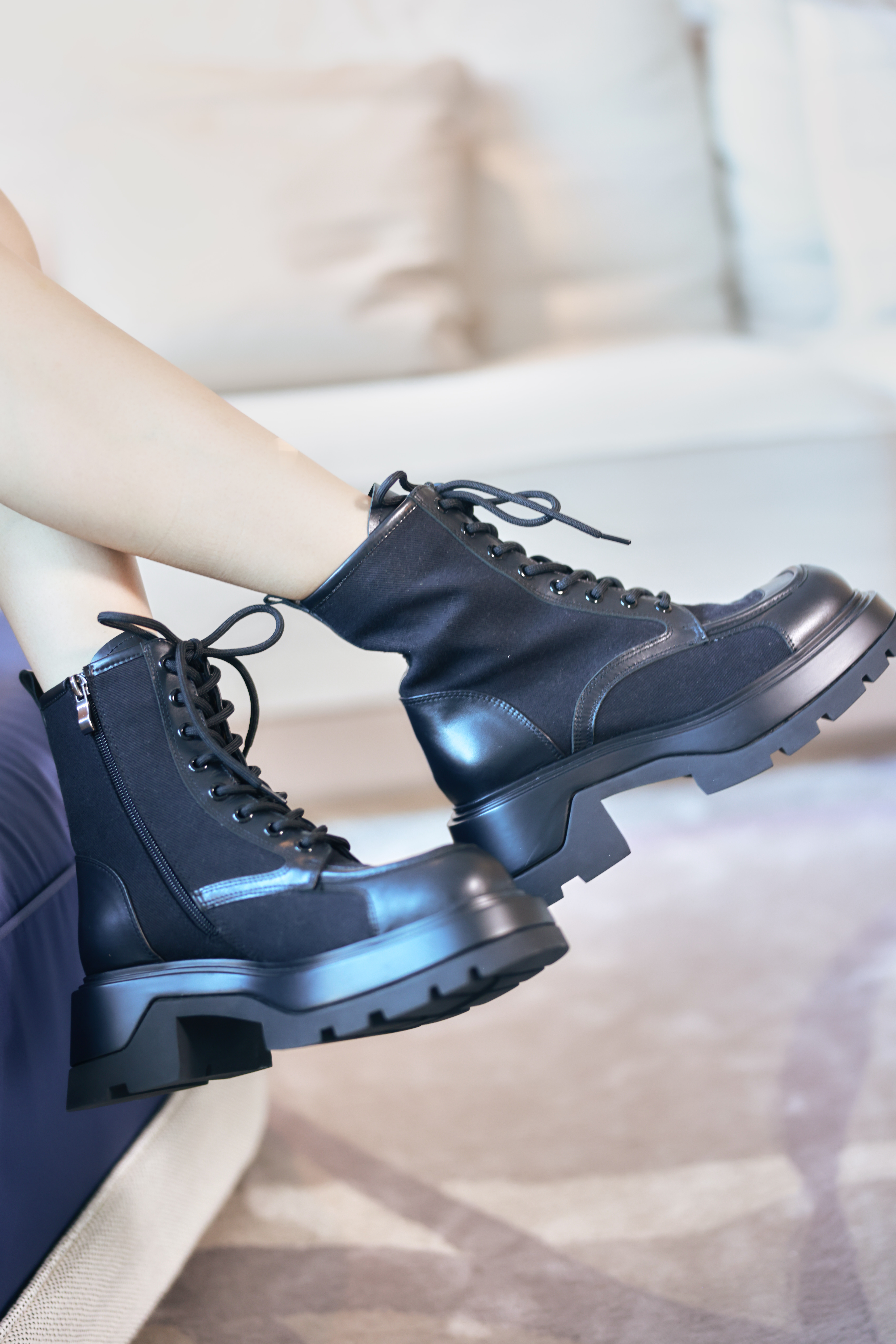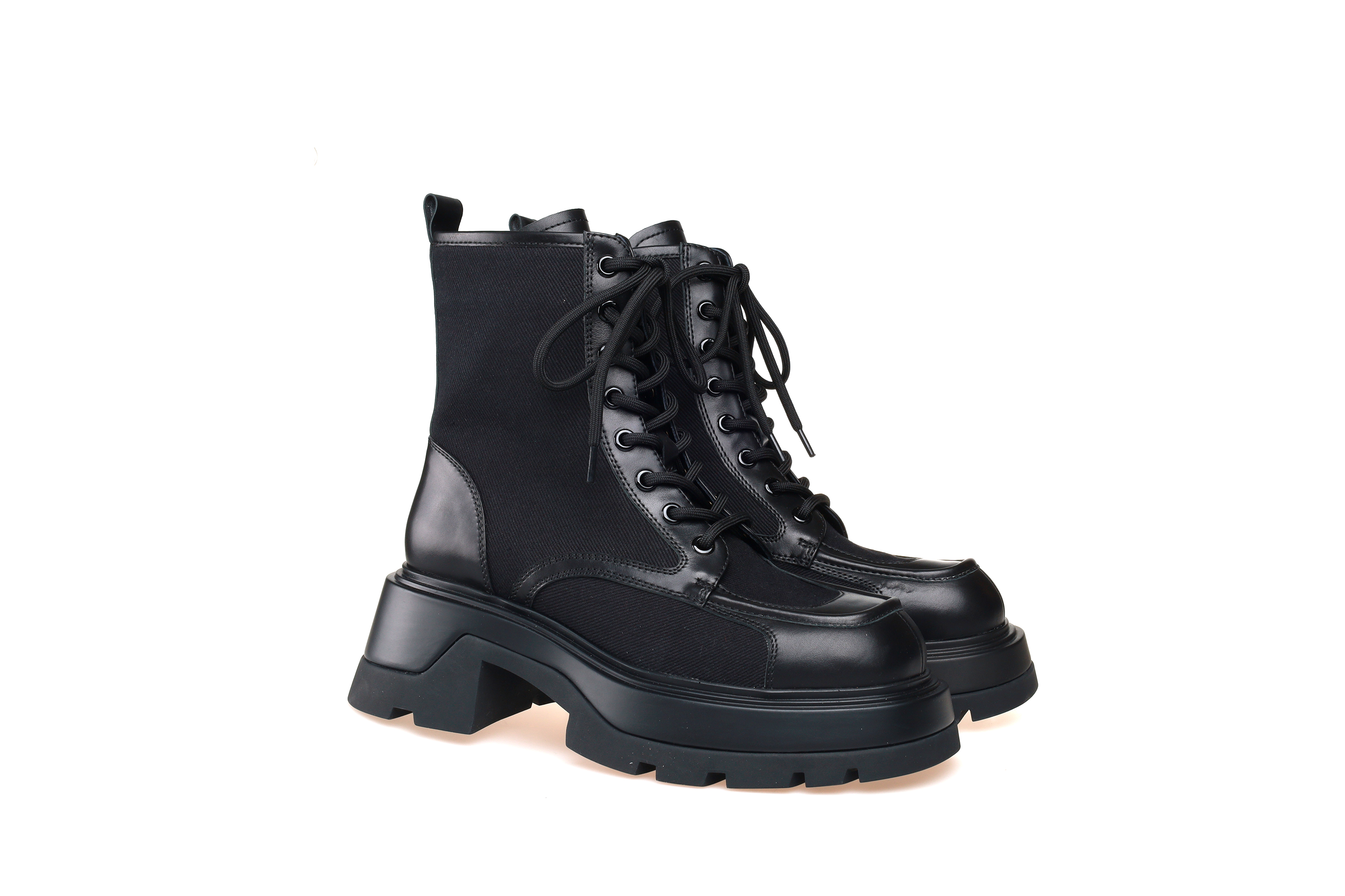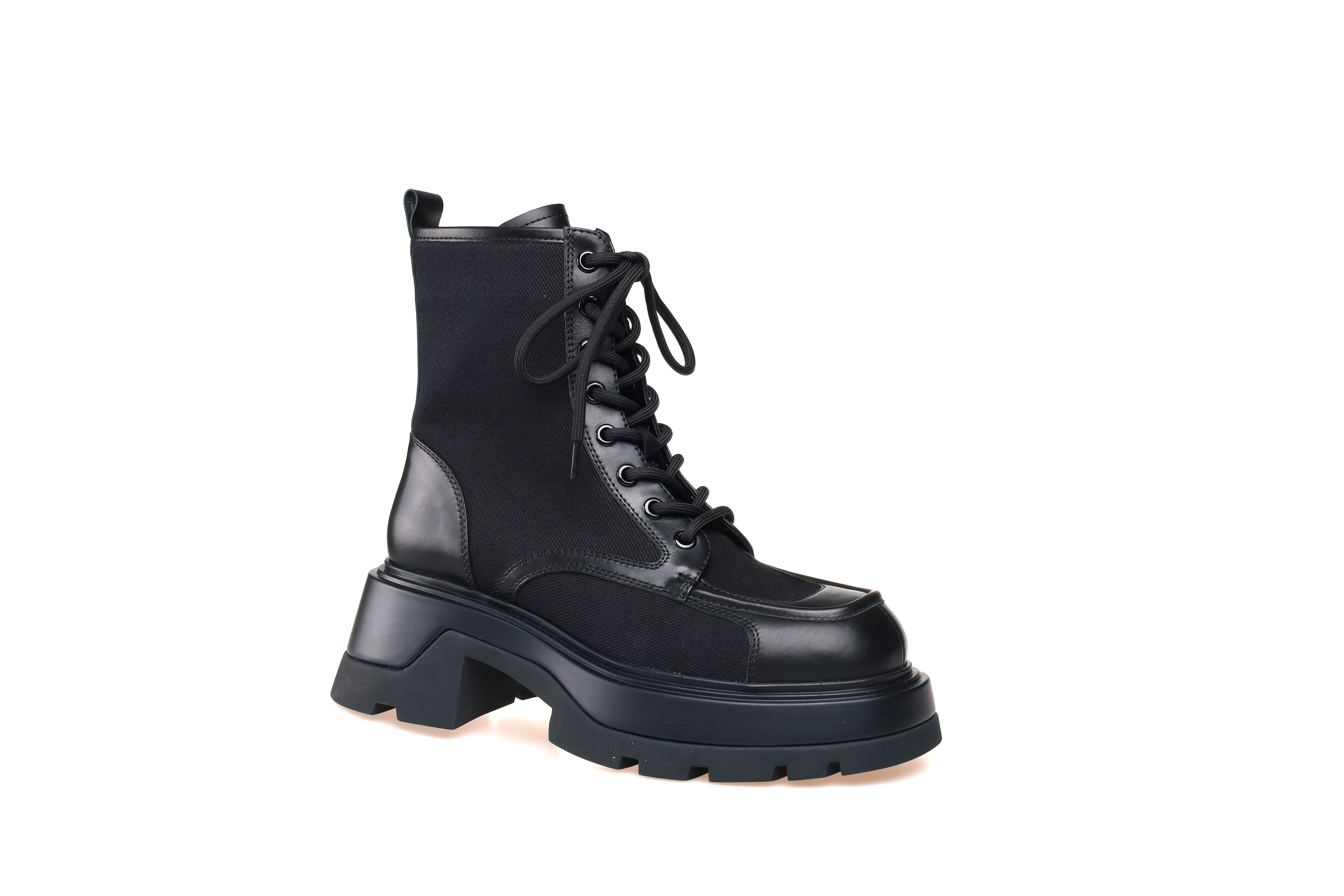 豪麟名鞋奥莱迪嘉女鞋马丁靴胎牛皮革+布料DJHJA32WN018黑色 原价2960元