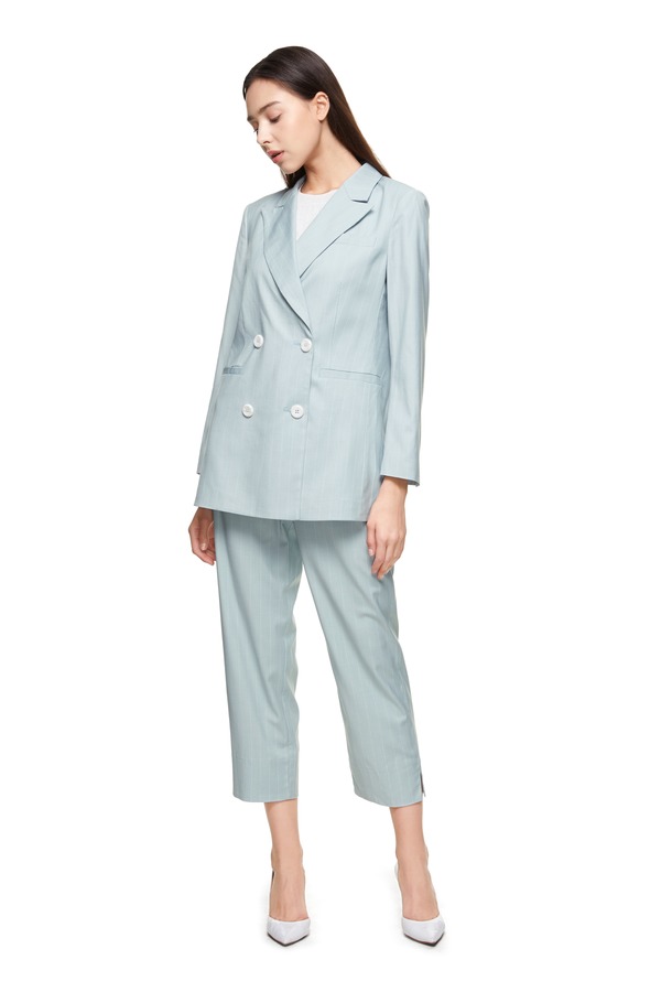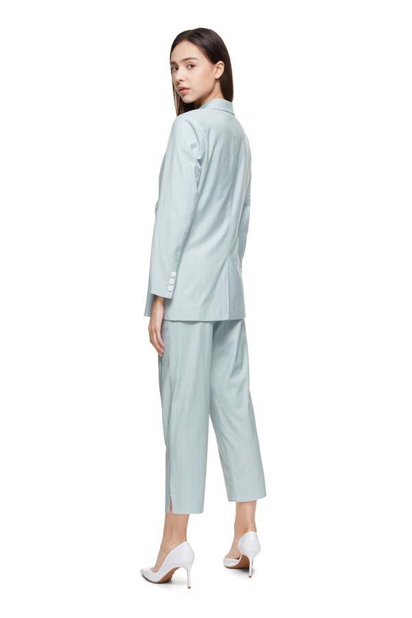 ESTELLICA 浅蓝条纹开衩西服套装 8872