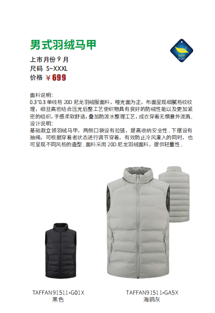 探路者男式羽绒马甲TAFFAN91511