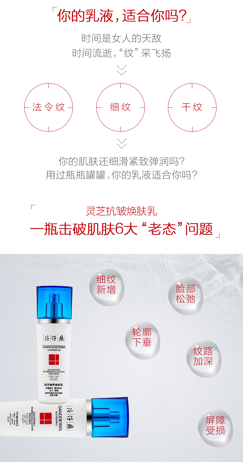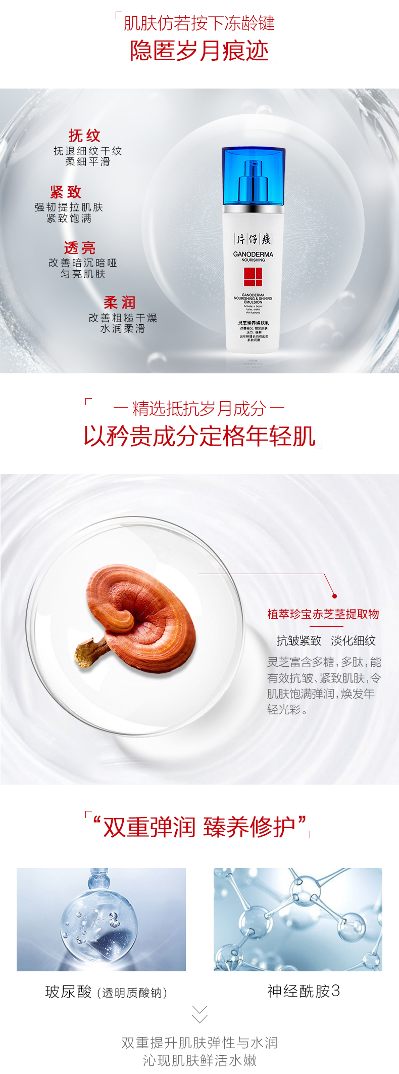 片仔癀牌灵芝臻养焕肤乳100ml滋润保湿改善细纹紧致抗皱补水正品