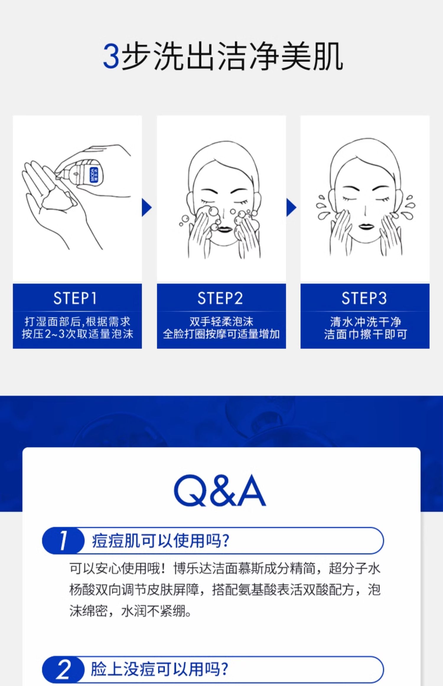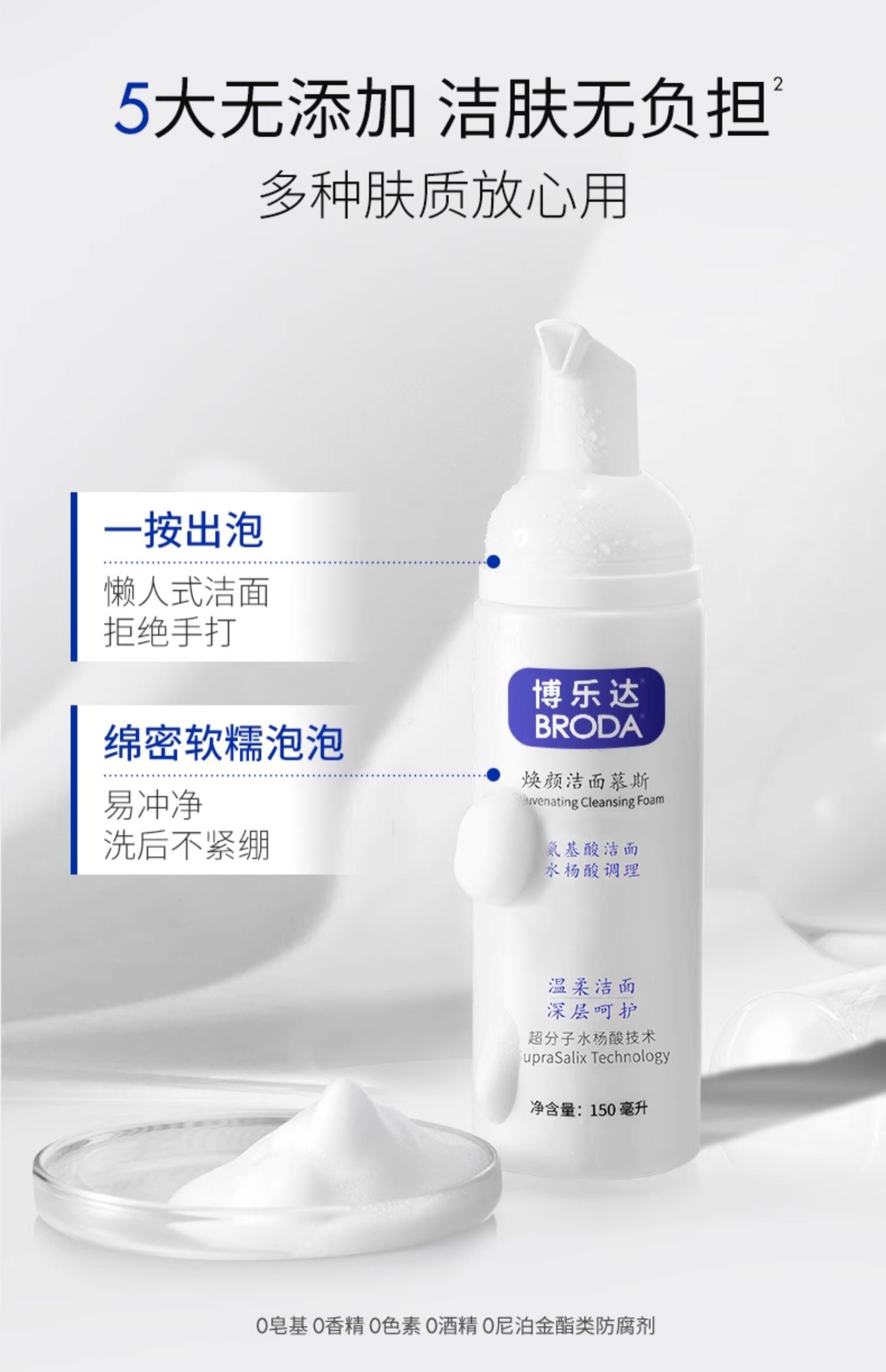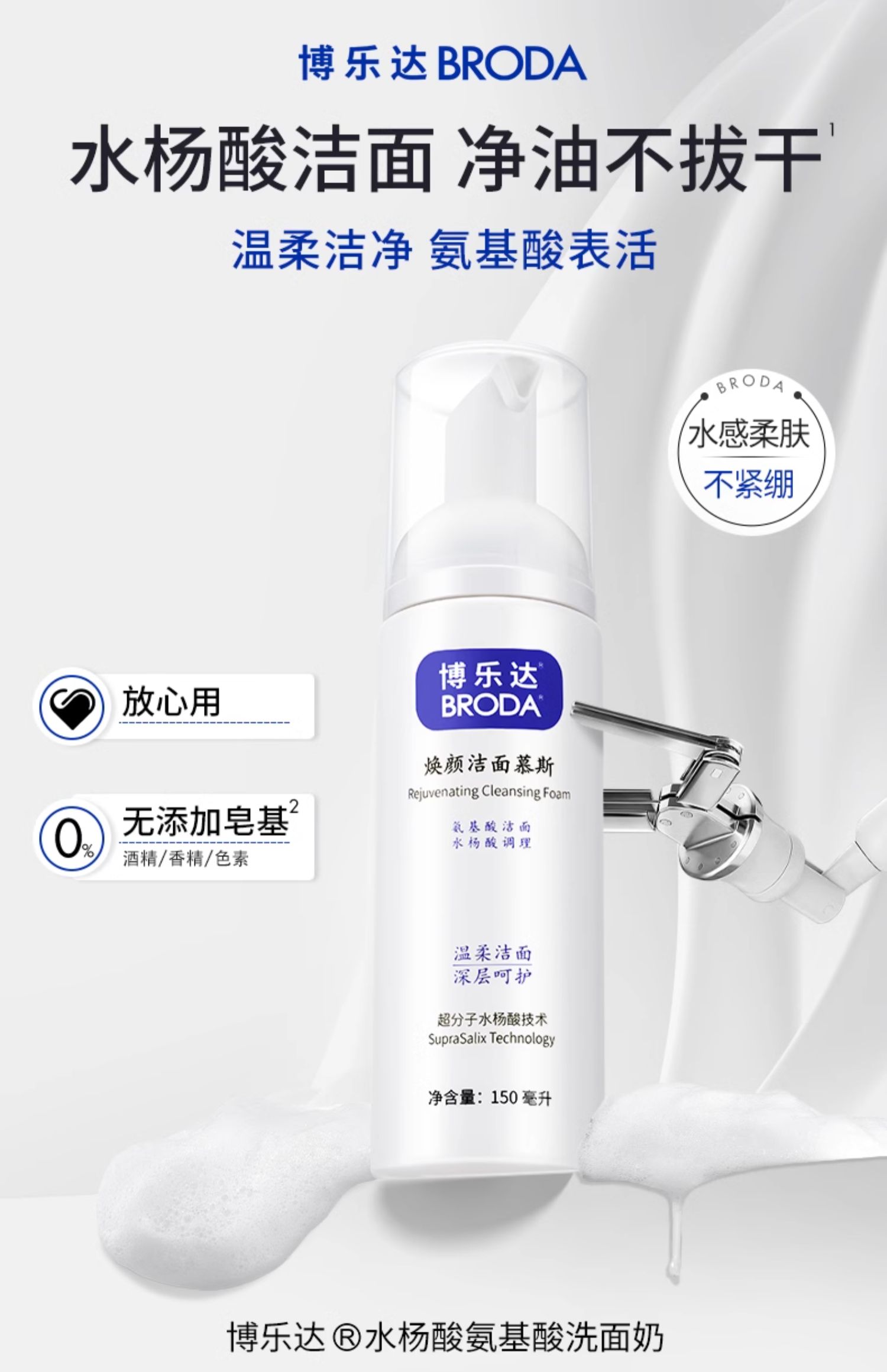 博乐达洁面慕斯150ml 超分子水杨酸技术