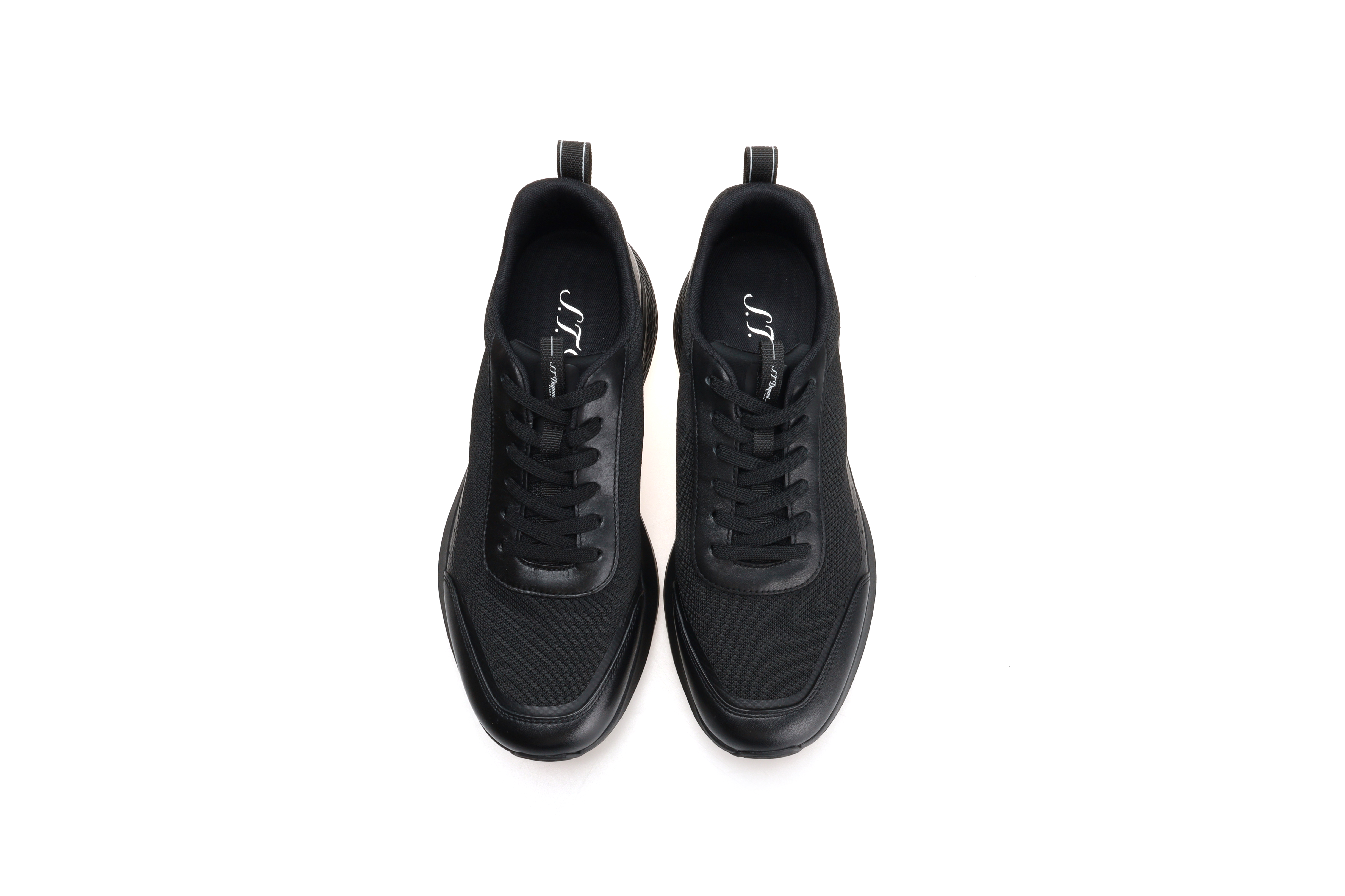 豪麟名鞋都彭男鞋休闲鞋织物+牛皮革E34145102黑色